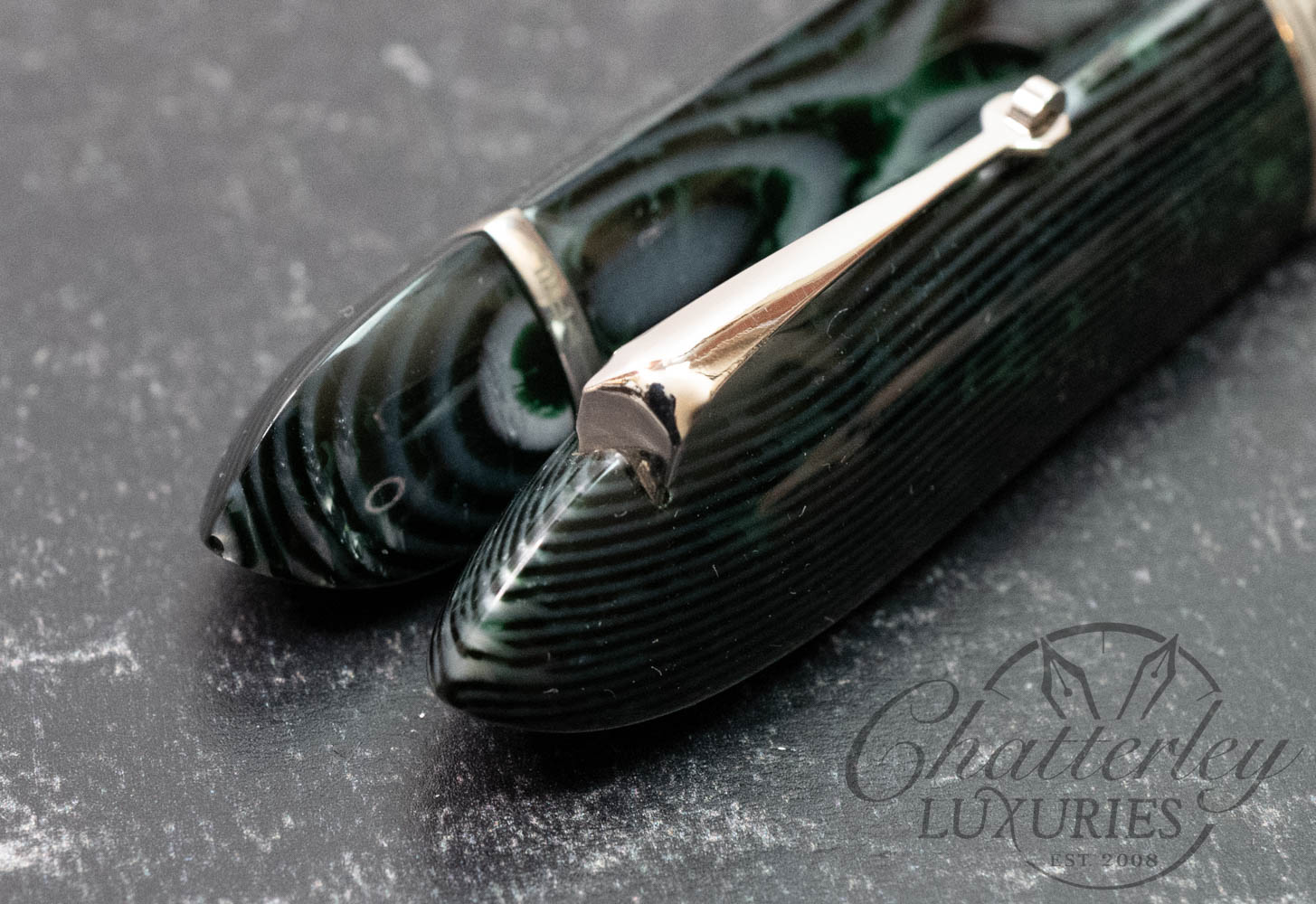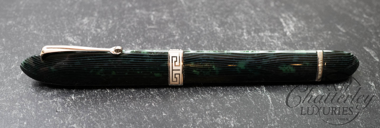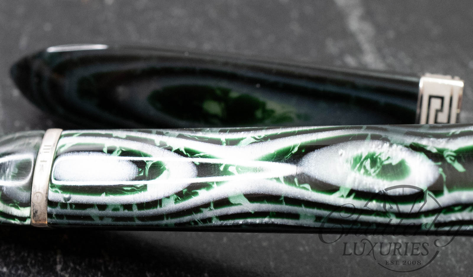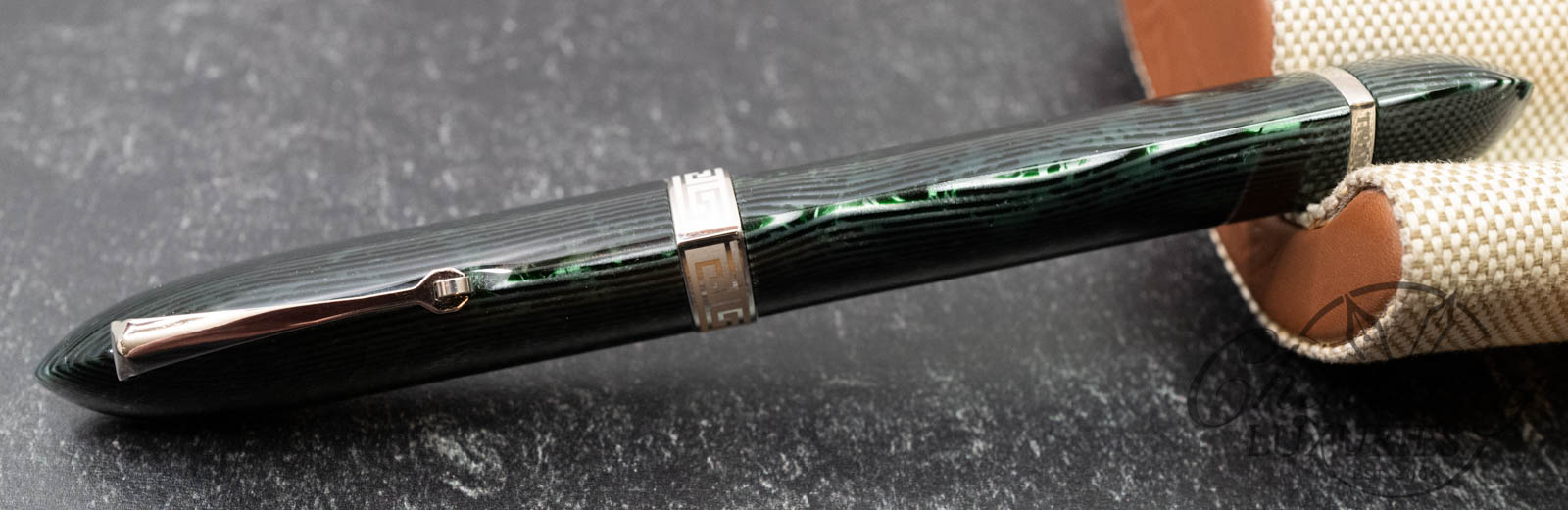 • Original OMAS celluloid Arco Green material.