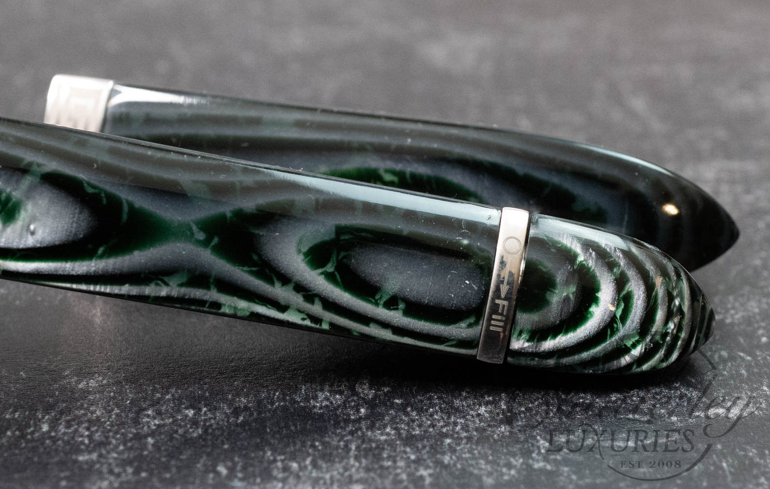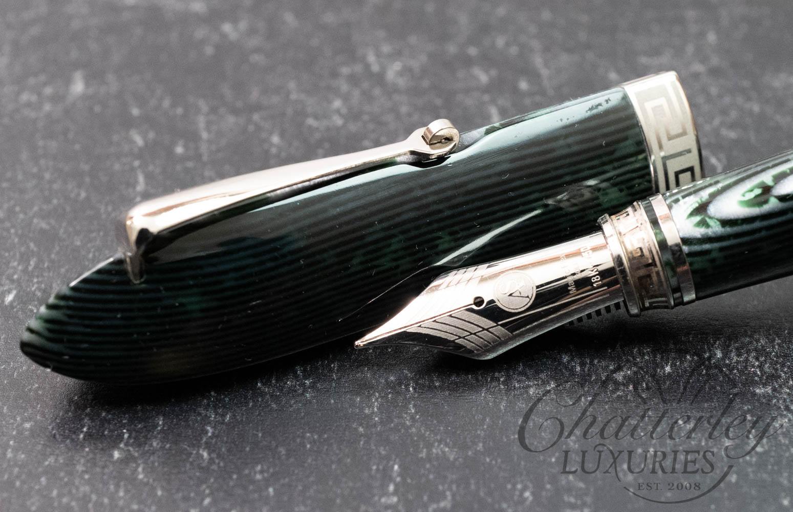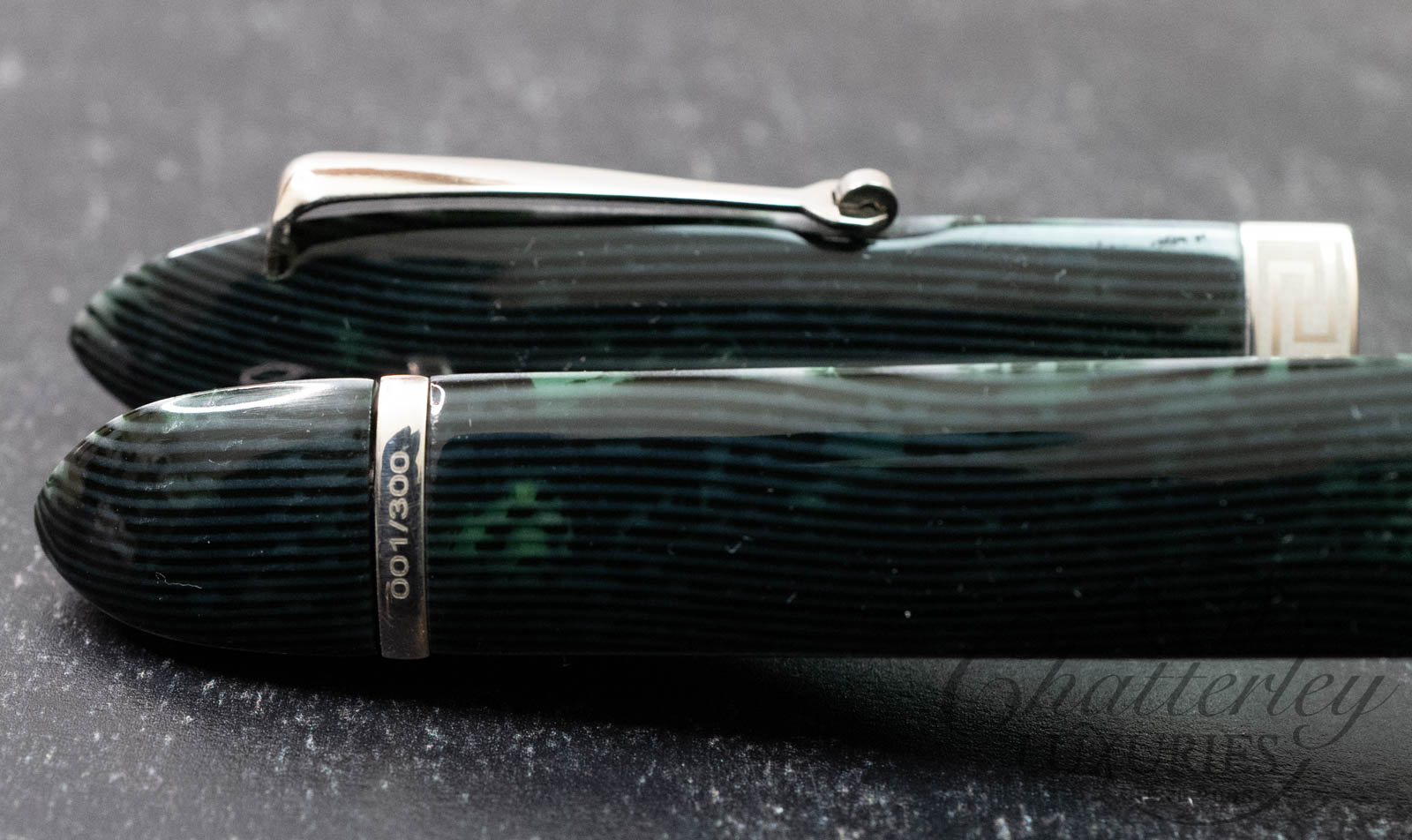 • Original OMAS celluloid Arco Green material.