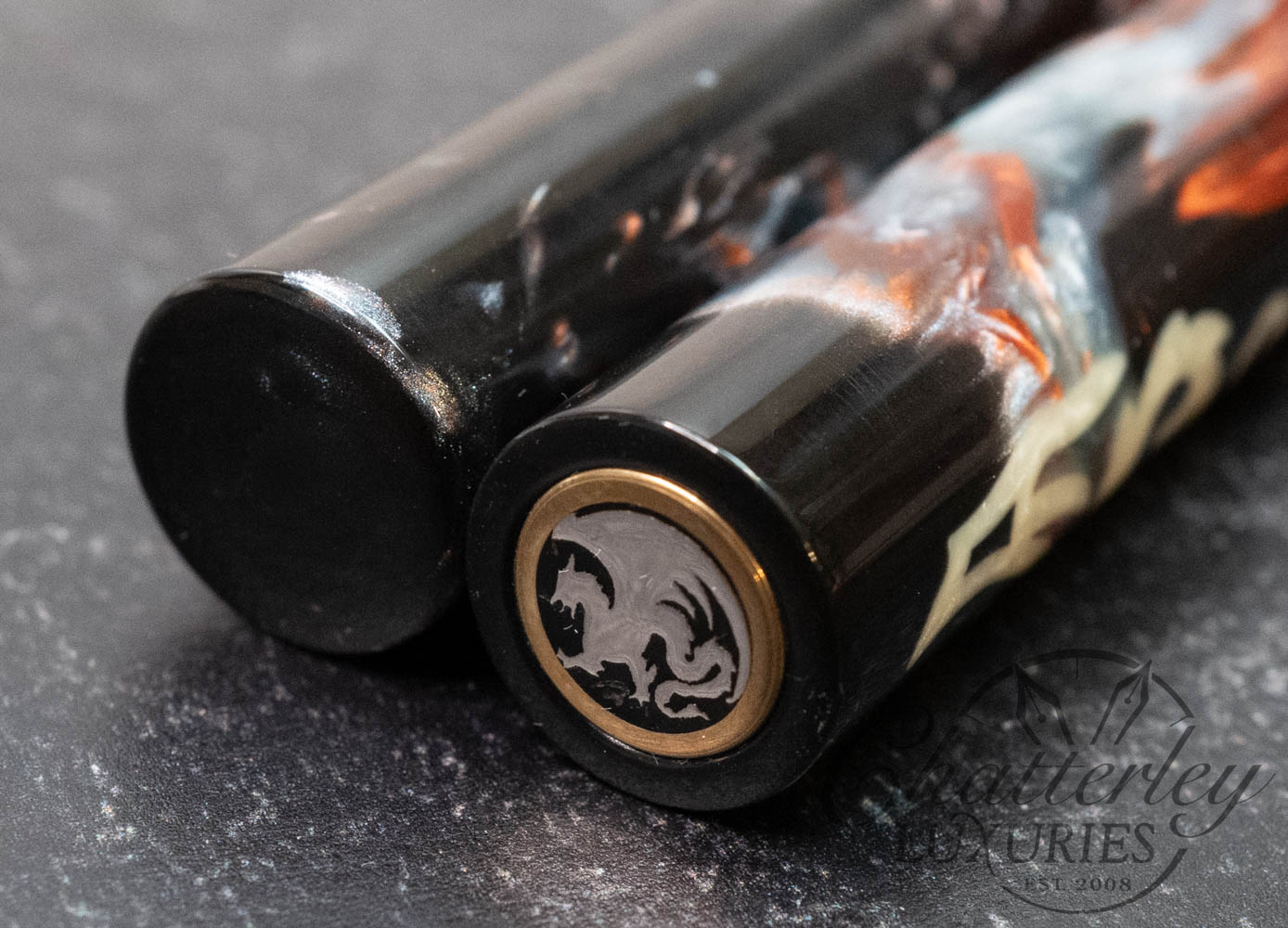 Atelier Lusso Andromeda Dragon Black & Grey/Orange Resin Fountain Pen