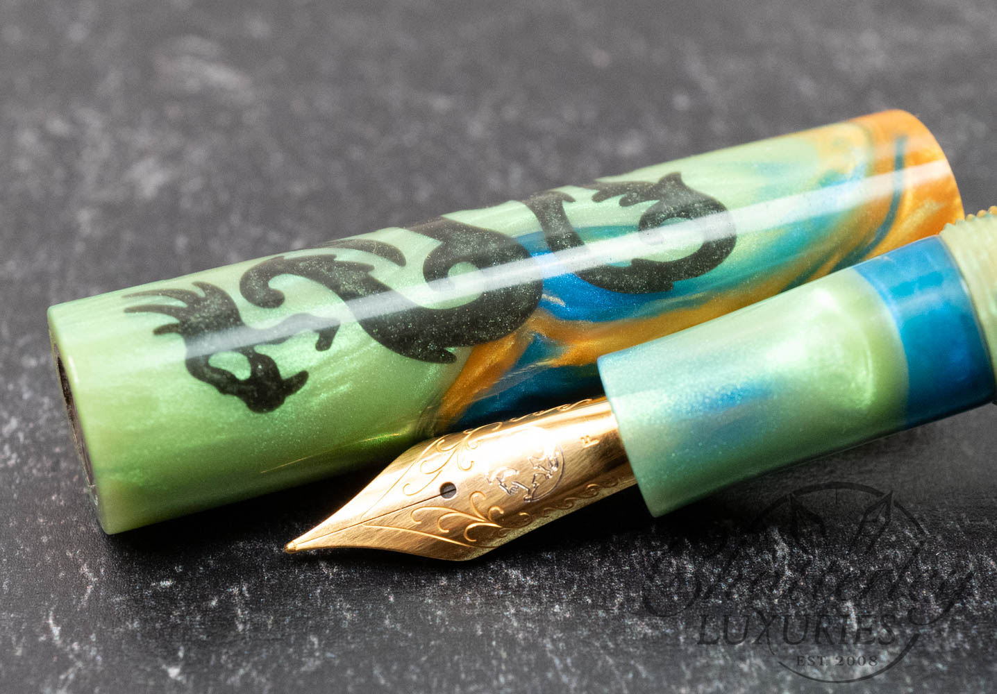 Atelier Lusso Andromeda Dragon Green & Orange Resin Fountain PenAtelier Lusso Andromeda Dragon Green & Orange Resin Fountain Pen