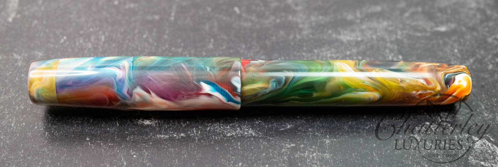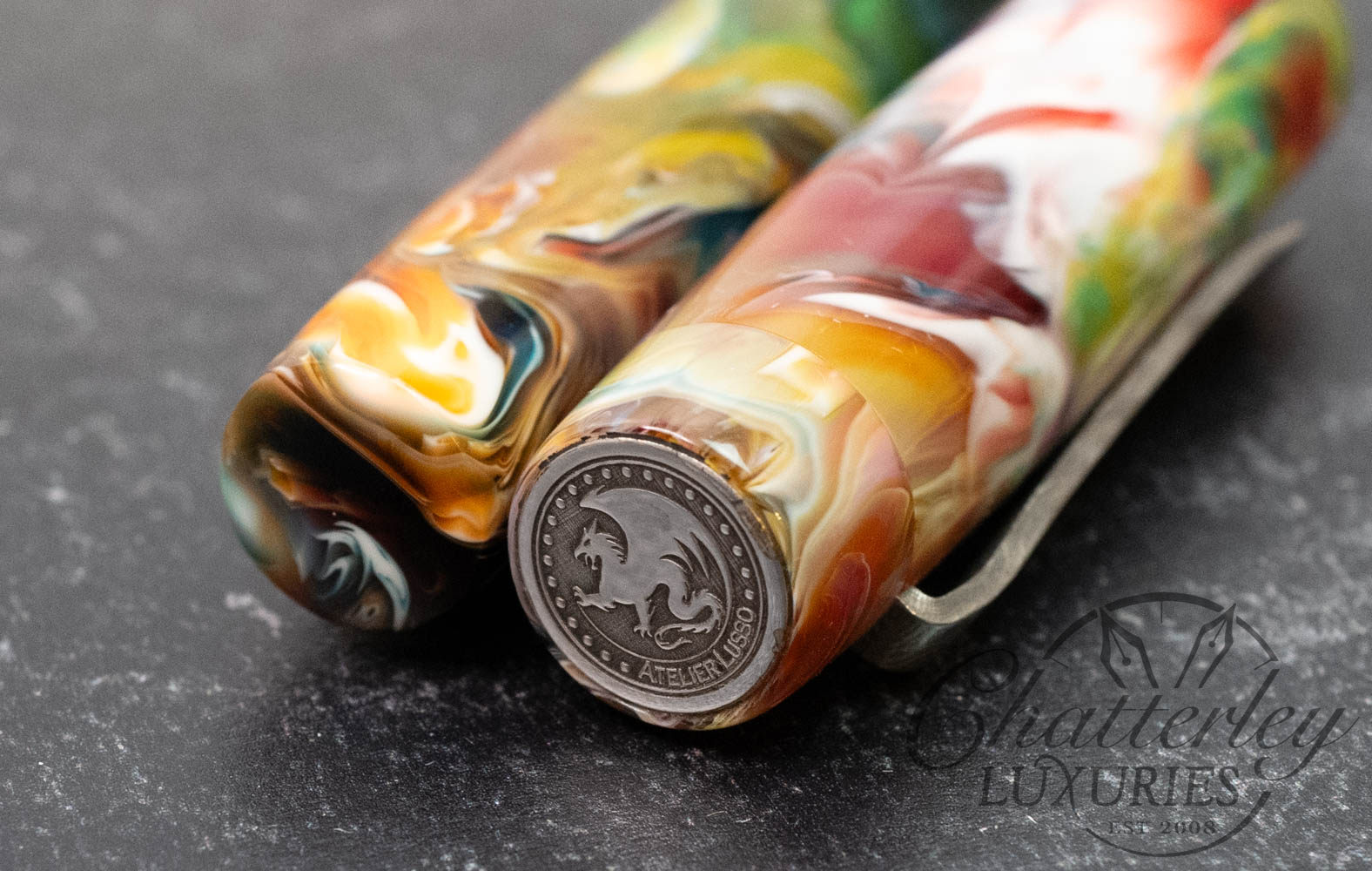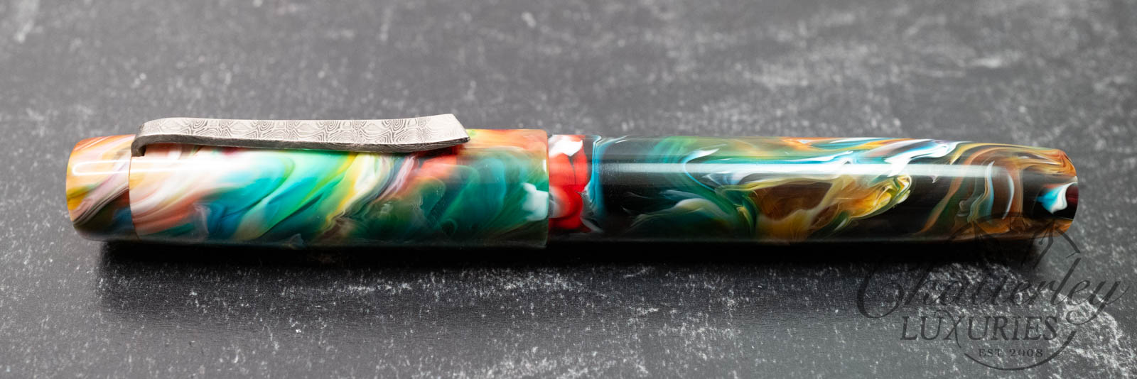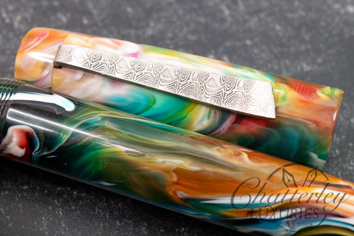 Atelier Lusso Brooks Draco Primary Manipulation Stromboli Resin Fountain Pen with #8 Titanium Nib & Damascus Steel Clip