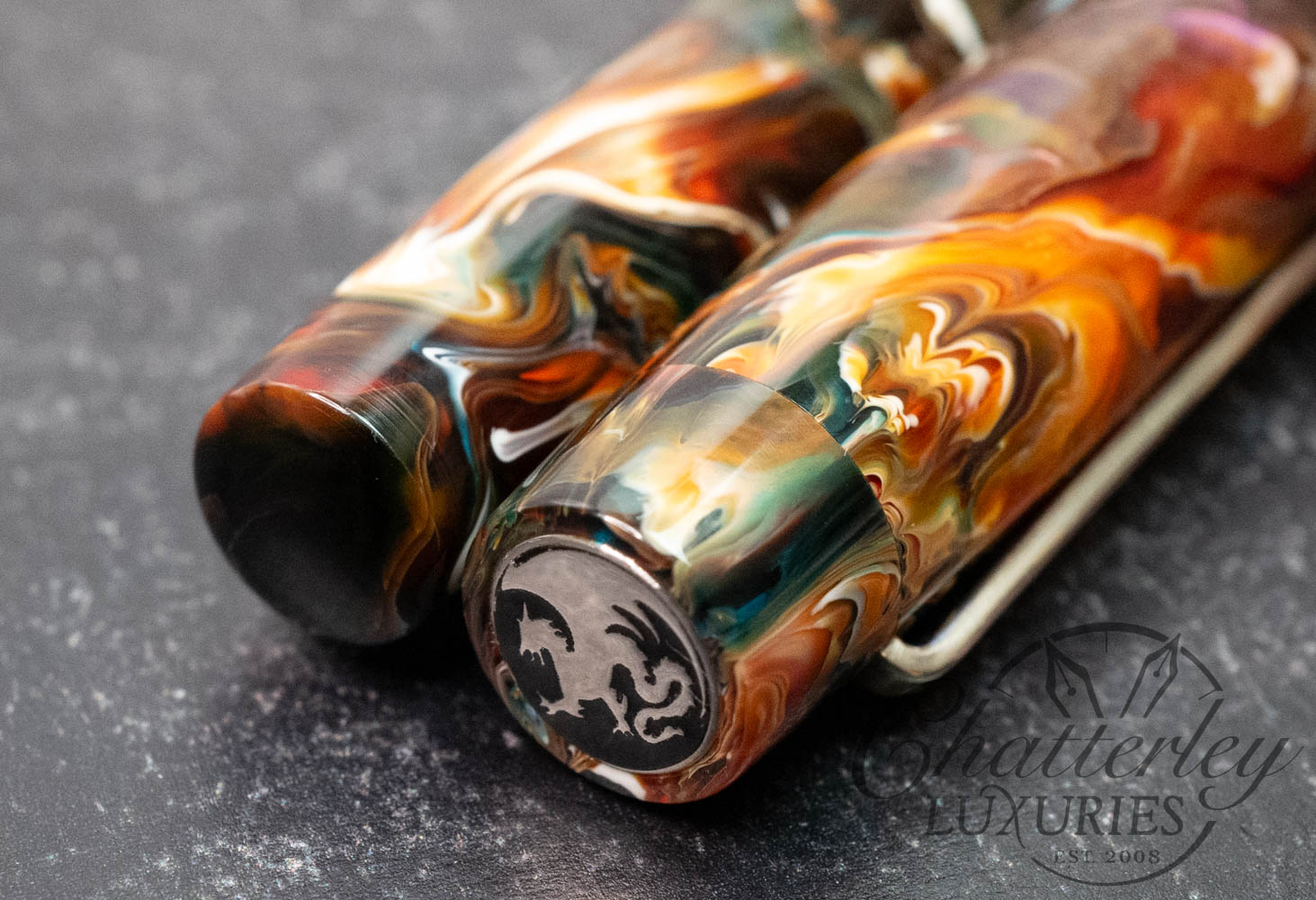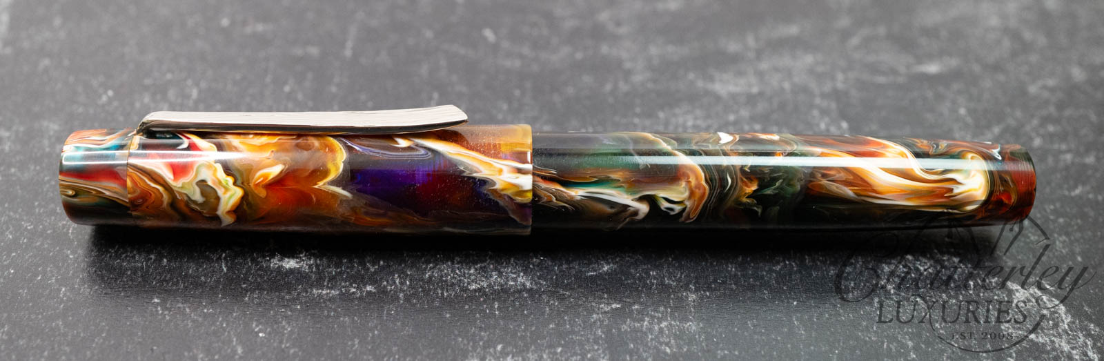 Atelier Lusso Brooks Hydra Primary Manipulation Vesuvio Resin Fountain Pen with Hammered “Shredded” ClipAvailability: Only 1 left in stock