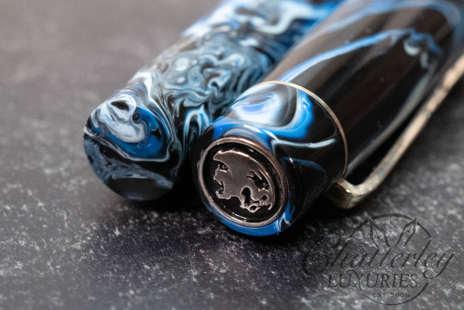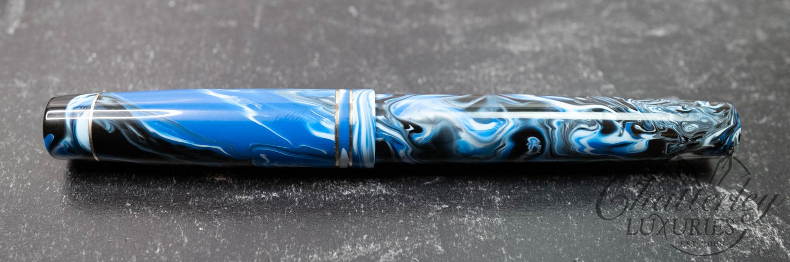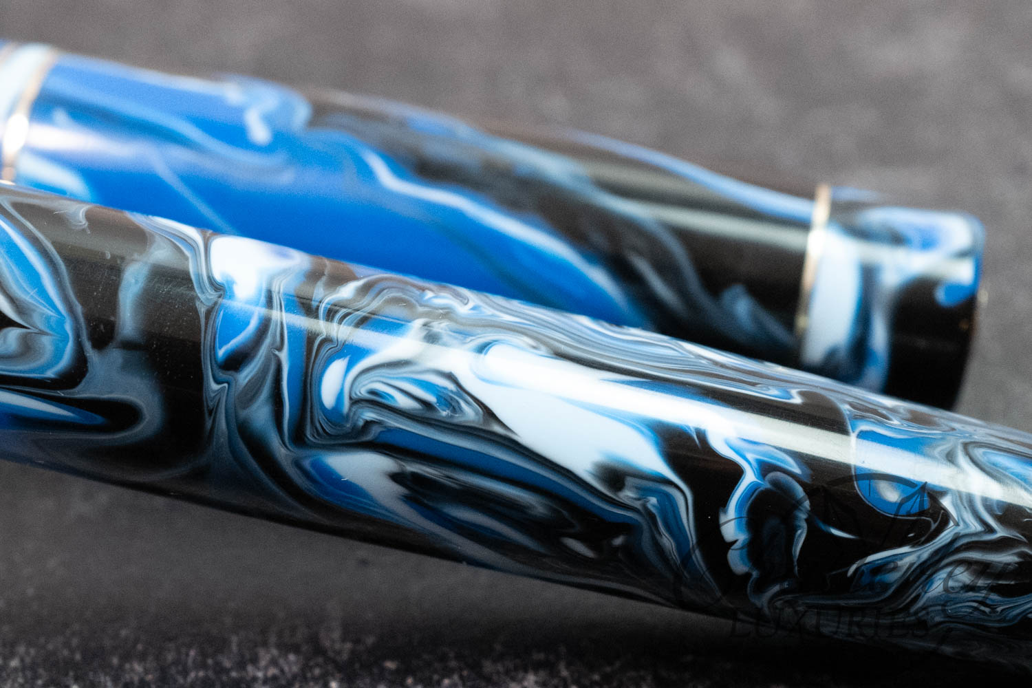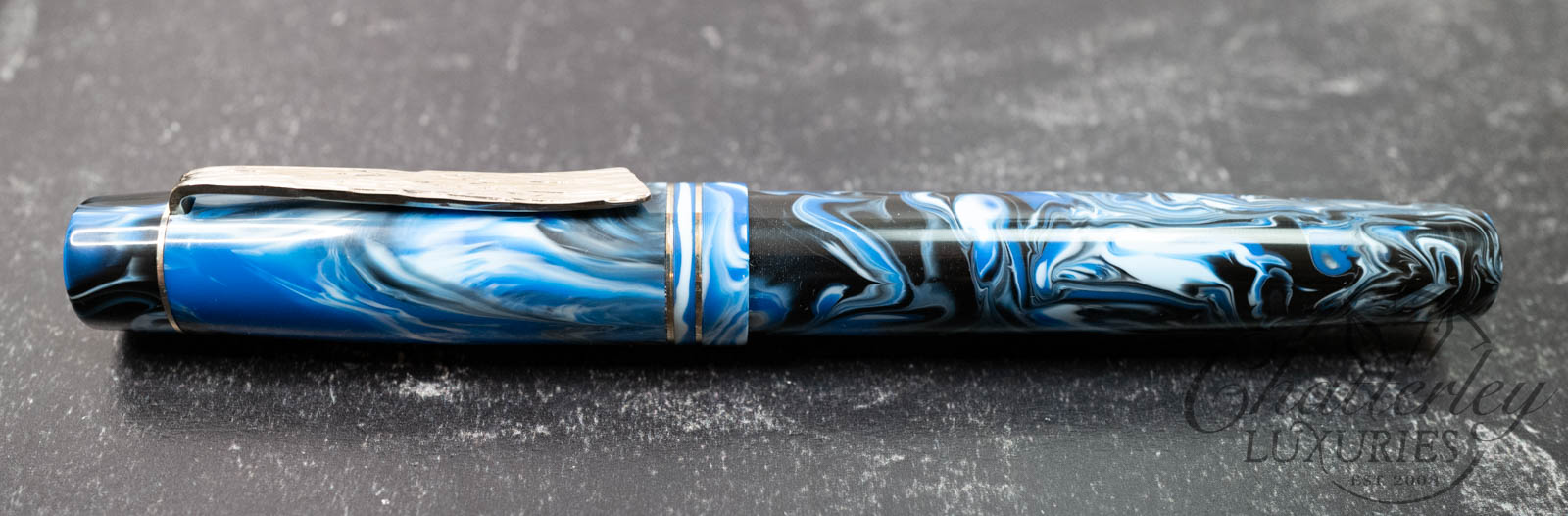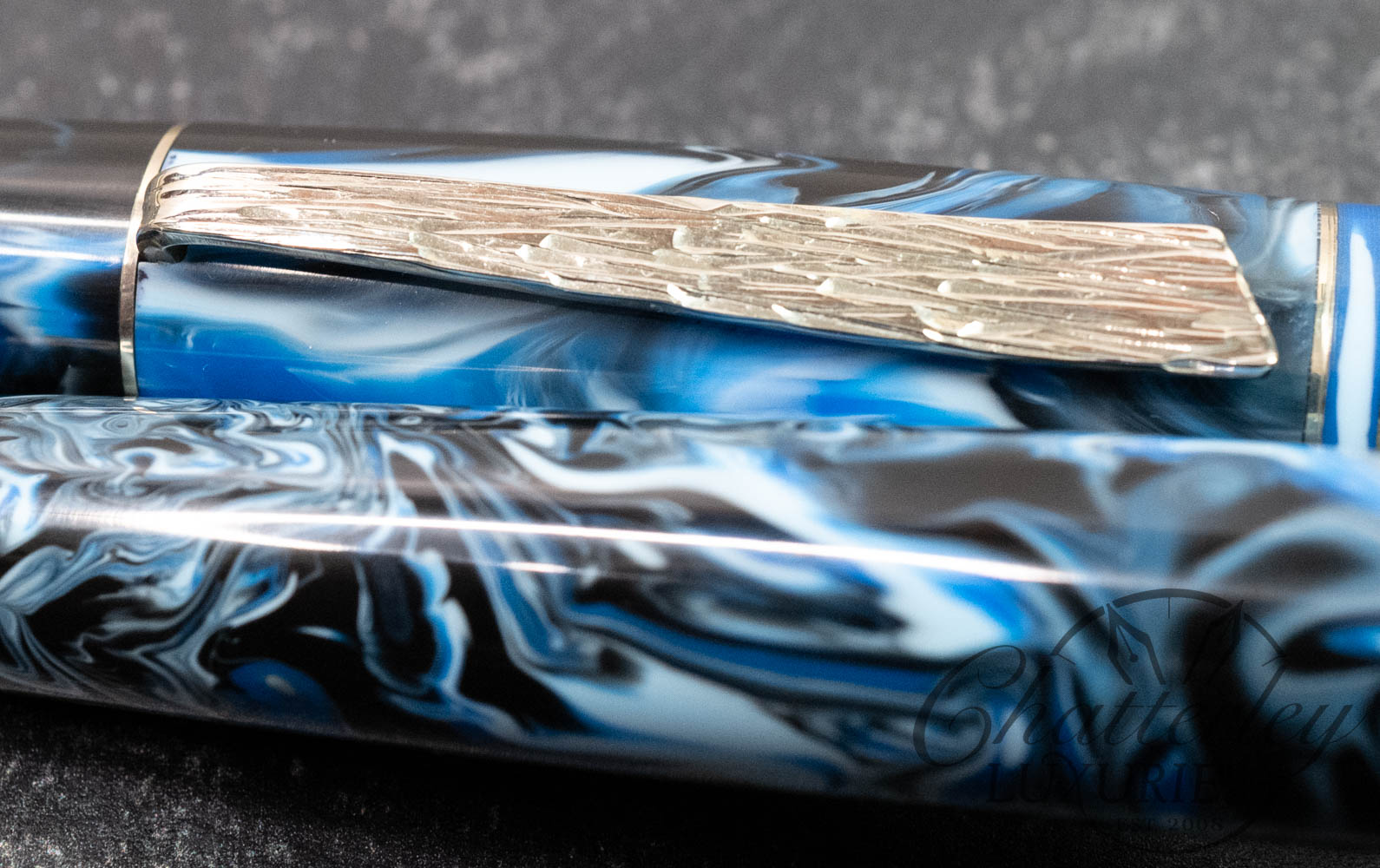 Atelier Lusso Carina 15 Blue & White Resin Fountain Pen with Hammered “Shredded” Clip