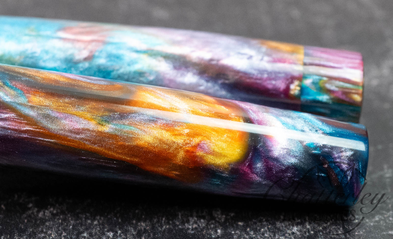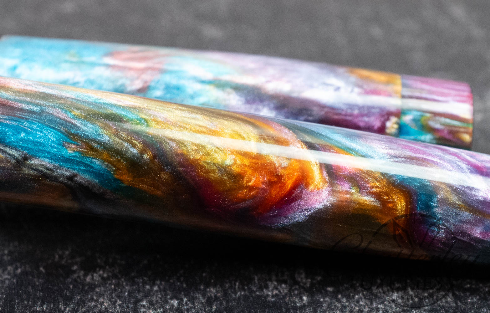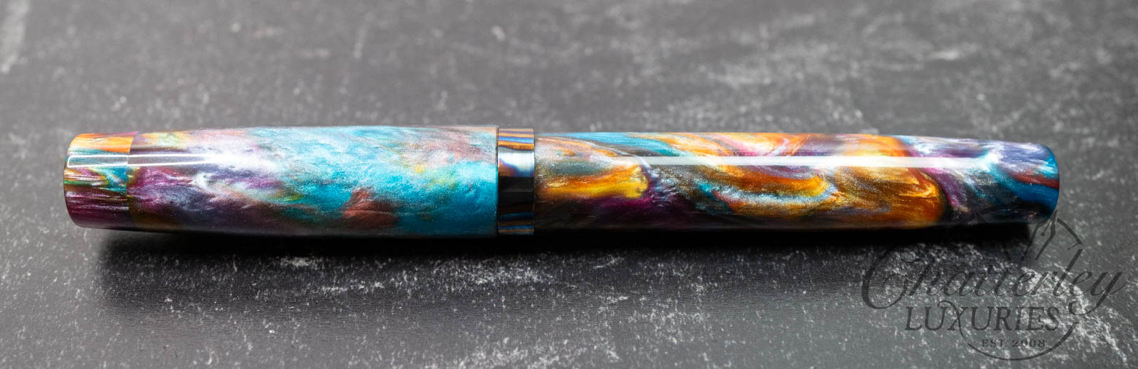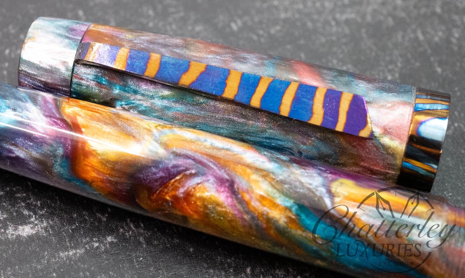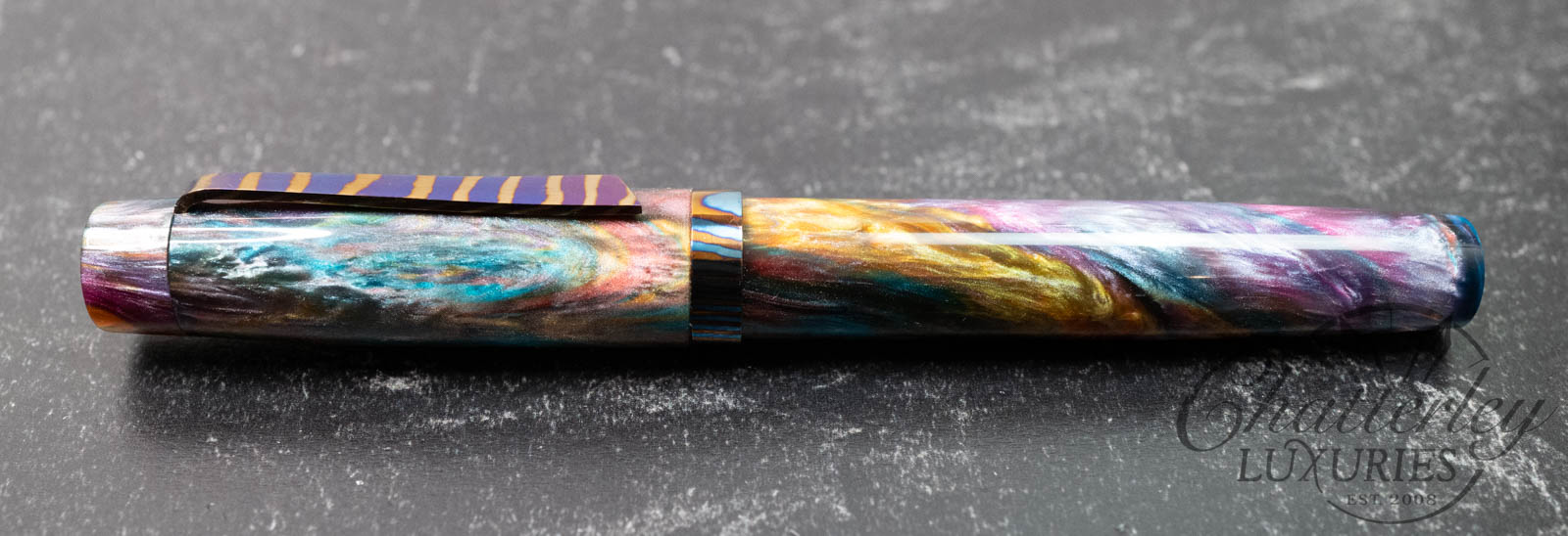 Atelier Lusso Carina 15 Rainbow Resin Fountain Pen with a Striped Timascus ClipAvailability: Only 1 left in stock