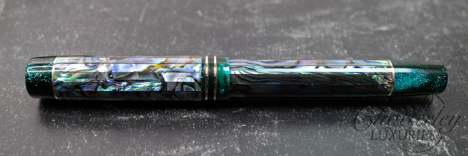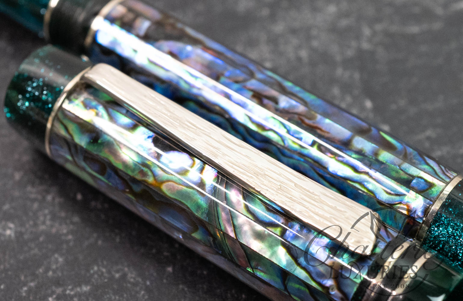 Atelier Lusso Carina Ragazzone Dark Mexican Abalone & Resin Fountain Pen with Hammered “Shredded” Clip