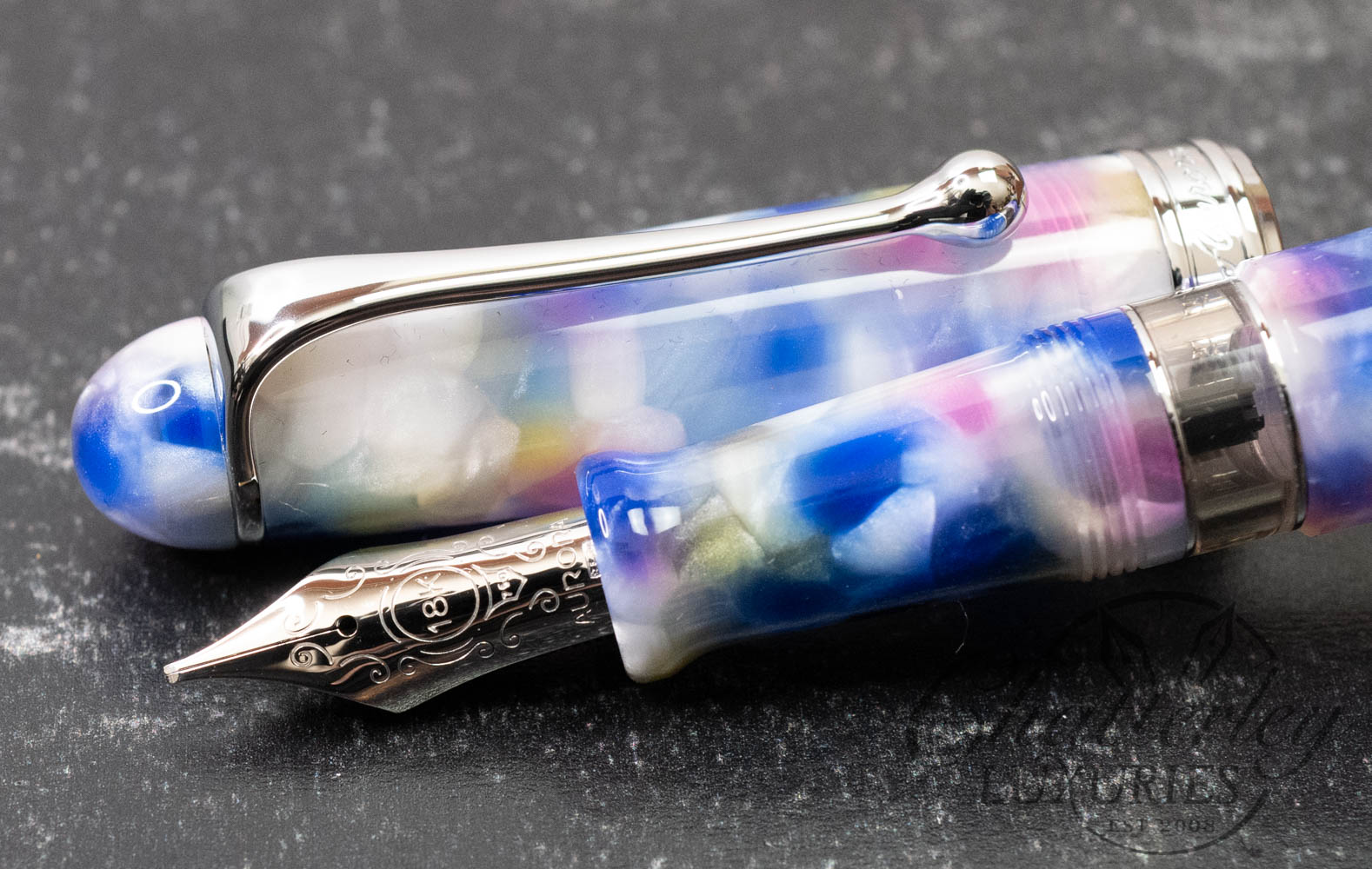 This pen is pre-owned, but in perfect, almost new condition. It does not come with a box or papers. It is equipped with an 18k Gold Italic nib.