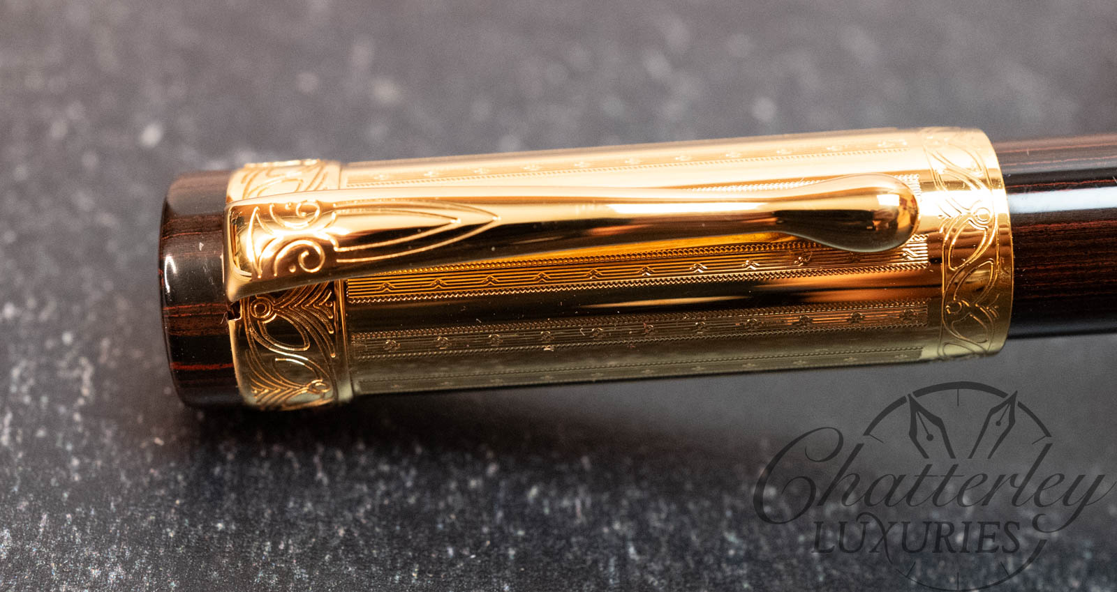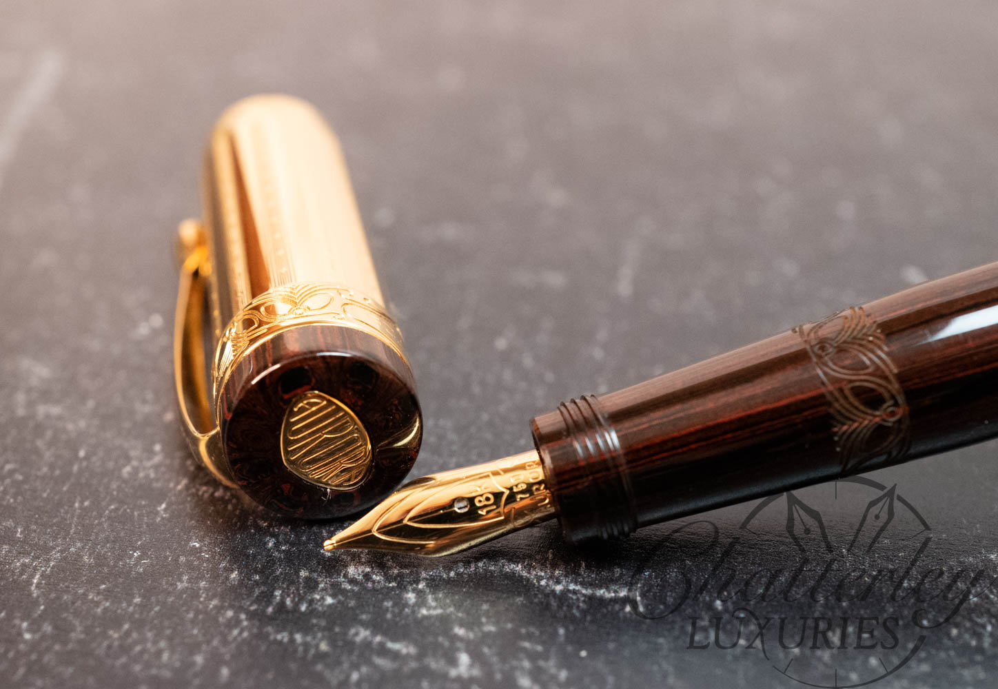 Limited and numbered edition: 1,919 vermeil cap fountain pens and a striped ebonite barrel.