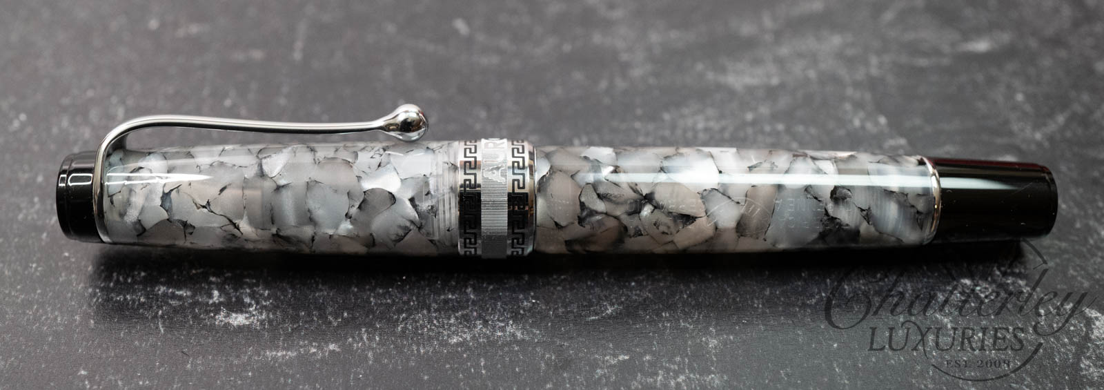 The cap and barrel in all versions are made of marbled Auroloide, an antique material, yet refined and prestigious.