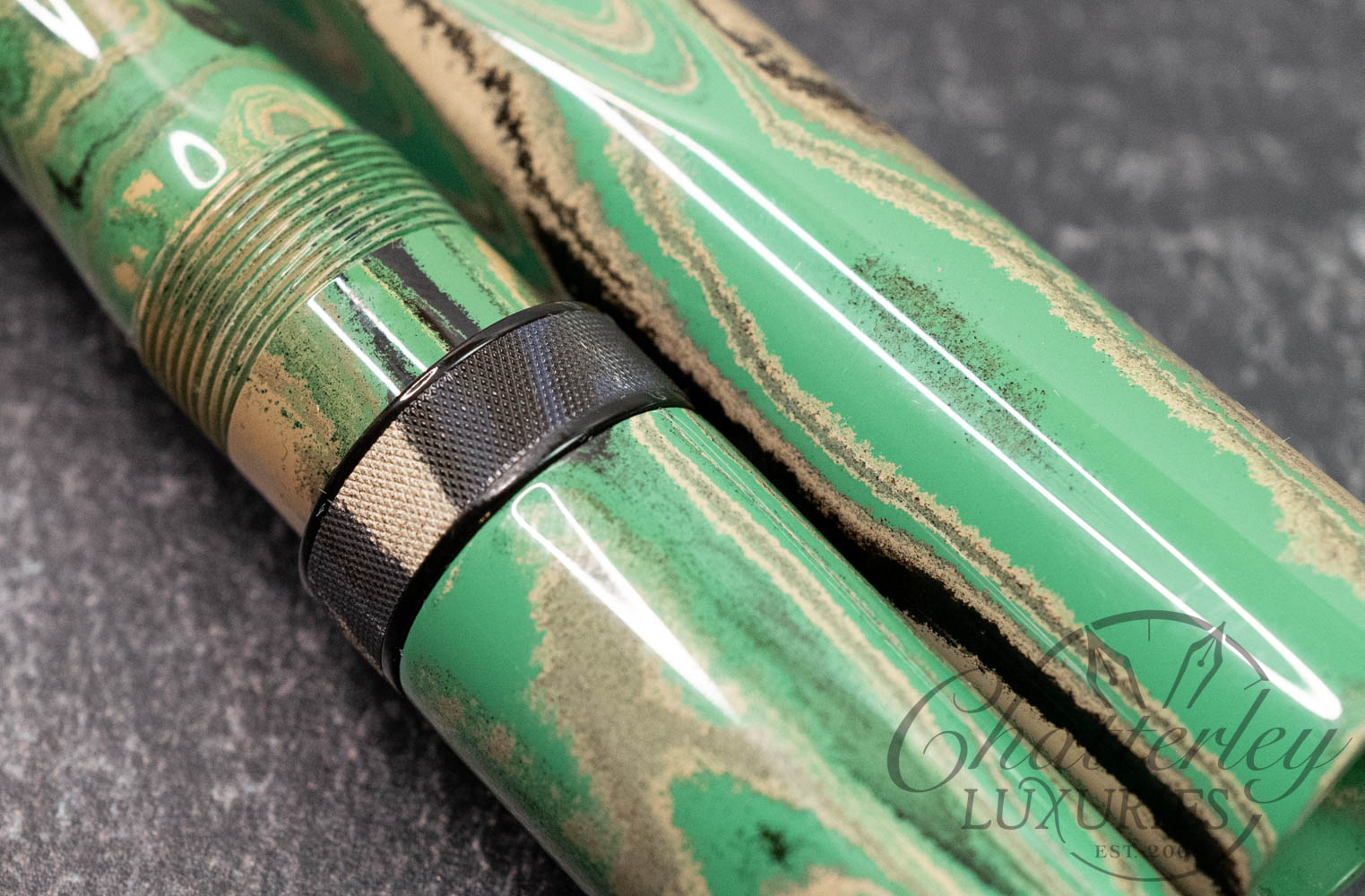 Middle Ring is hand carved and Knurled from Ebonite to match the pen