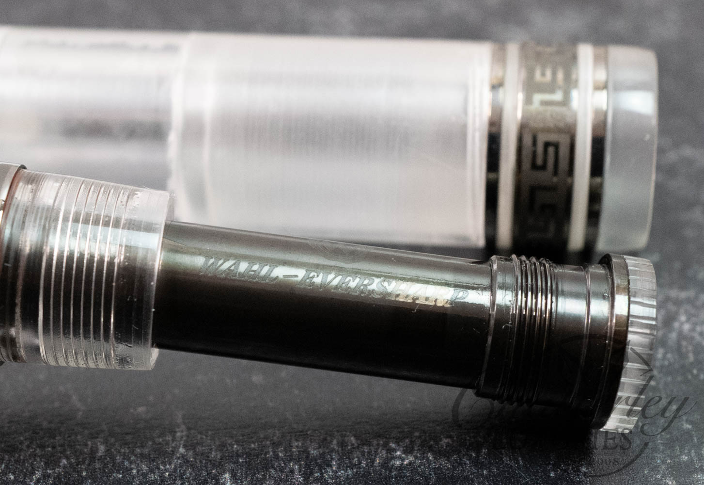 The pens body, cap, section and cap finial are all made of clear resin. Unlike injection molded pens which almost all the other clear pens in the market, these are hand turned and this makes them very difficult to make.