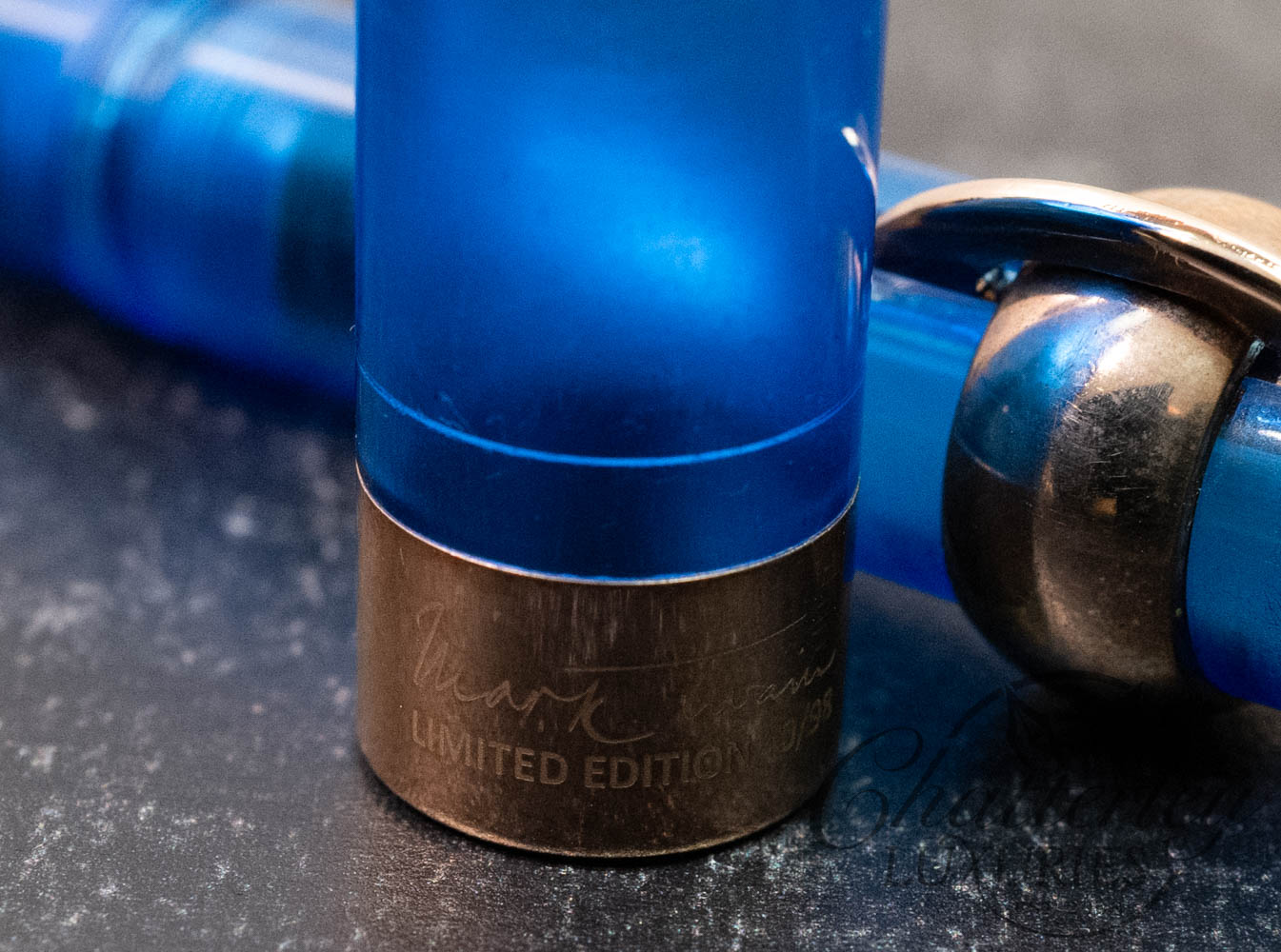 This Mark Twain Demonstrator Crescent Filler® is limited to 98 numbered pieces world-wide. Mark Twain’s signature is engraved on the cap band along with the individual limited edition number for each fountain pen.