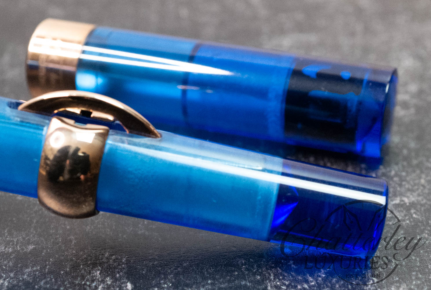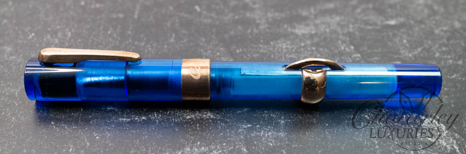 Accented in a luxurious rose gold for the clip, trim, and crescent filling mechanism, the Demonstrator design and contrasting trim brings the original Crescent fountain pen into the 21st Century.