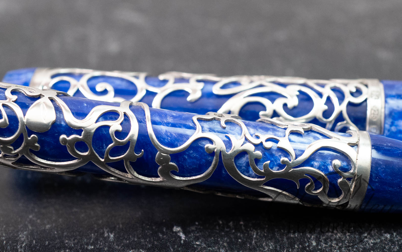 With every Simpole designed overlay for Conway Stewart, Henry meticulously works into the design the initials ‘C’ & ‘S’ (Conway Stewart). Many people who have purchased previous overlays through Conway Stewart are not aware of the letters that are woven into the design. This design feature alone can take up to another 40 hours in making certain that the two initials work harmoniously within the filigree pattern. The Chatsworth Collection takes this to another step, and not only are the initials ‘C’ and ‘S’ incorporated, there are two further letters; ‘J’ and ‘G’ in honour of the two founders of this great British pen company in 1905, Jarvis and Garner.
