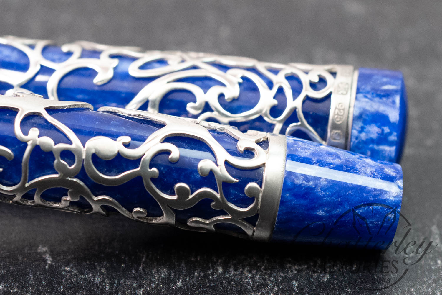 With every Simpole designed overlay for Conway Stewart, Henry meticulously works into the design the initials ‘C’ & ‘S’ (Conway Stewart). Many people who have purchased previous overlays through Conway Stewart are not aware of the letters that are woven into the design. This design feature alone can take up to another 40 hours in making certain that the two initials work harmoniously within the filigree pattern. The Chatsworth Collection takes this to another step, and not only are the initials ‘C’ and ‘S’ incorporated, there are two further letters; ‘J’ and ‘G’ in honour of the two founders of this great British pen company in 1905, Jarvis and Garner.