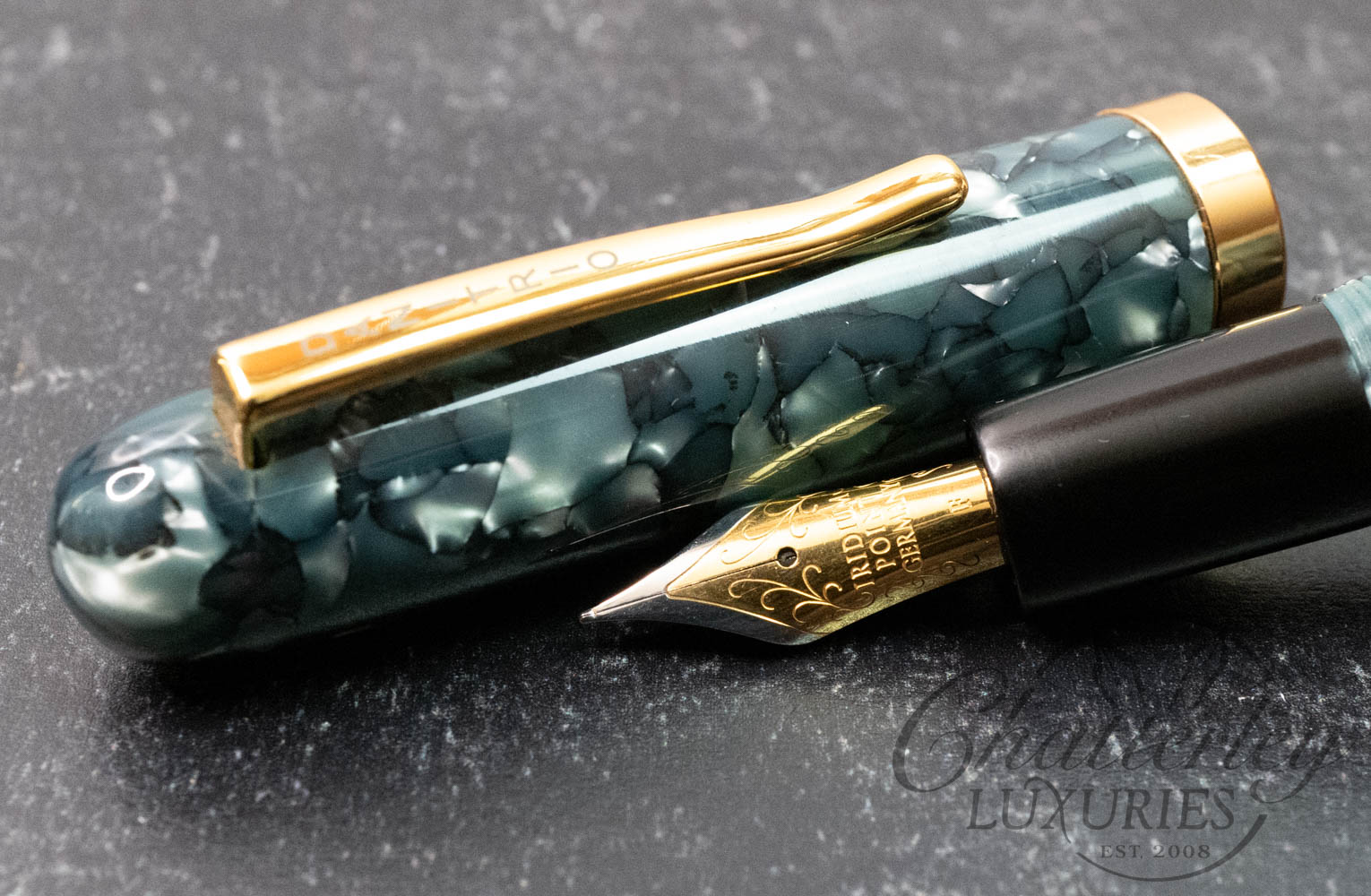 Danitrio Cum Laude Gray Blue Cracked Celluloid Fountain Pen