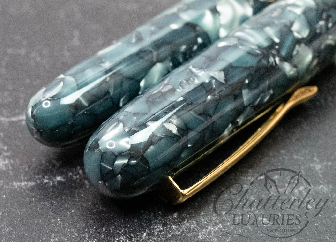 Danitrio Cum Laude Gray Blue Cracked Celluloid Fountain PenAvailability: Only 1 left in stock