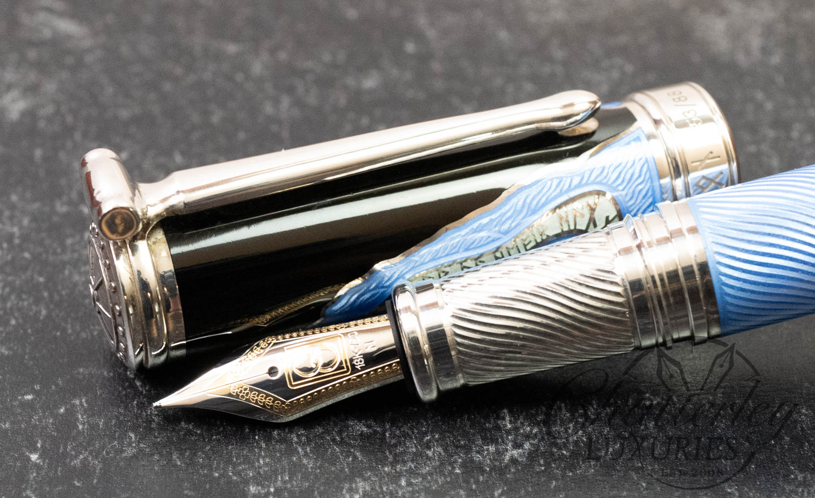 This pen is Pre-owned, and in like-new condition. It comes complete with a box and papers. It is equipped with an 18k Medium nib and fills via a cartridge converter or eyedropper filling system.