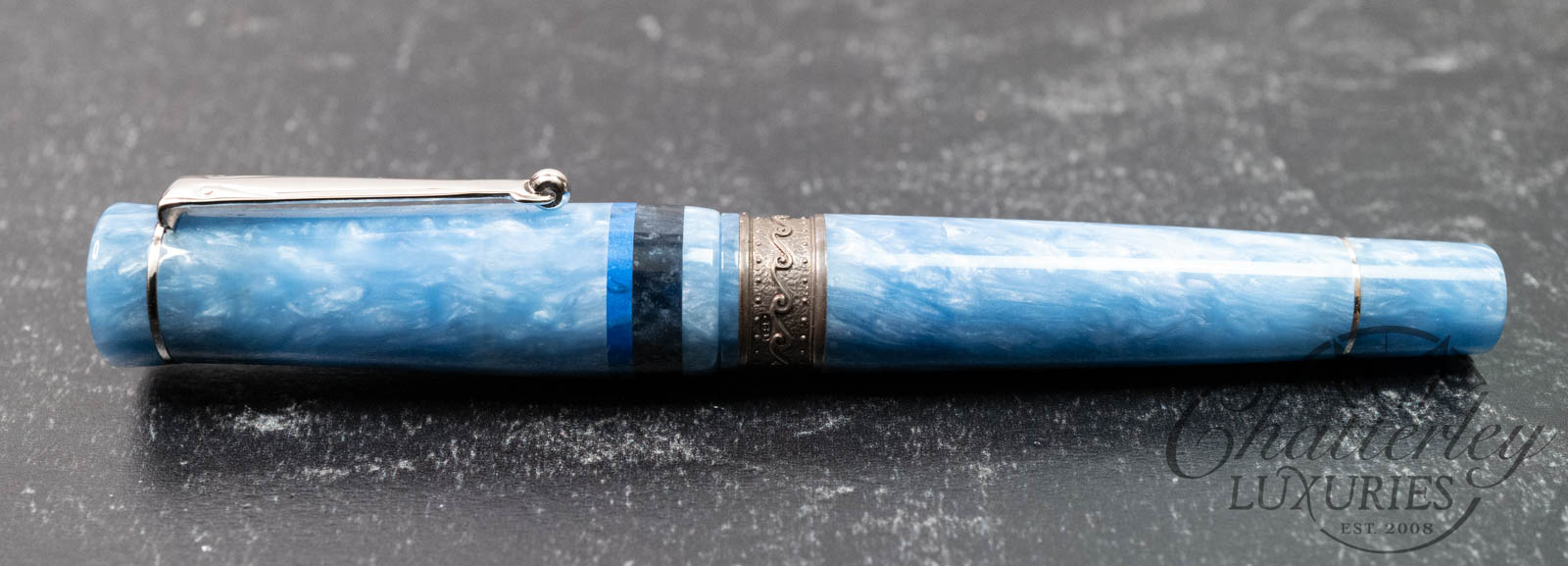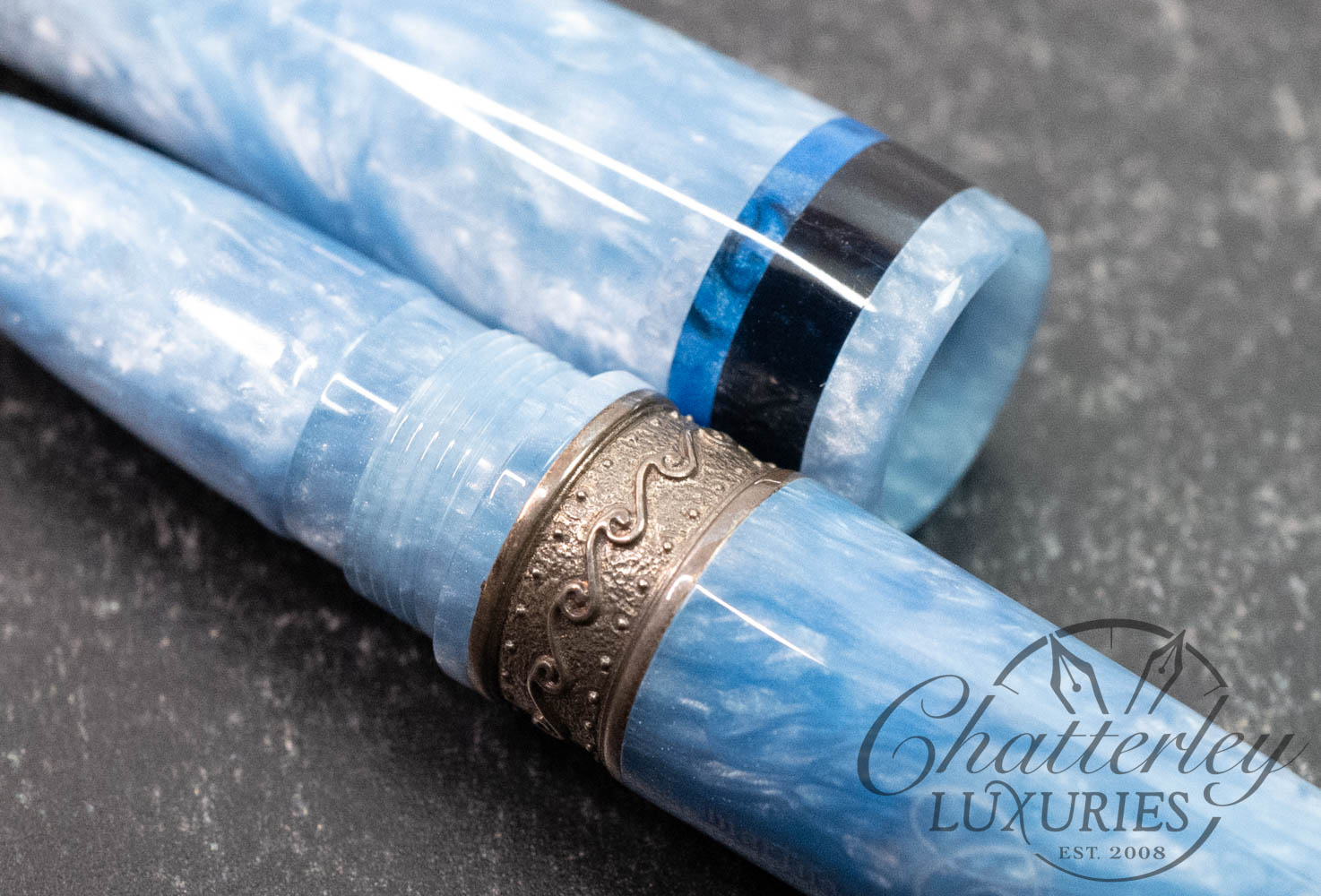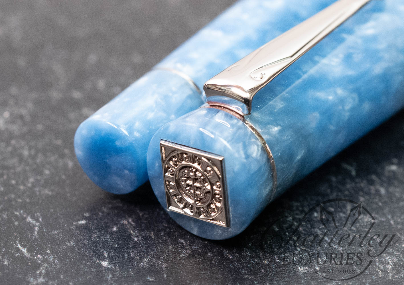 The Capri writing instruments are made of special resin worked by hand from solid bars and polished to a mirror like surface in colors chosen to match the distinct and characteristic blue of this island. The very dark deep-sea blue from Blue grotto for the limited edition, and the light and dark blue for Marina piccola and Marina grande. All versions available in fountain pen, roller ball or ballpoint pen.