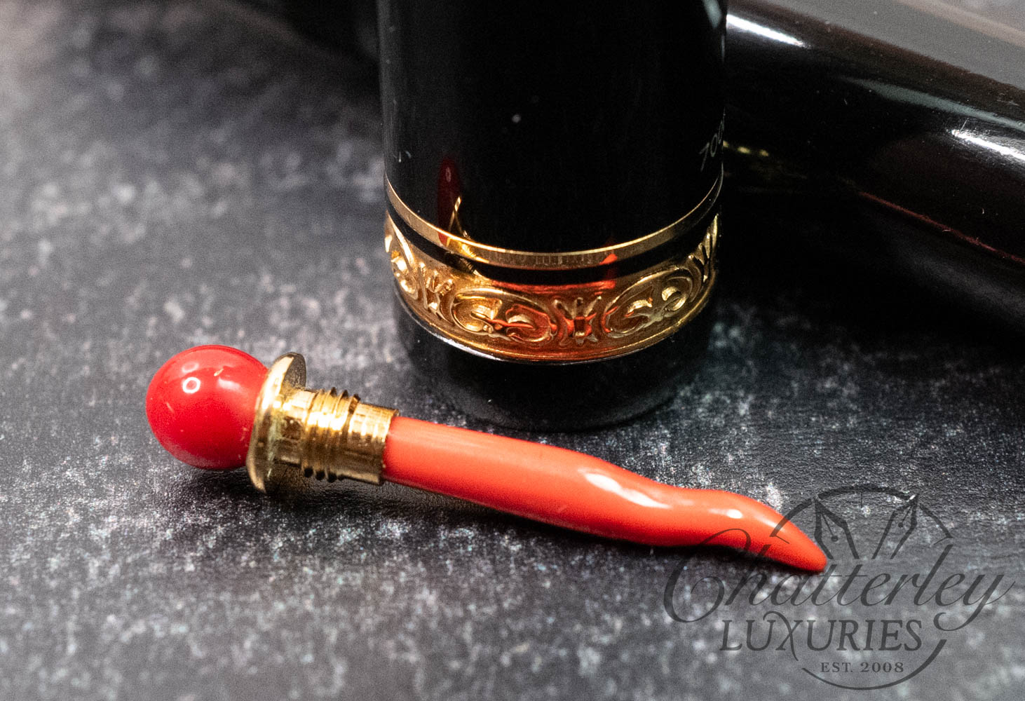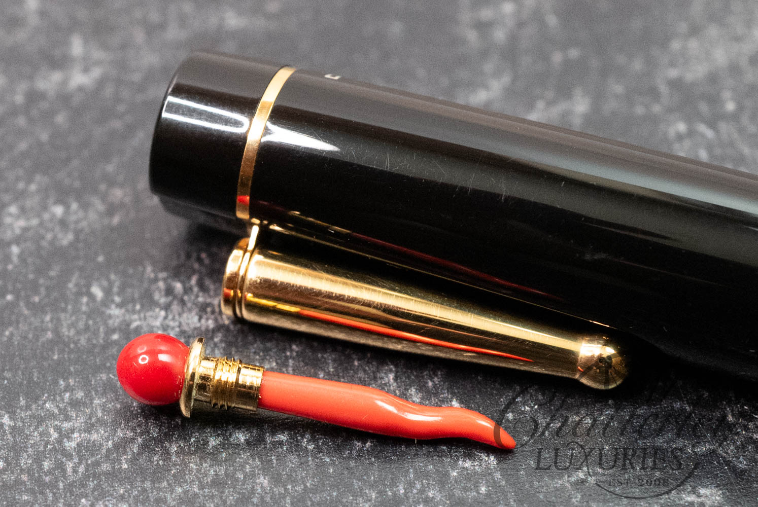 This pen is a New Old Stock pen that has never been used and comes complete with a box and papers. It is equipped with a 14k Fine nib and fills via Cartridge Convertor/ Cartridge.