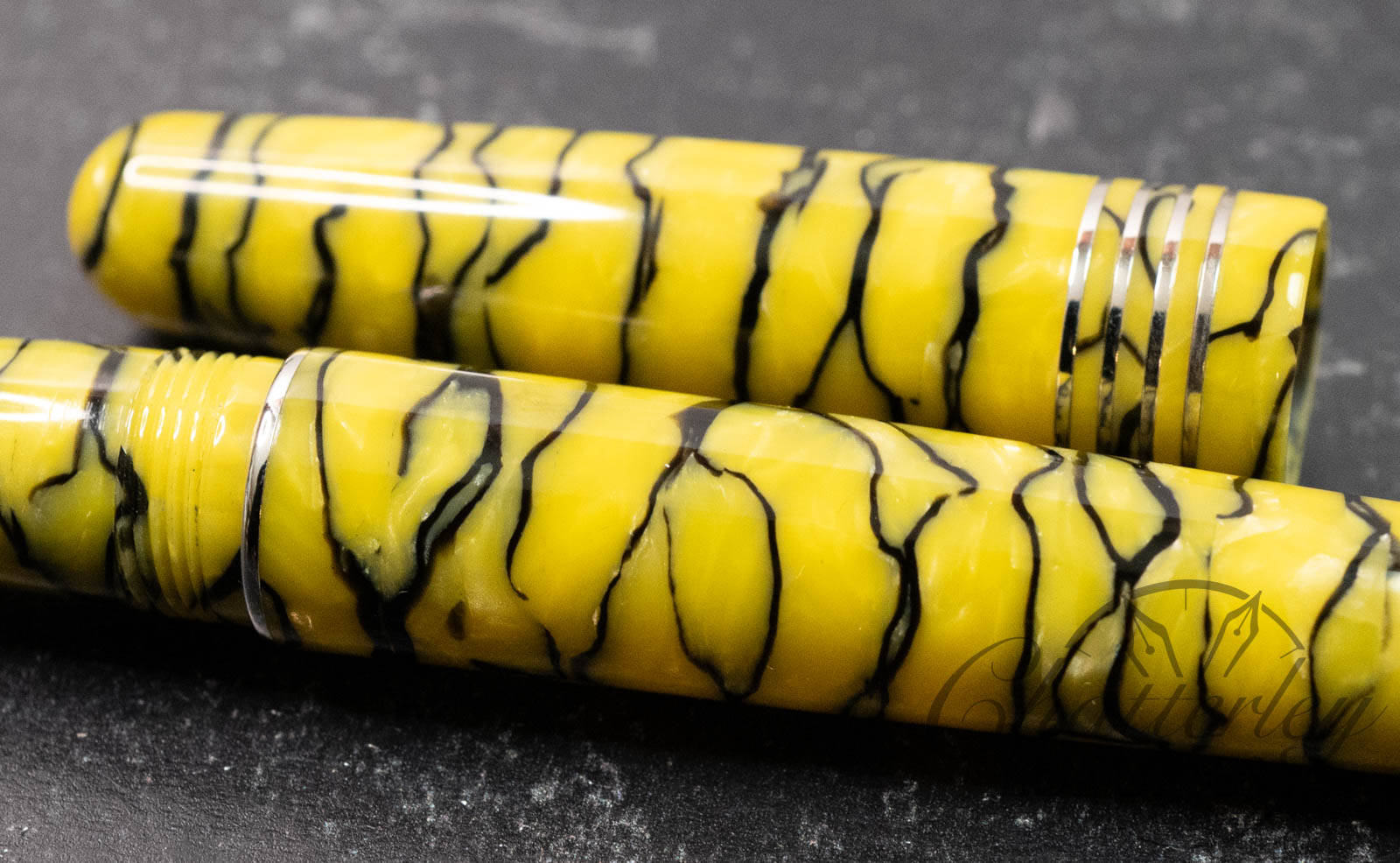 Delta Rediscover Pompeii 2025 is a numbered limited-edition fountain pen in yellow-and-black celluloid, created as a deliberate nod to Pompeii’s rediscovered color history—drawing from the original yellow ocher tones revealed through archaeological research.