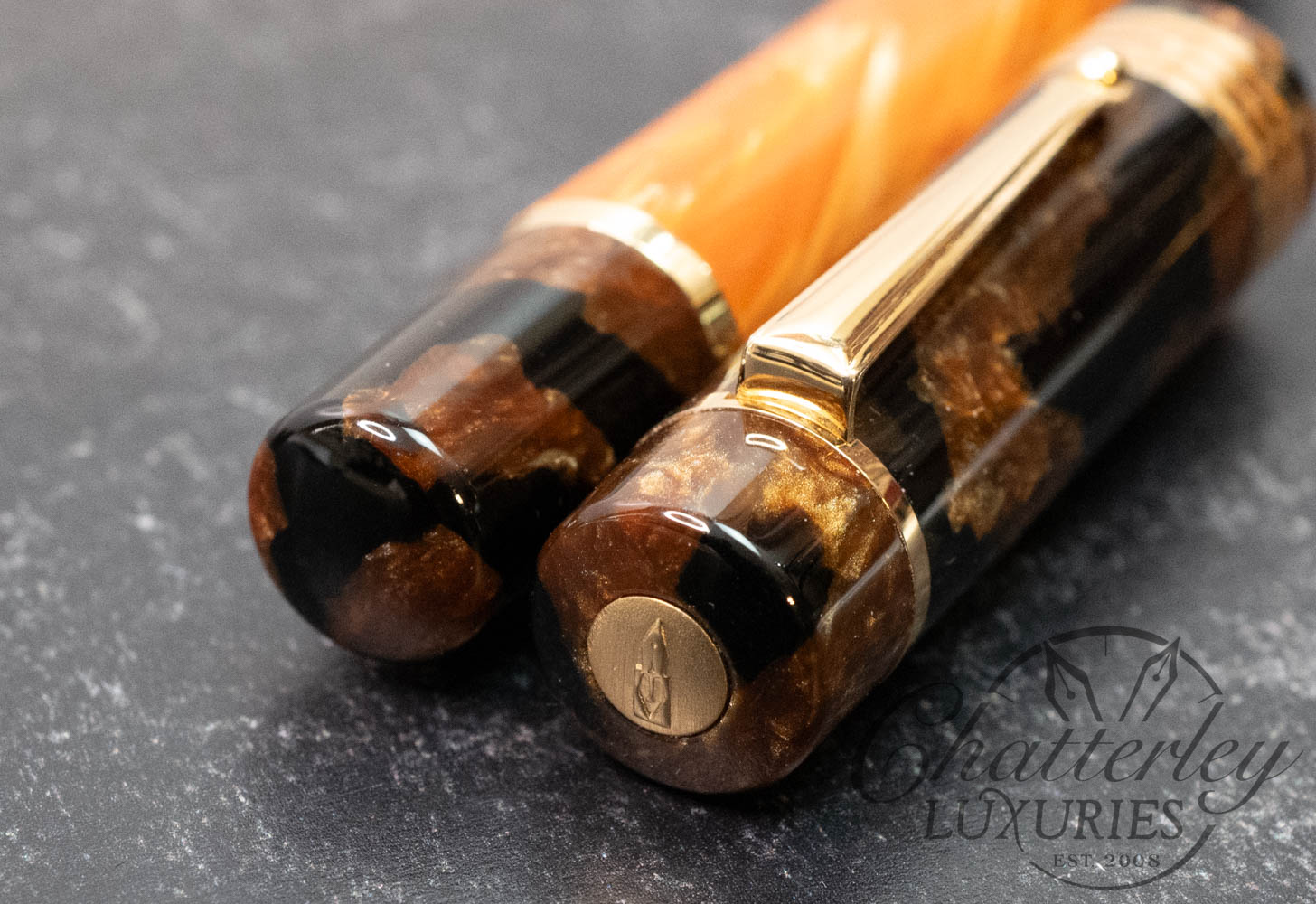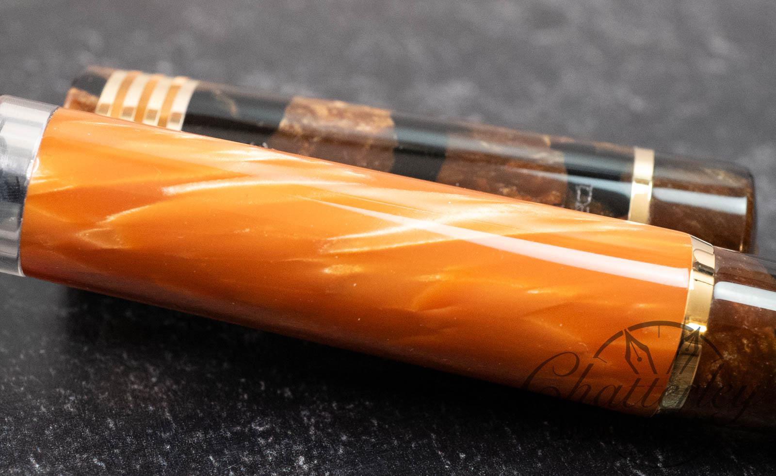 This extraordinary fountain pen, crafted from pure vintage celluloid, pays homage to history and elegance. Its colors have been carefully chosen to evoke the nobility and grandeur of the Sforza family, one of the most influential dynasties of the Italian Renaissance. The rich, regal tones, echo the heraldic symbols and splendor of the Milanese court, blending art, history, and the art of writing into a single refined creation.