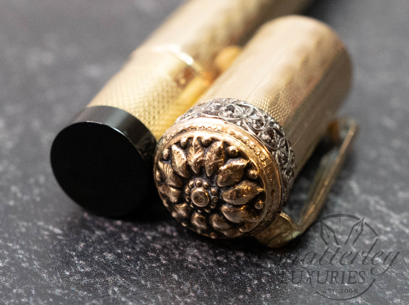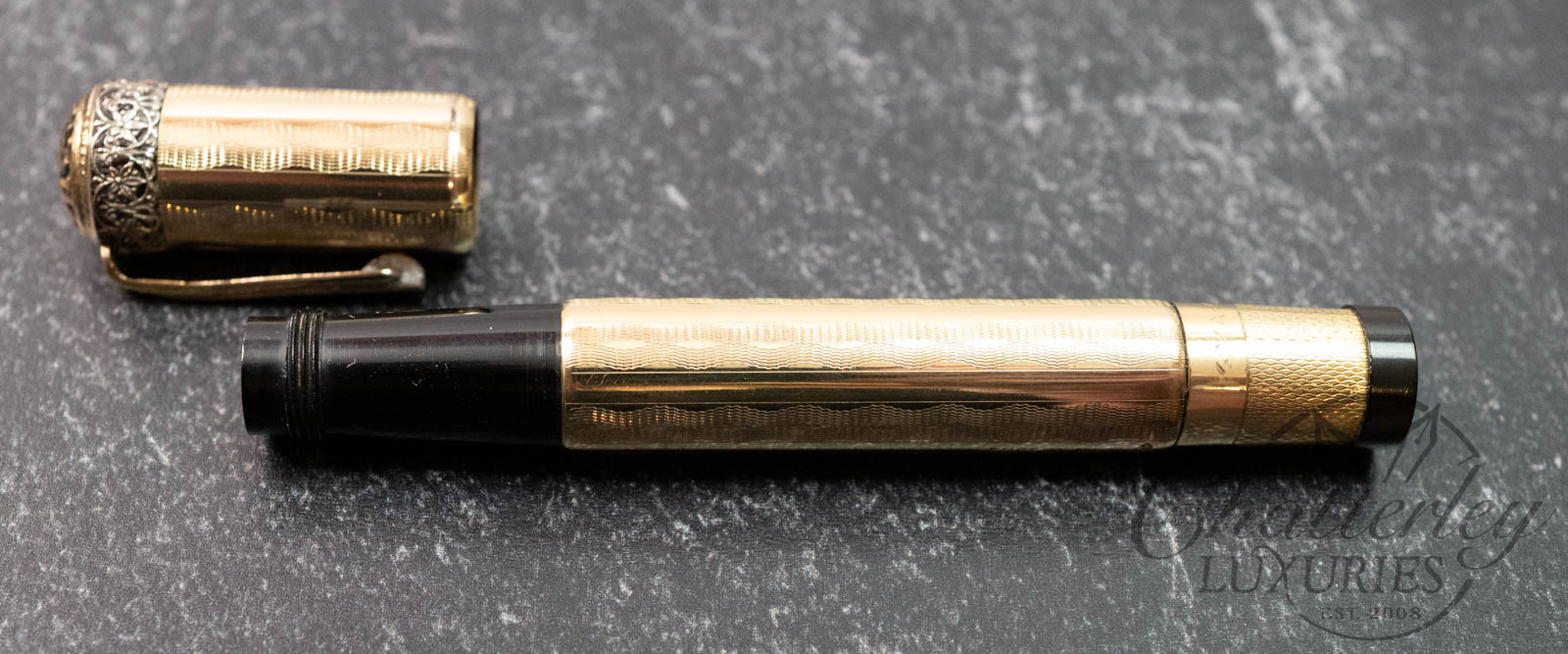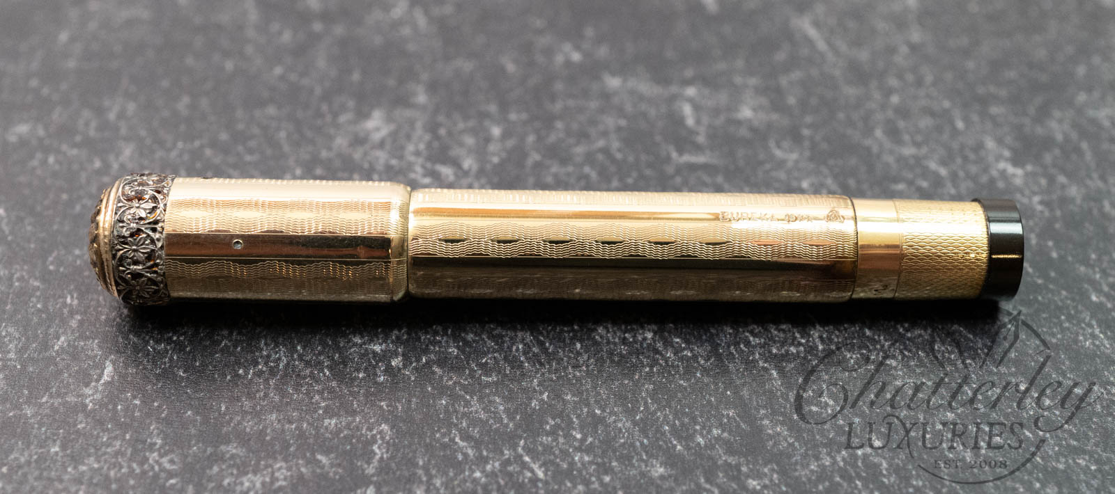 Eureka #2 Size Vintage Italian Overlay 18k Rolled-Gold Safety Fountain Pen