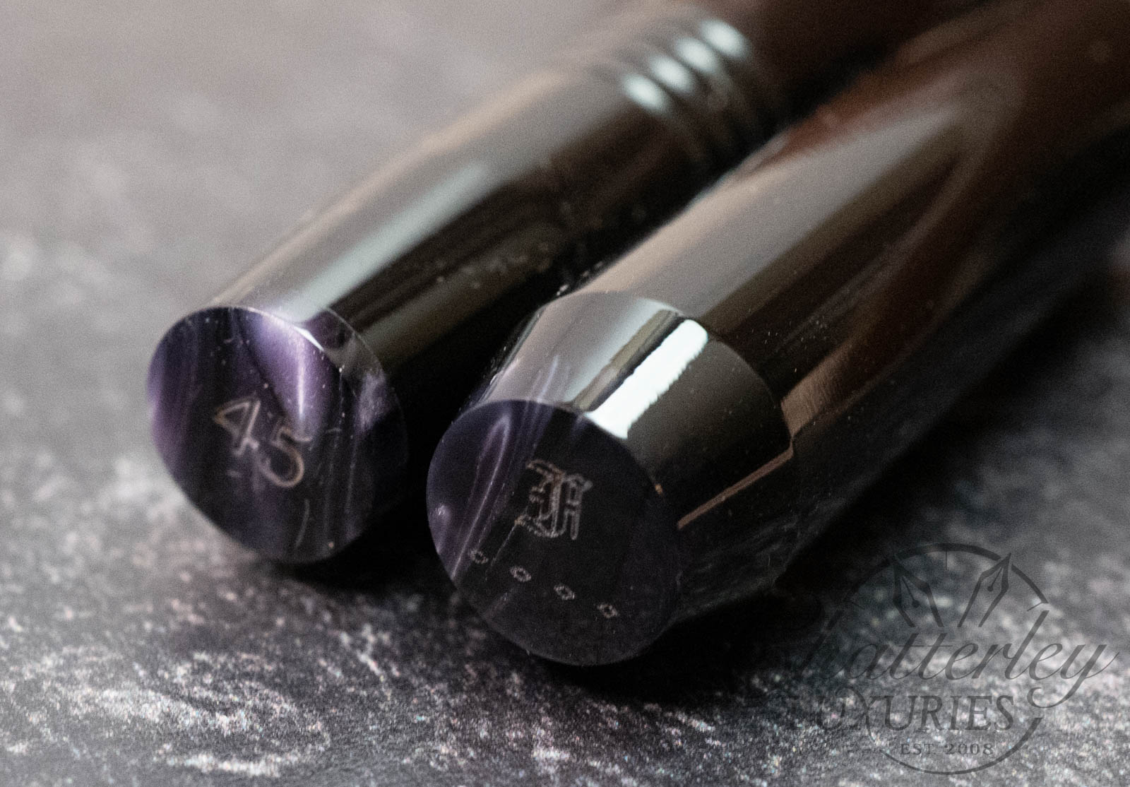 This pen is lovingly used and comes with a small Franklin Christoph box and pouch. It is equipped with a Steel, Nagahara Medium Stub #5 nib and fills via Cartridge or Eye Dropper.