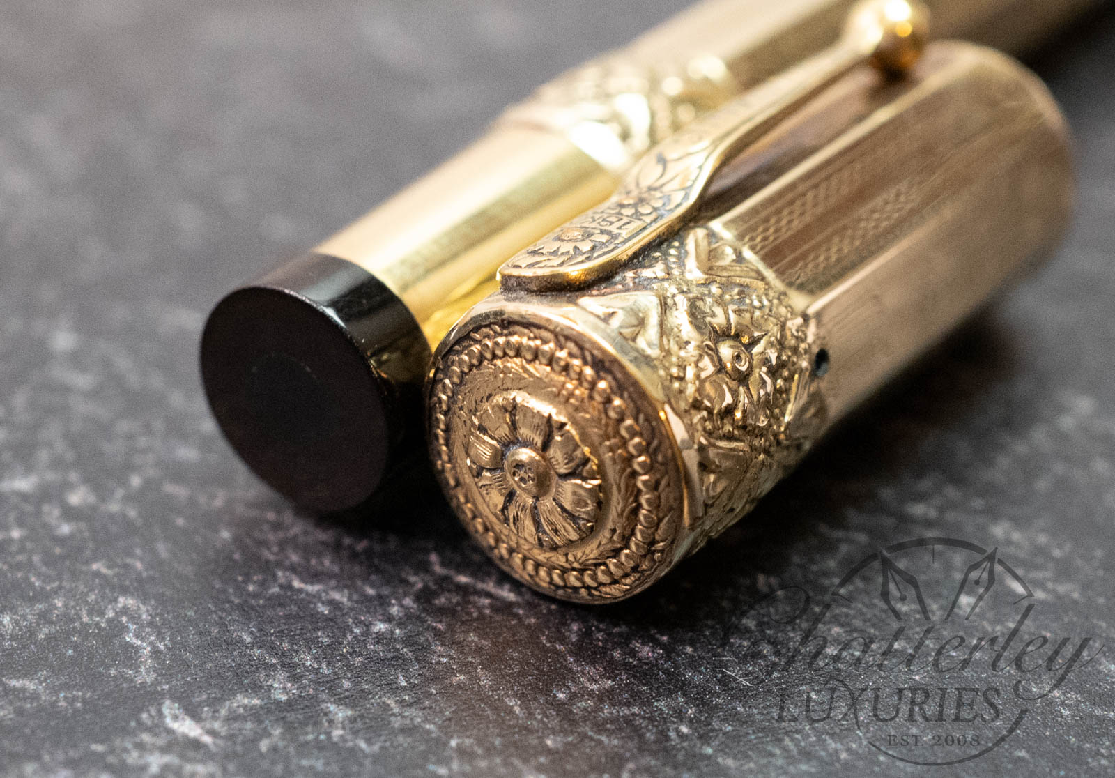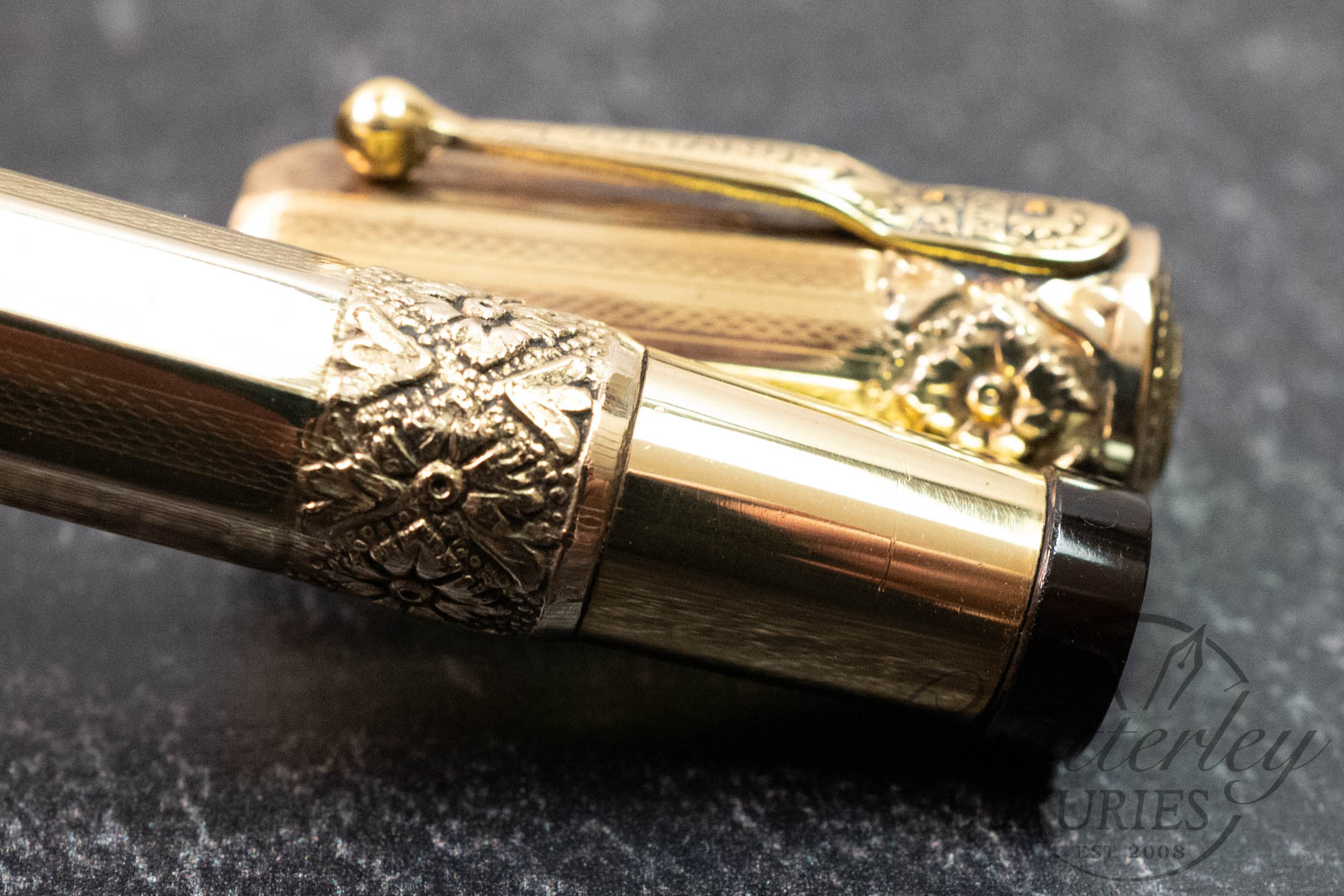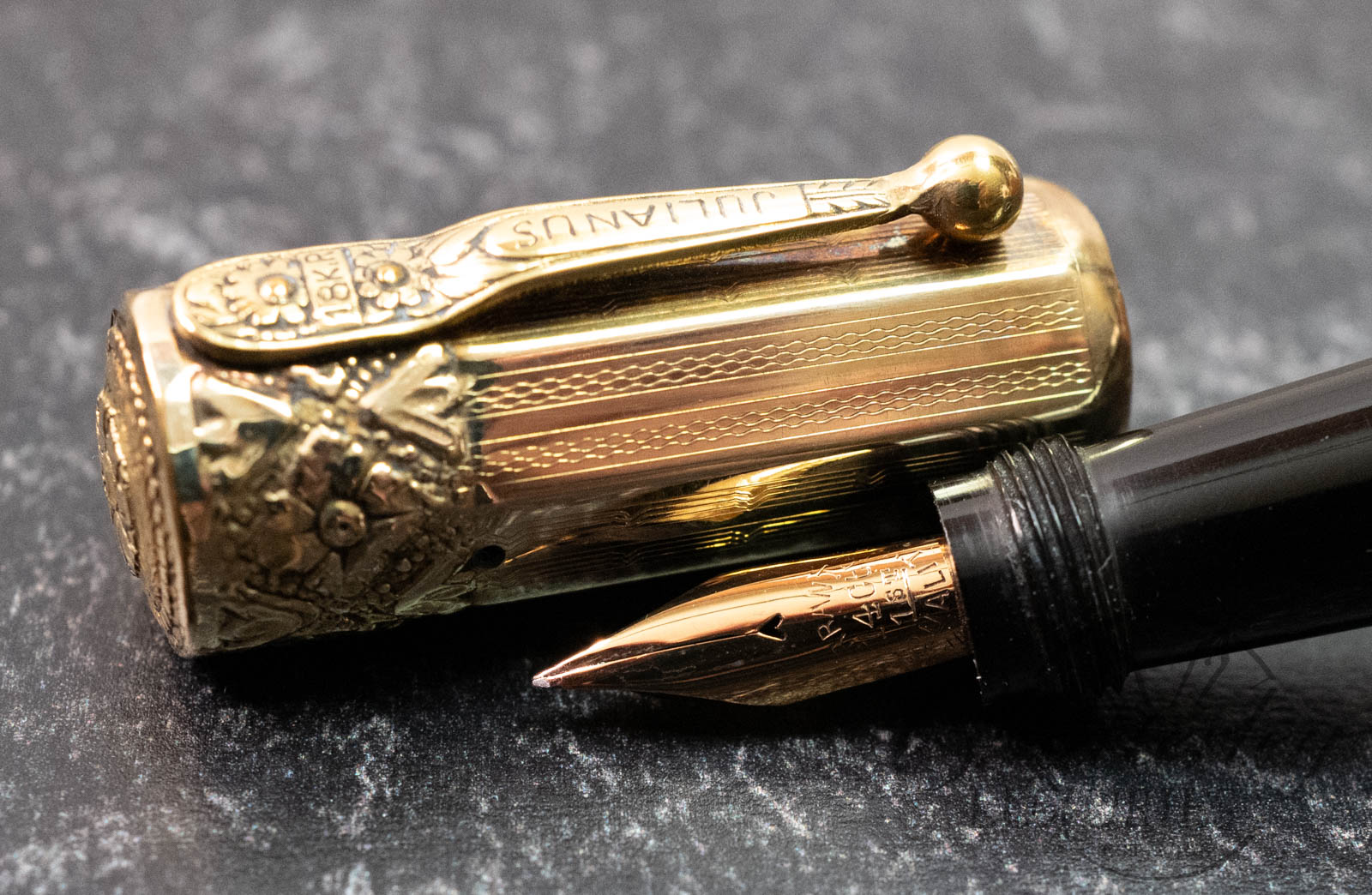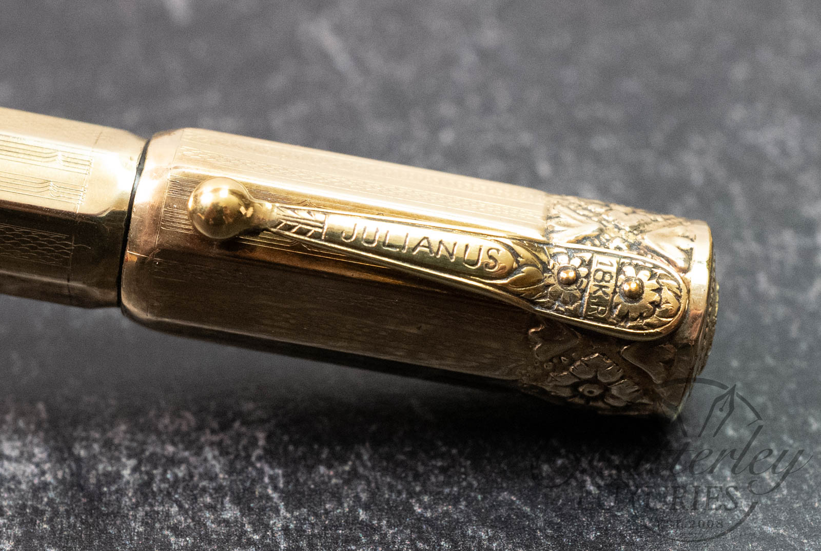 Julianus Vintage Italian Octagonal Overlay 18k Rolled-Gold Safety Fountain Pen