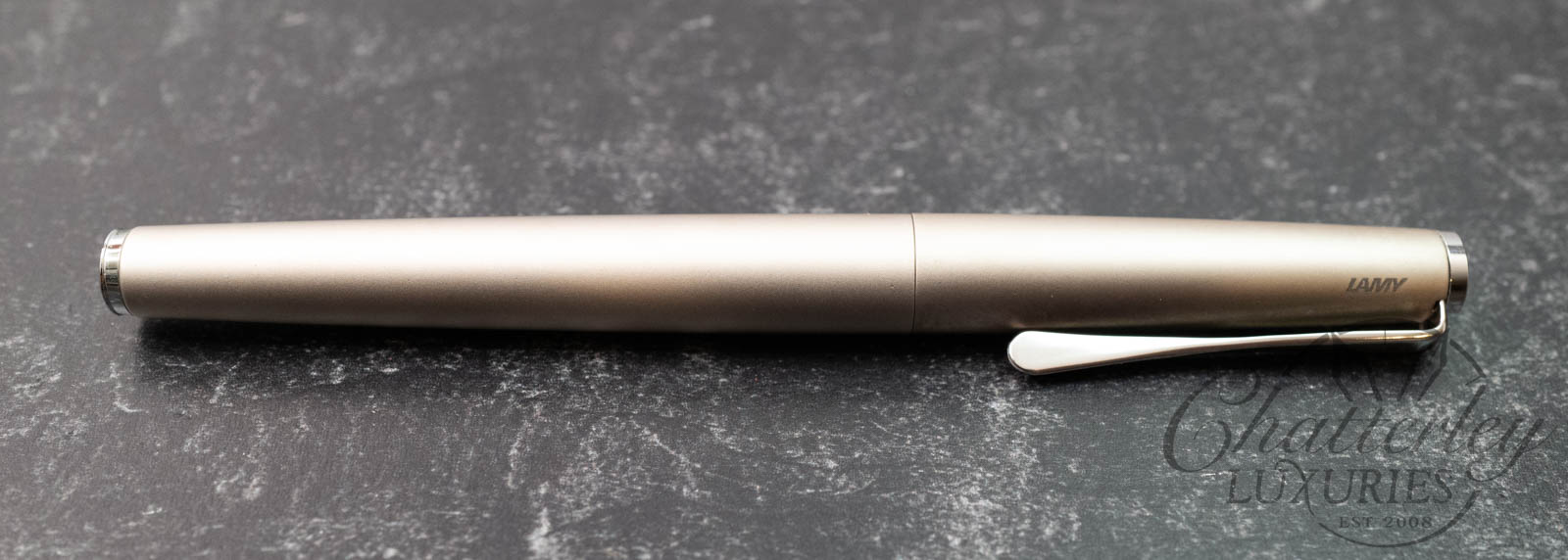 The modern look of the LAMY Studio has just the right hints of artistic flair to give it an elegant yet subtle design. This beautiful version features a palladium finish and two-tone 14k gold nib. A high-gloss chrome clip adorns the pen for a touch of shine.