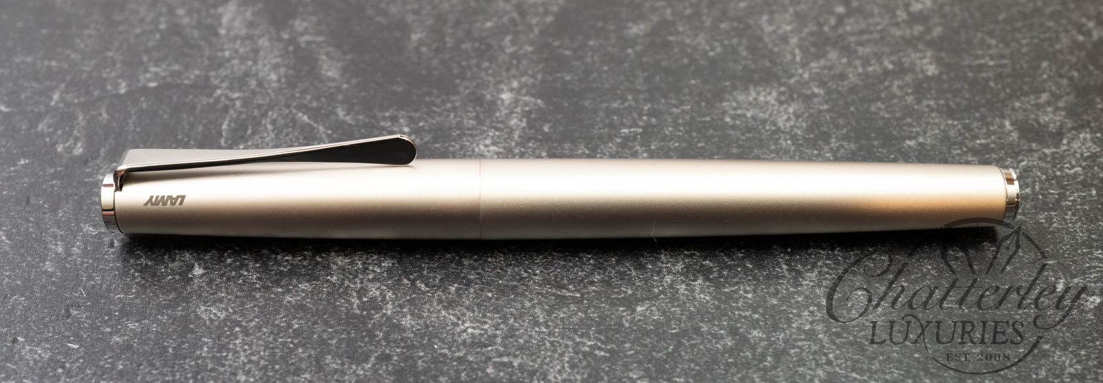 The modern look of the LAMY Studio has just the right hints of artistic flair to give it an elegant yet subtle design. This beautiful version features a palladium finish and two-tone 14k gold nib. A high-gloss chrome clip adorns the pen for a touch of shine.