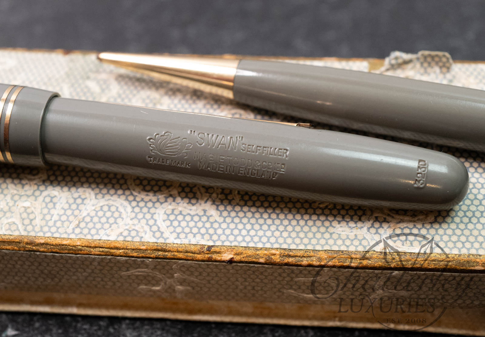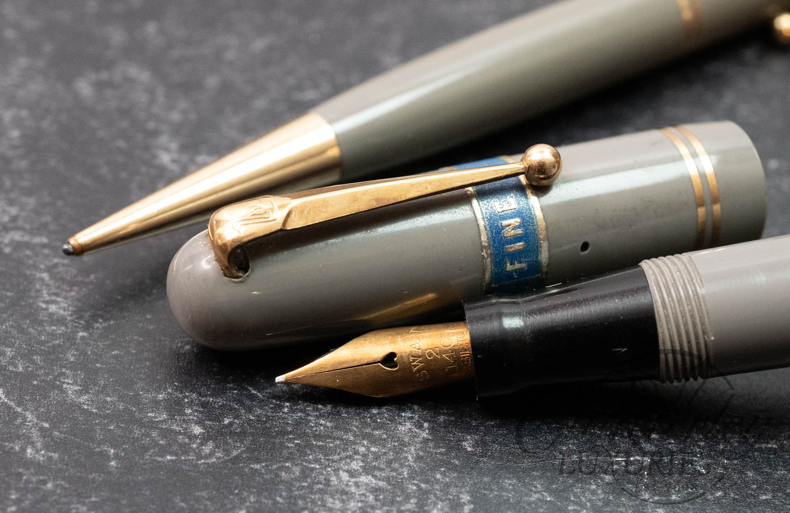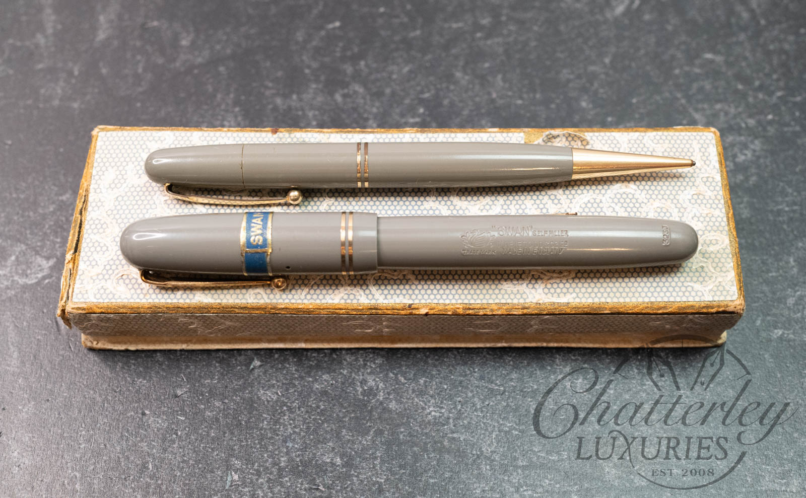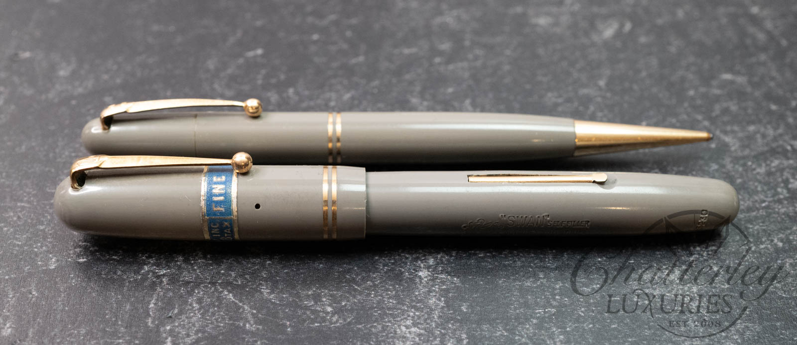 Mabie Todd & Co “Swan” Vintage Self Filler 3230 Celluloid Fountain Pen and Fyne Poynt Pencil Set
