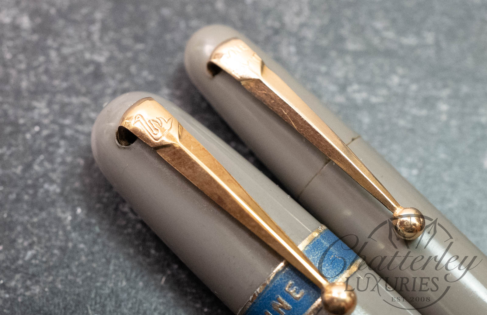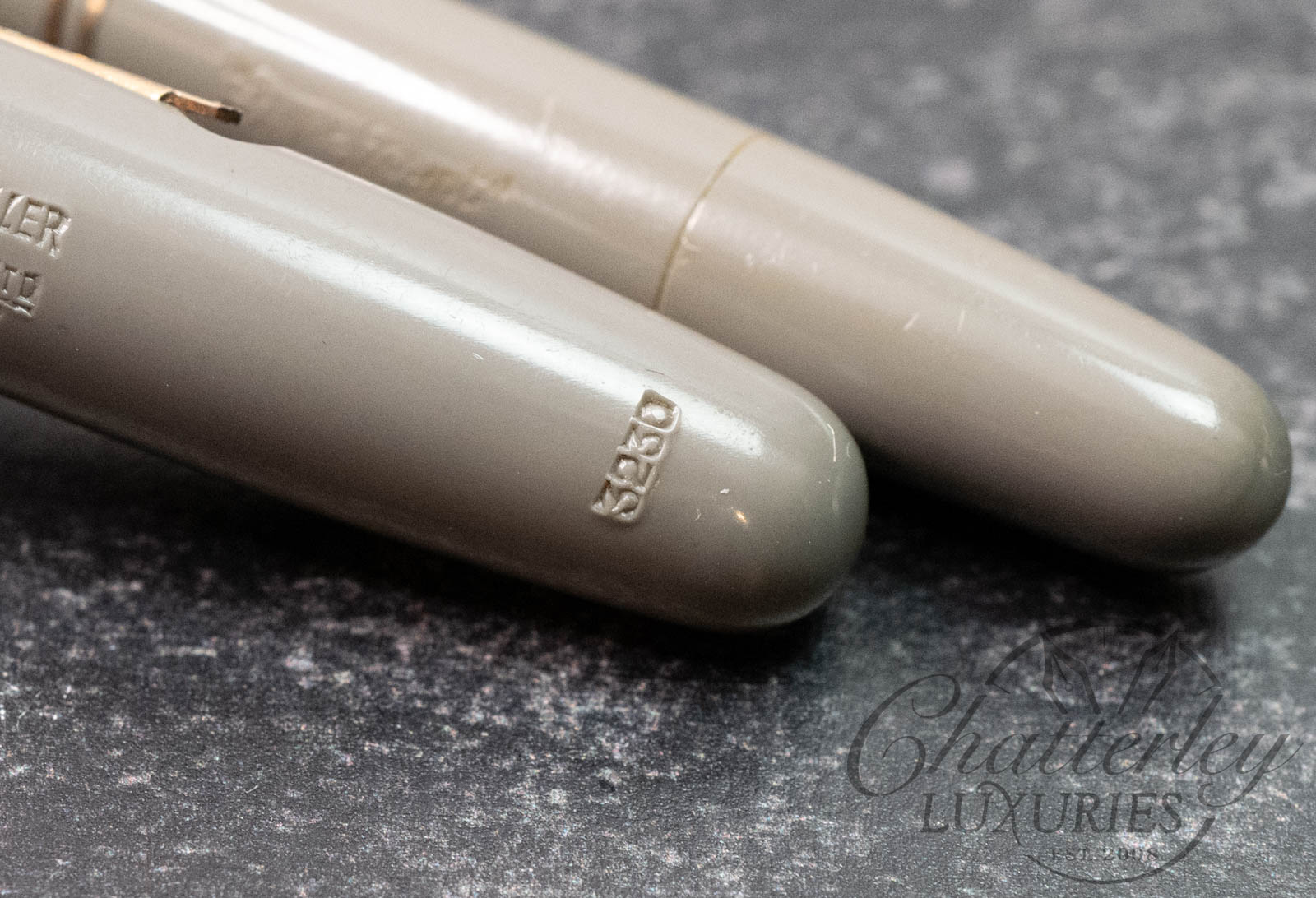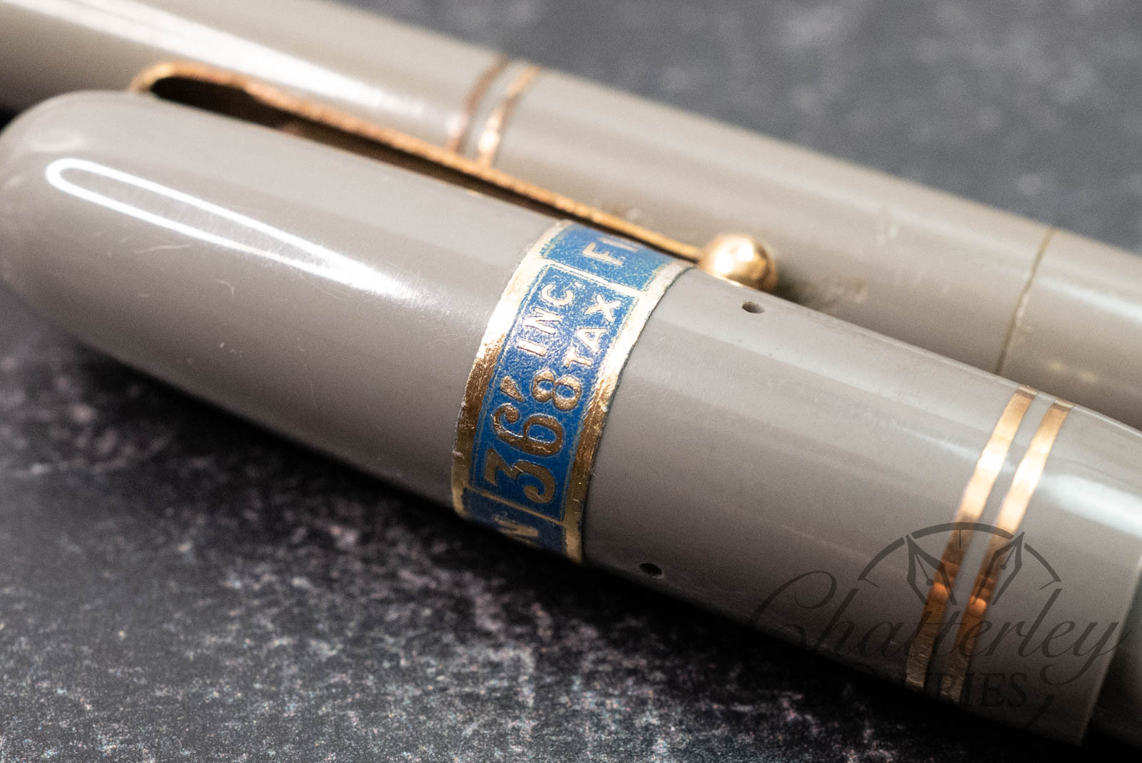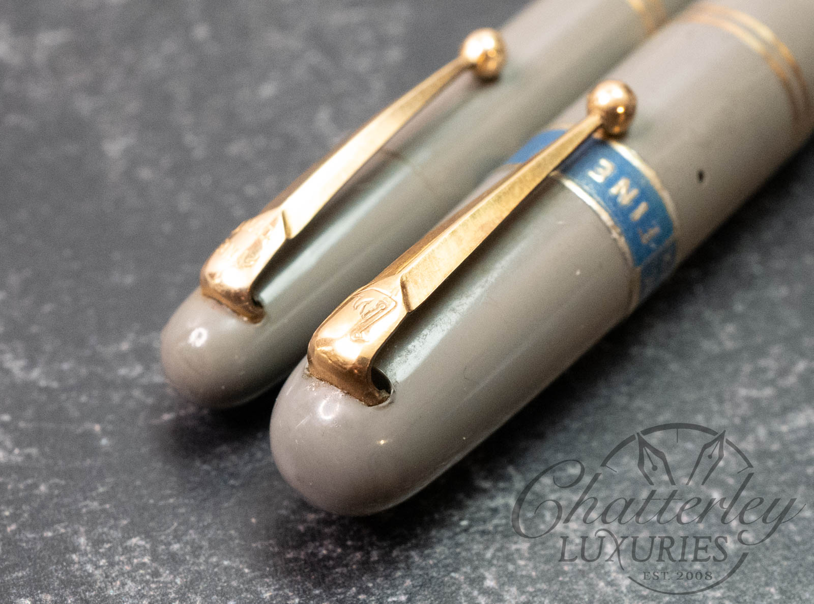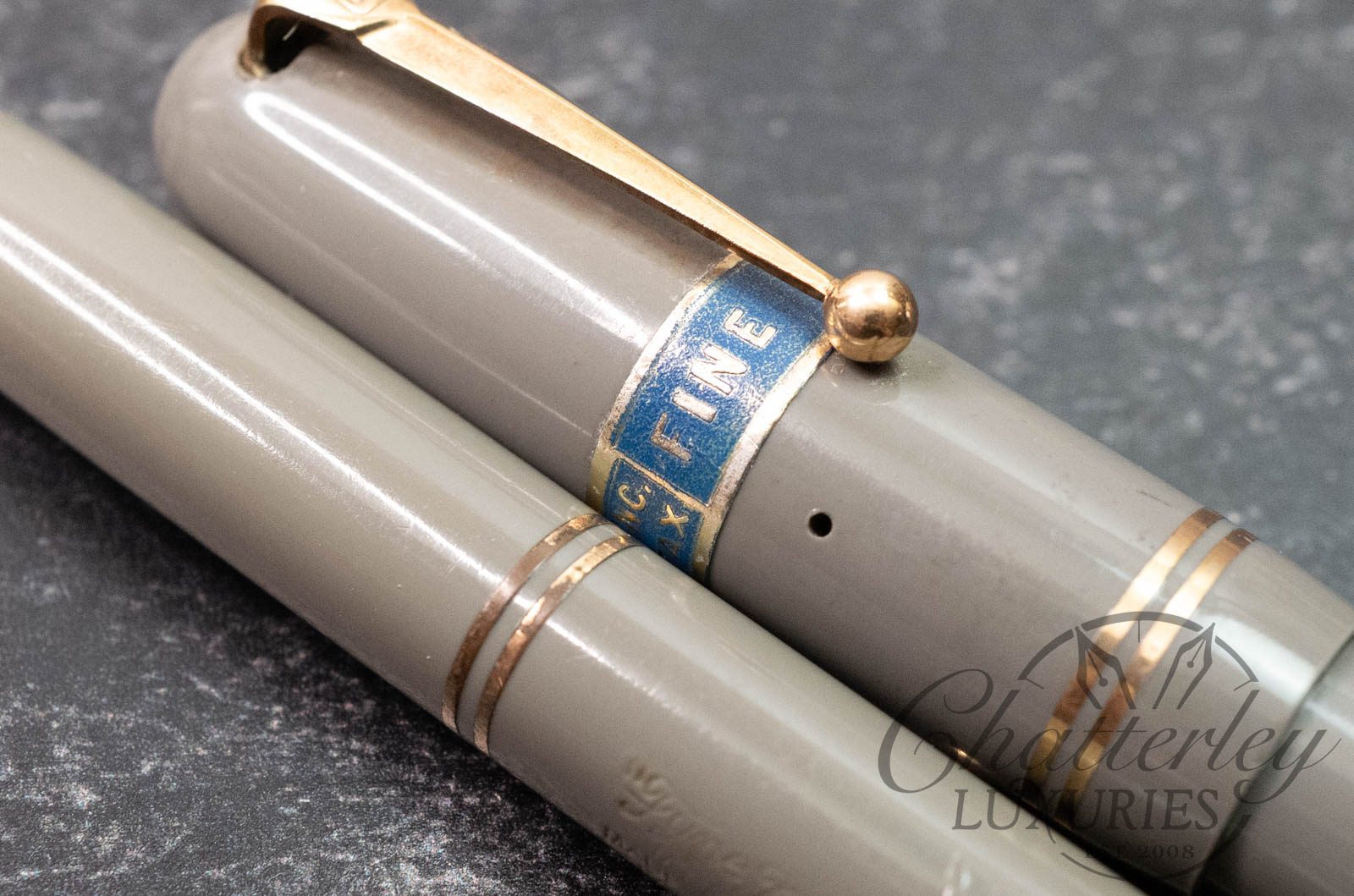 This is a vintage pen and pencil set that is lovingly used and comes with the original box, and Original Price tag!!! This is something you rarely see. The fountain pen is equipped with a 14k Fine, Mabie Todd #2 nib and fills via a lever filler. The pencil has a working refill, Â a wonderful set from the era.