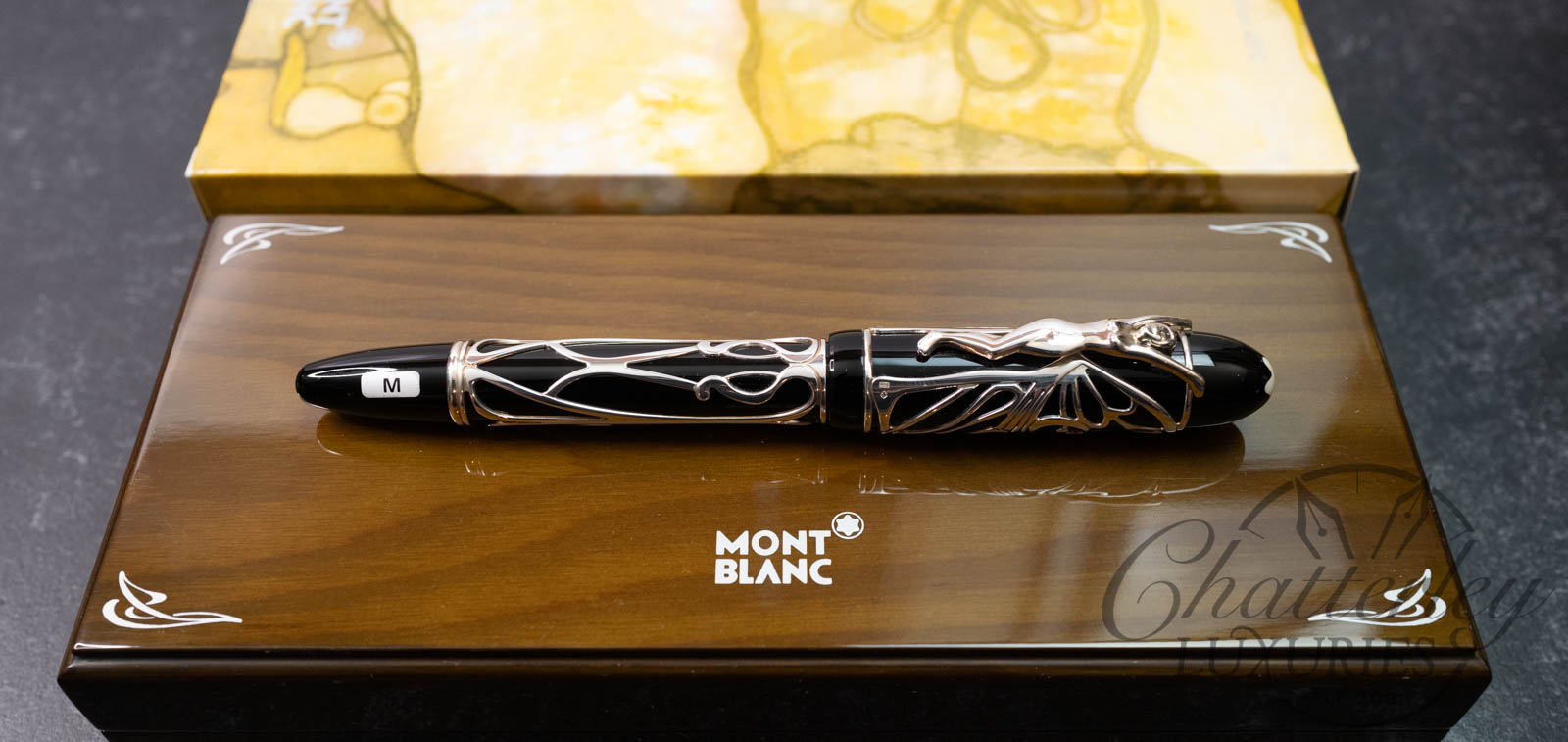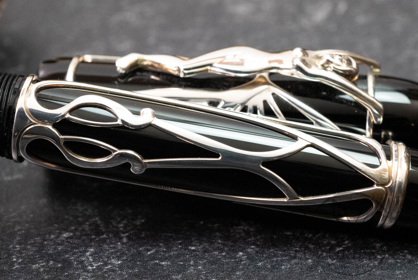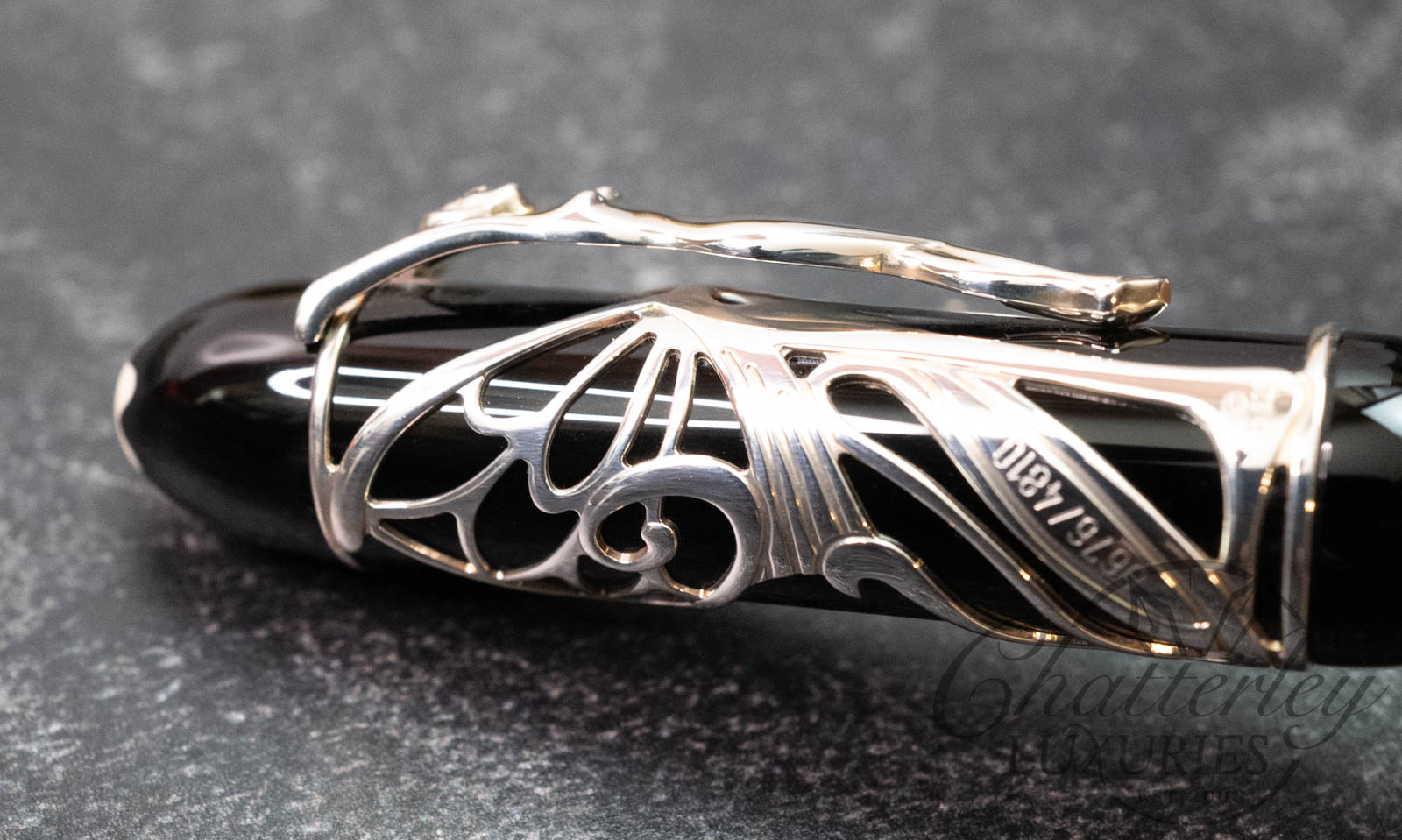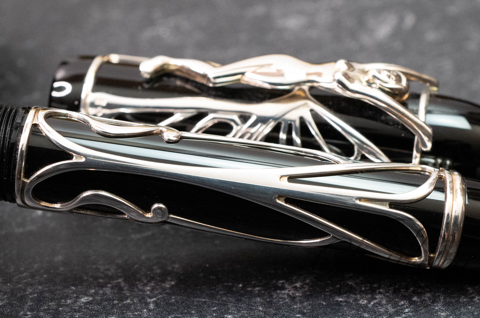 The stylish and elegant Patron of Art Edition Hommage à Andrew Carnegie recalls the artistic style that Carnegie supported so enthusiastically: art nouveau. The clip of the pen is a graceful female figure, whose wings wrap around the cap of the pen like a butterfly’s. The black of the barrel of Edition 4810 provides a striking contrast to this delicate fretwork effect in 925 sterling silver.
