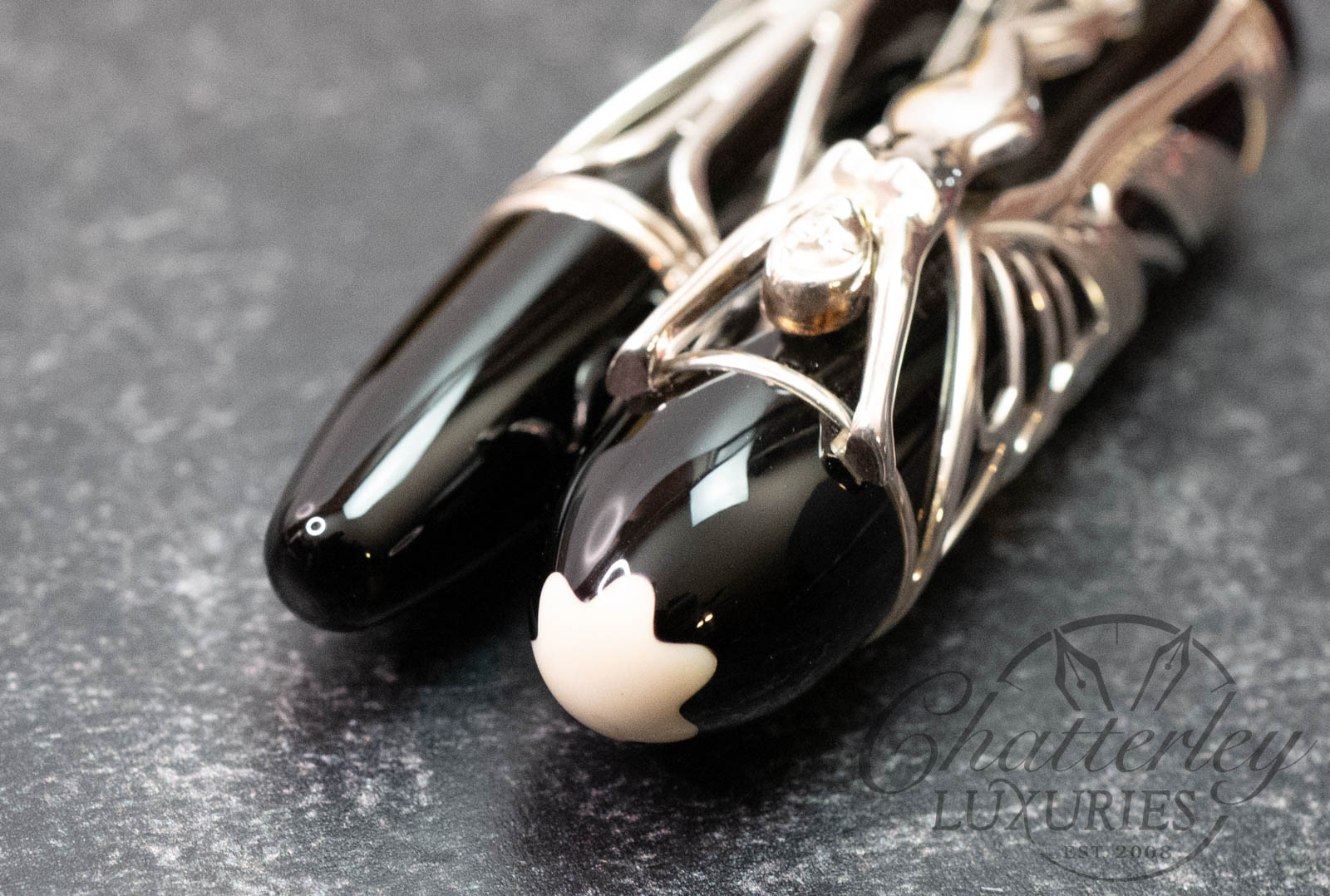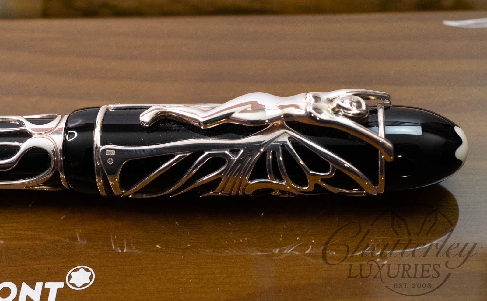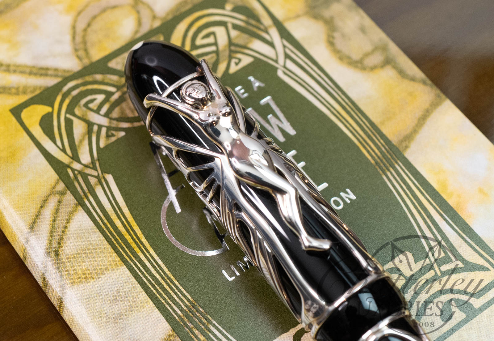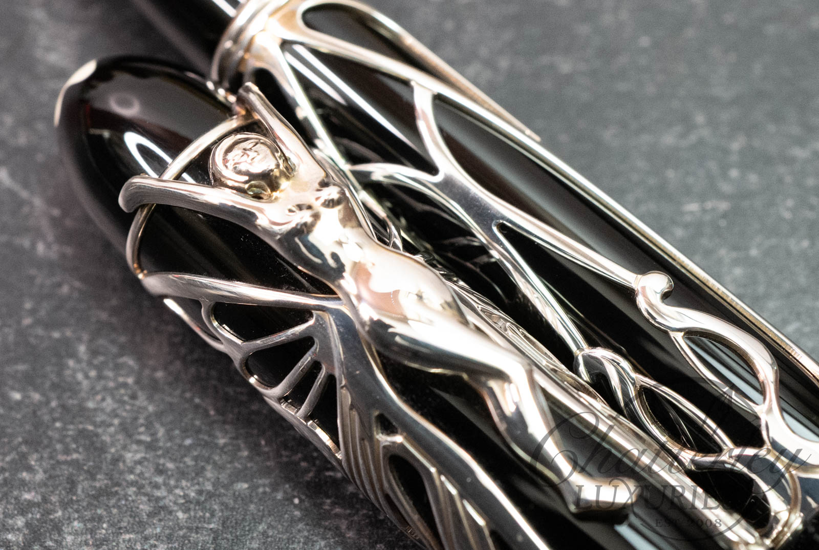 The stylish and elegant Patron of Art Edition Hommage à Andrew Carnegie recalls the artistic style that Carnegie supported so enthusiastically: art nouveau. The clip of the pen is a graceful female figure, whose wings wrap around the cap of the pen like a butterfly’s. The black of the barrel of Edition 4810 provides a striking contrast to this delicate fretwork effect in 925 sterling silver.
