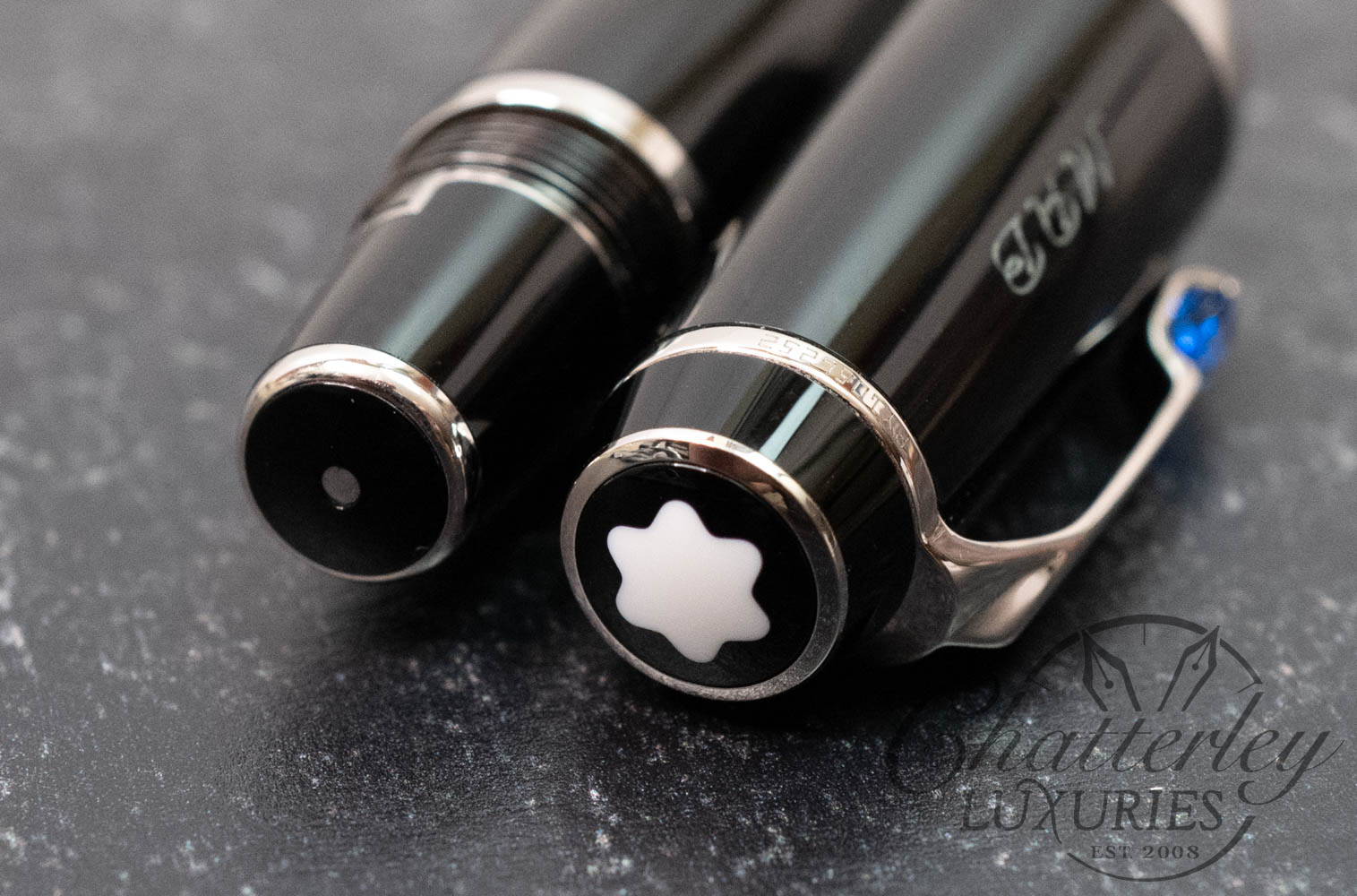 The Blue Bohemian celebrates the exceptional attention paid to the details of Montblanc. The precious black resin, a sophisticated synthetic stone of sapphire color on the clip and a retractable gold nib create a real gem, paying tribute to the culture of Montblanc writing tools.