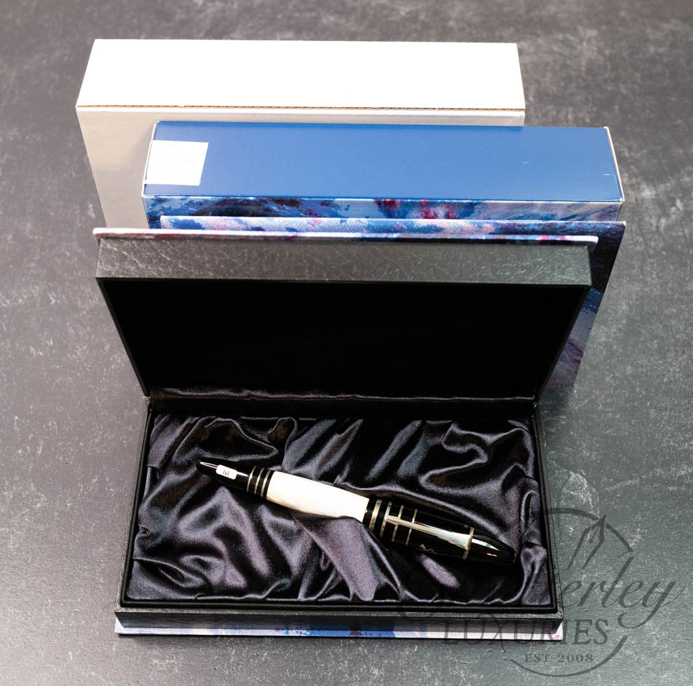 This pen is pre-owned and in near-perfect condition, it does not appear to have been inked. It comes complete with a box and papers and is equipped with an 18k Medium nib. It fills via a Piston Filling system.