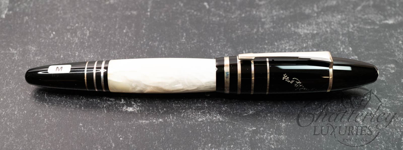 The Writers Edition F. Scott Fitzgerald revives the glamour of the “Roaring Twenties”. The shimmering white barrel forms a striking contrast to the black precious resin cap, which is decorated by the signature of F. Scott Fitzgerald.