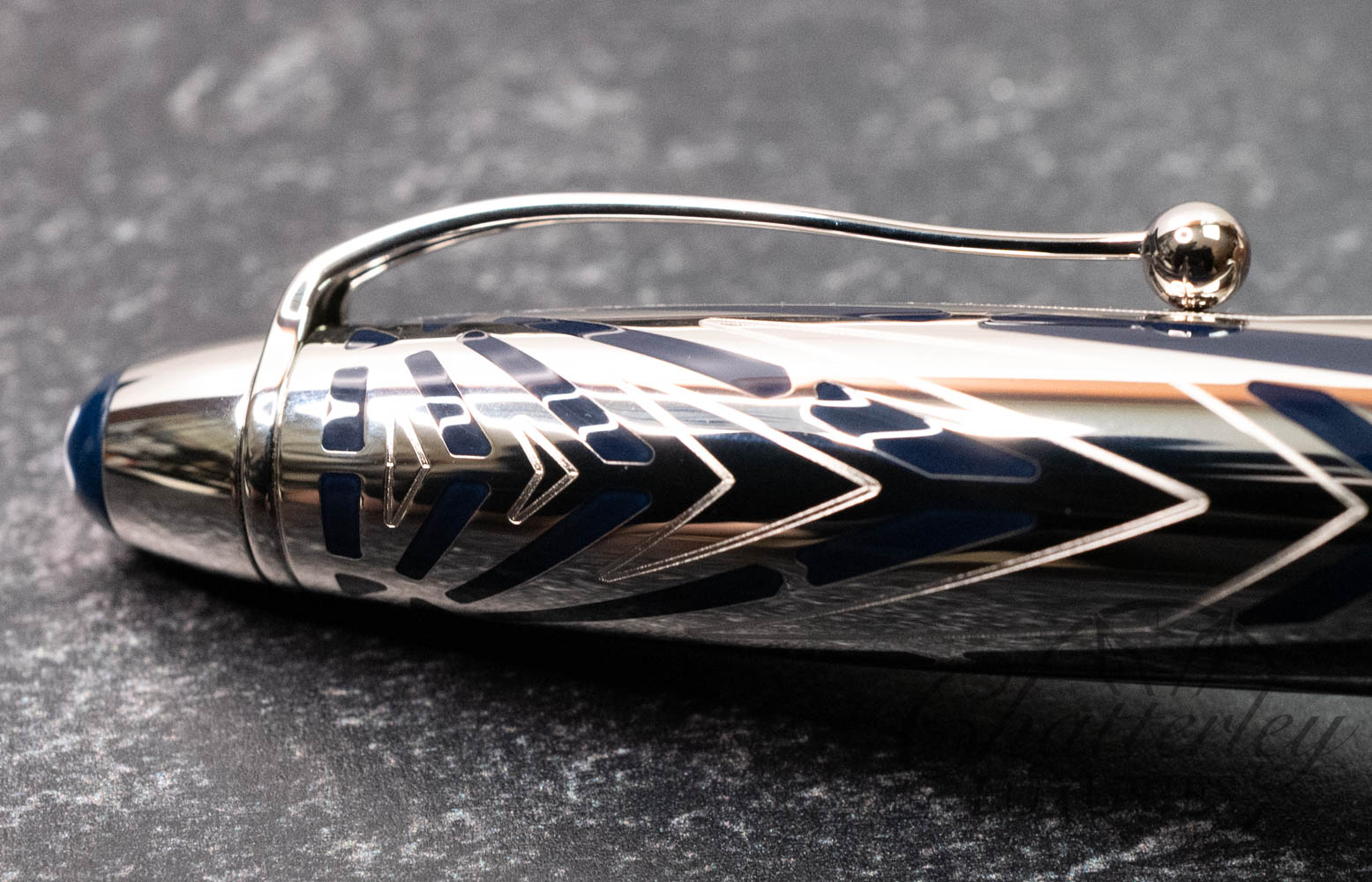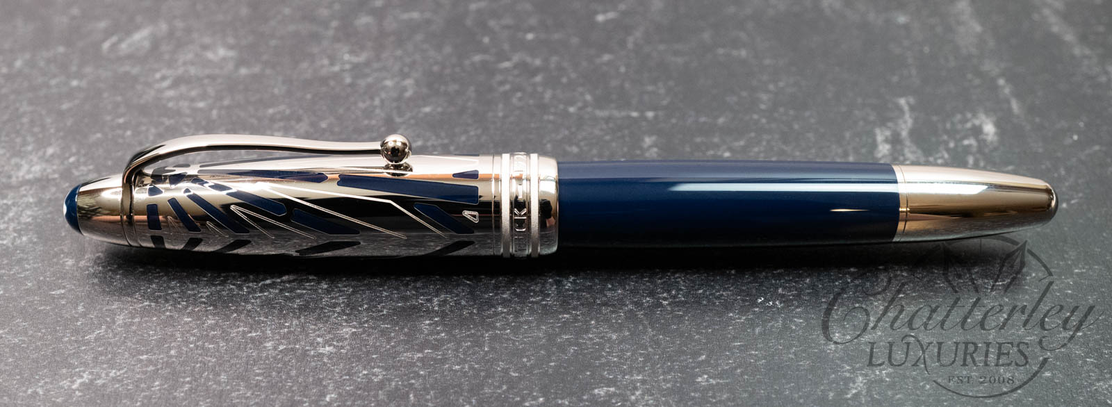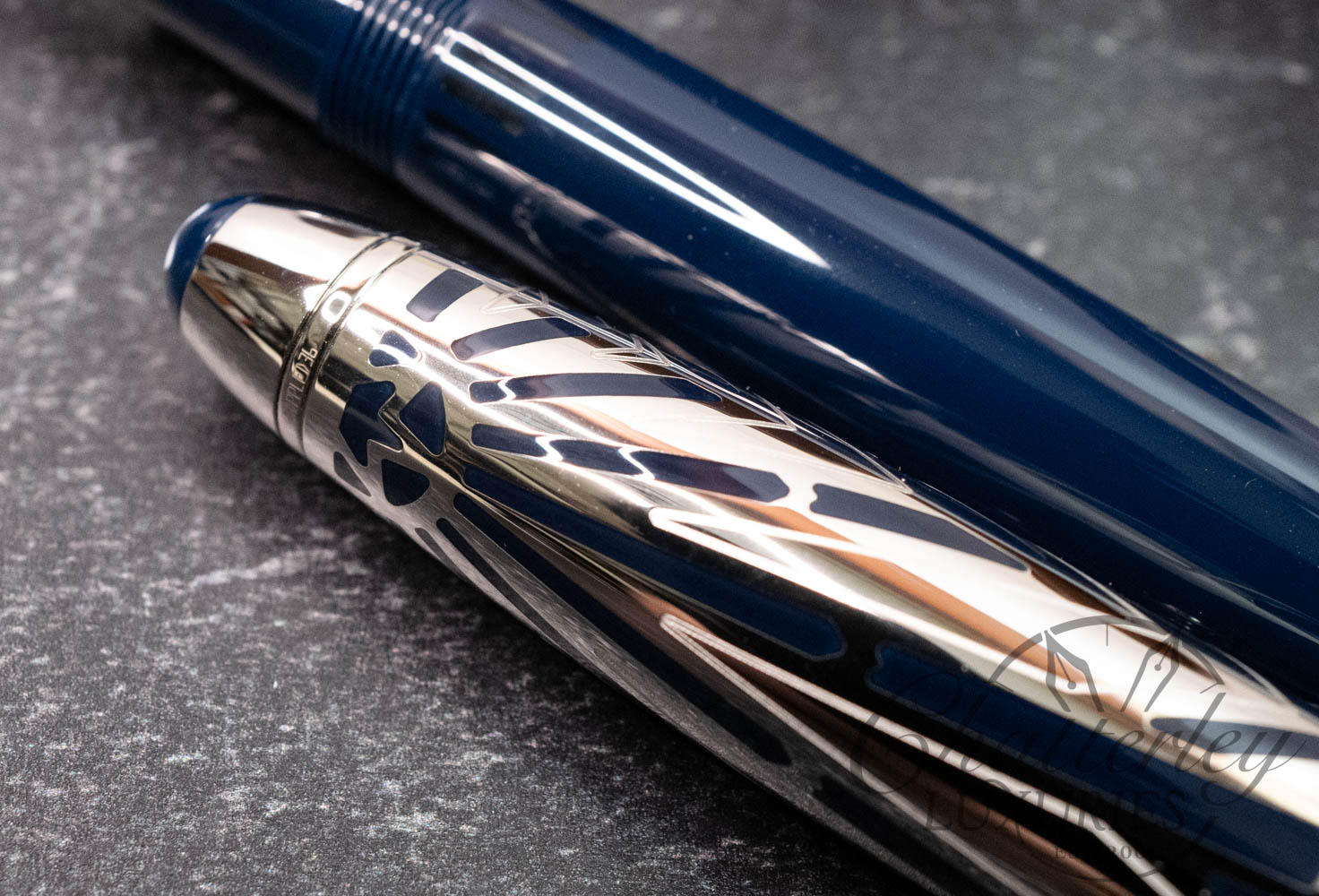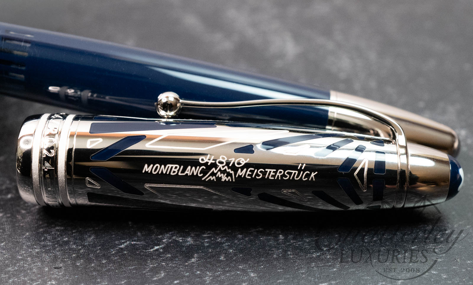 The collection draws inspiration from early designs found in our archives, as well as design features featured on the earliest Meisterstück editions, capturing the founding spirit and infusing it with a modern flair. The intricate pattern on the cap, coated with blue lacquer and platinum, harks back to an unreleased design that had been hidden away for decades, giving Montblanc the opportunity to finally introduce this long-forgotten design reminiscent of the Art Déco period.