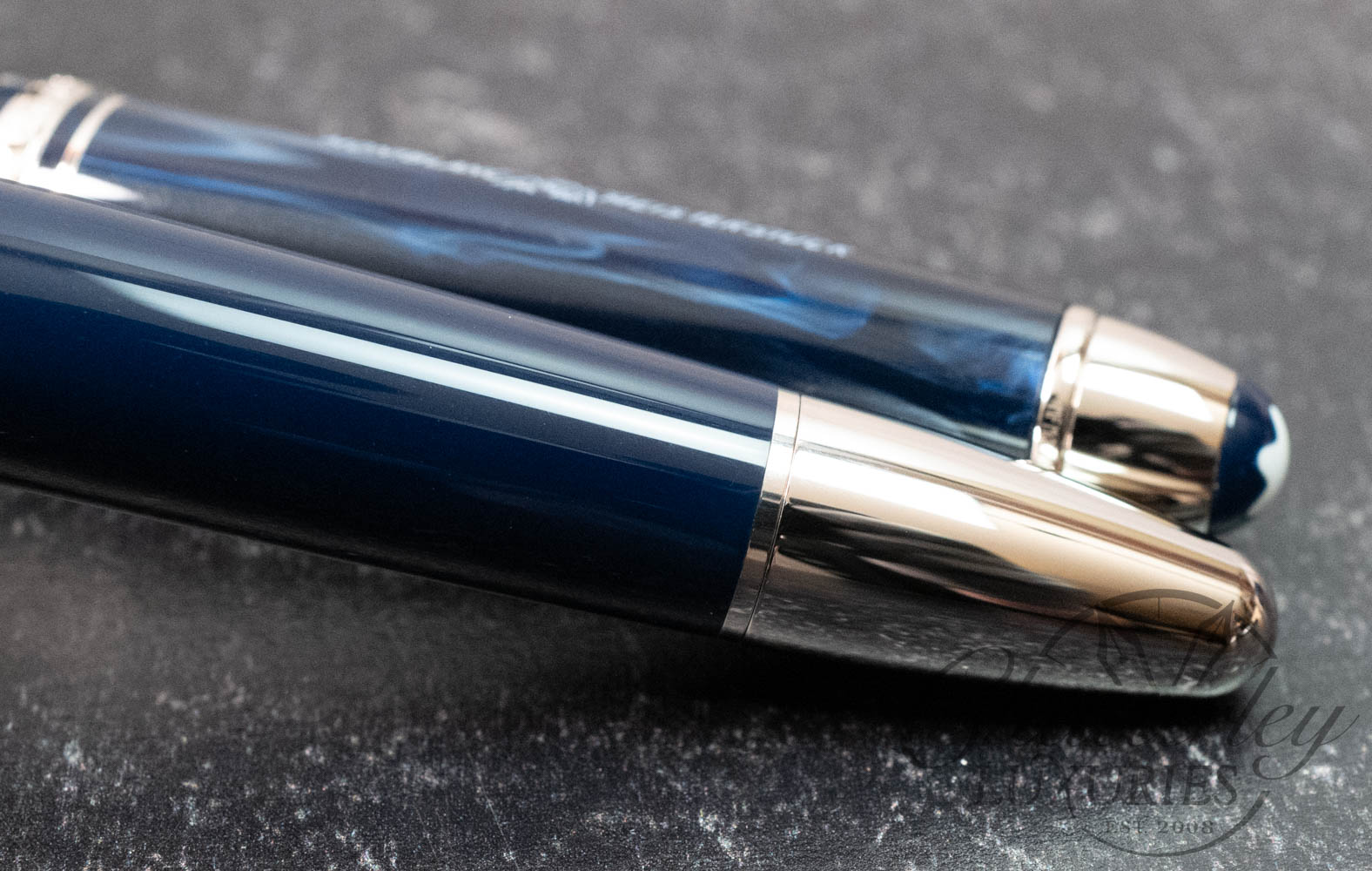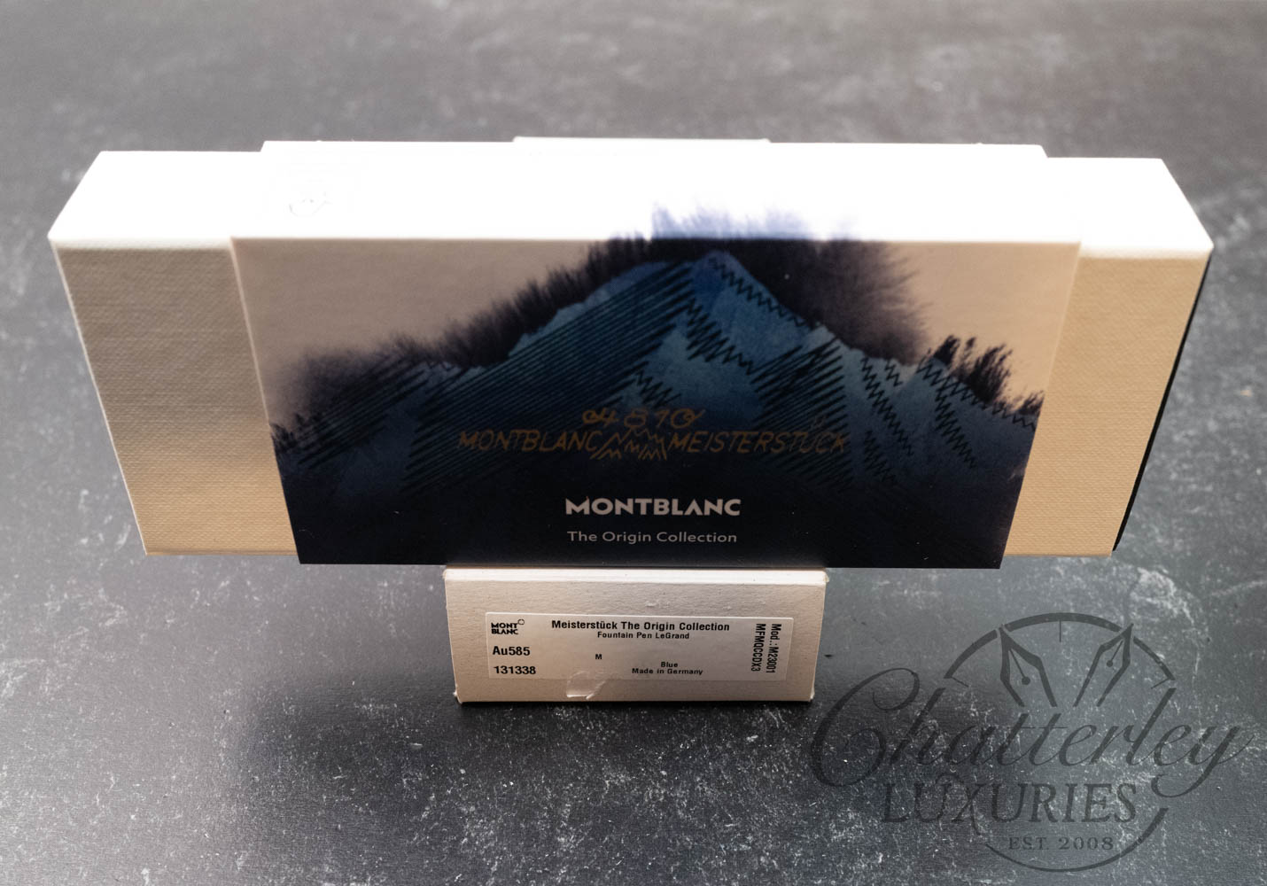 To honor this milestone, Montblanc delved deep into its archives and created the Origin collection, paying homage to the brand’s rich history and heritage. The collection draws inspiration from early designs found in our archives, as well as design features featured on the earliest Meisterstück editions, capturing the founding spirit and infusing it with a modern flair. Expertly crafted from blue precious resin, the cap features a fluid pattern inspired by early designs, representing the dissolution of ink onto paper, elegantly contrasted by platinum-coated fittings.