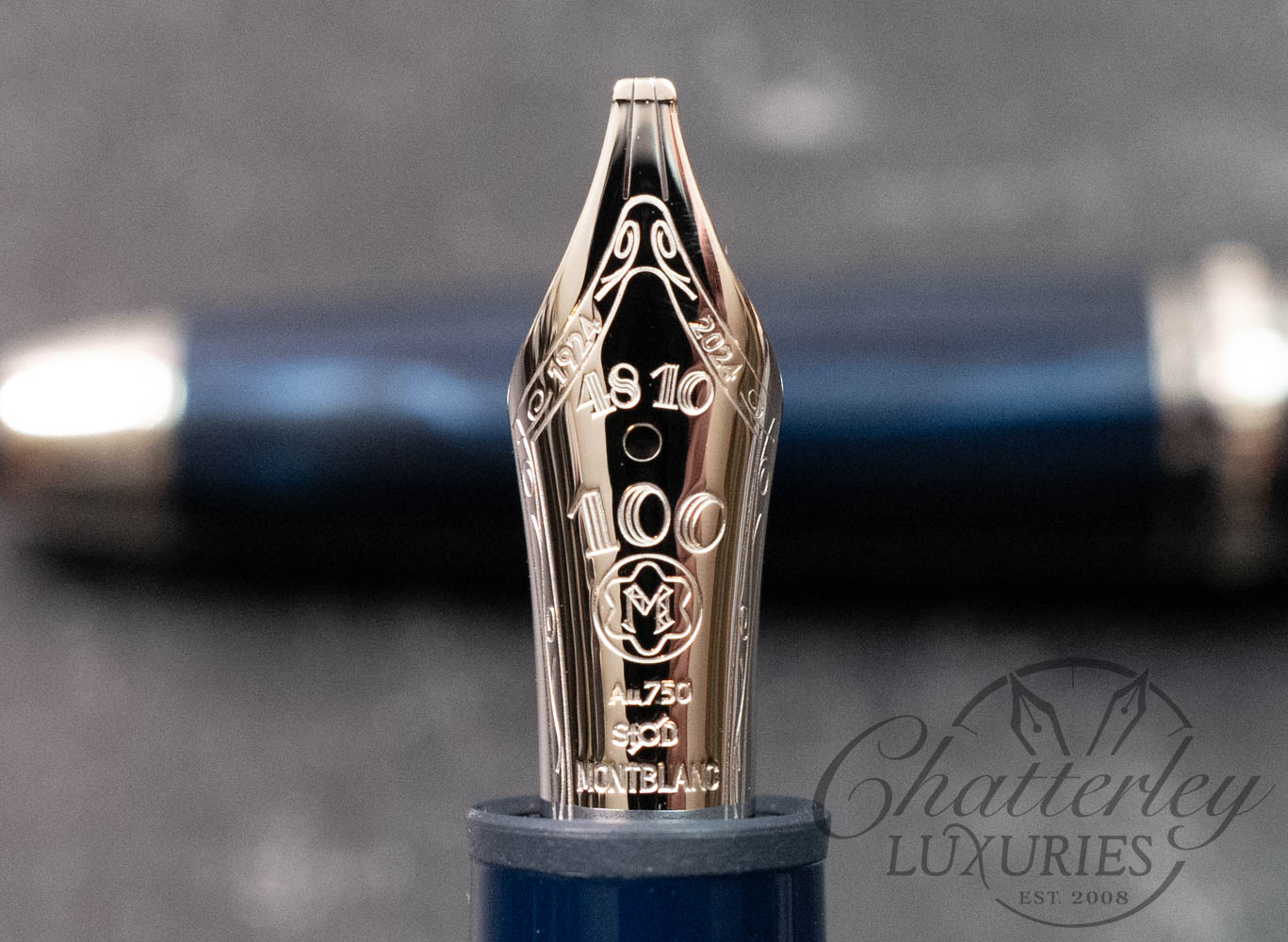 This jubilee edition is crowned with a rhodium-coated solid gold nib, proudly displaying the number “100”, along with the years “1924” and “2024”. Here’s to another 100 years of excellence with Meisterstück!