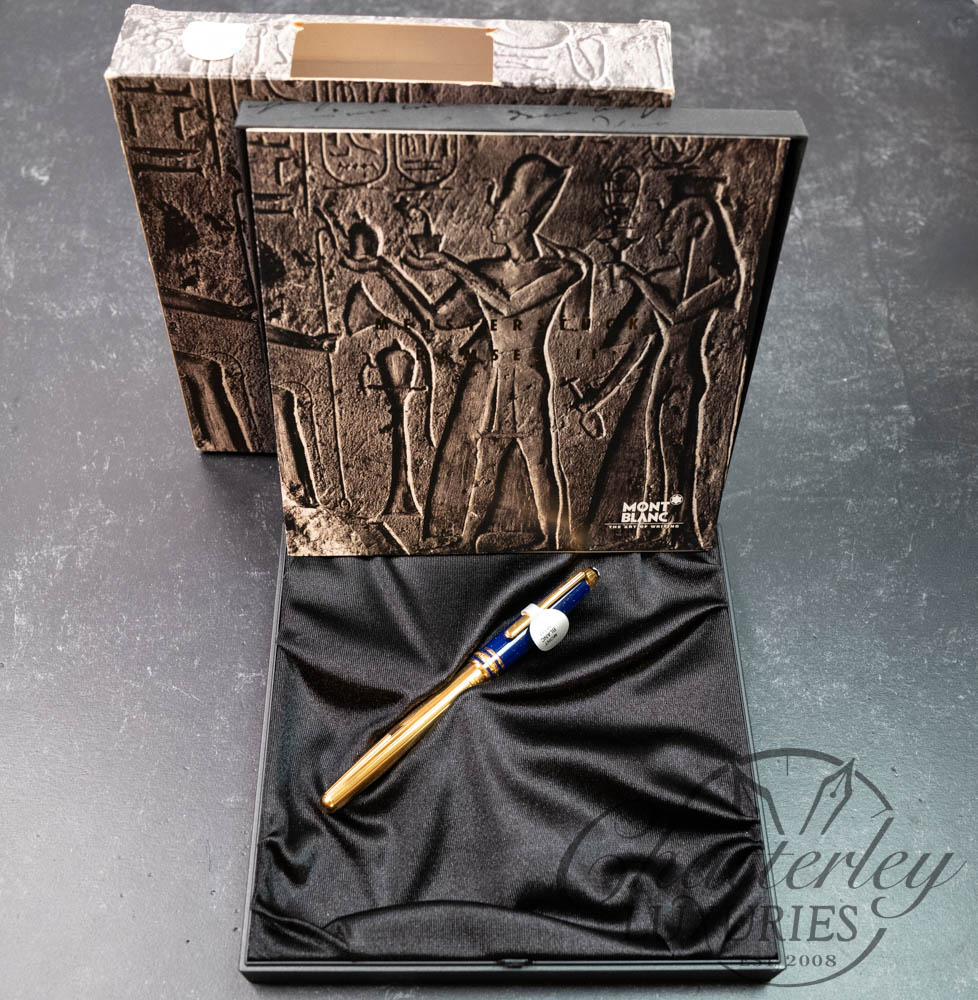 The Montblanc Ramses II pays tribute to the dynasty of the Pharaohs. The cap is made of Lapis Lazuli, a gemstone cherished by the rulers of ancient Egypt. The body and trims are made in vermeil.