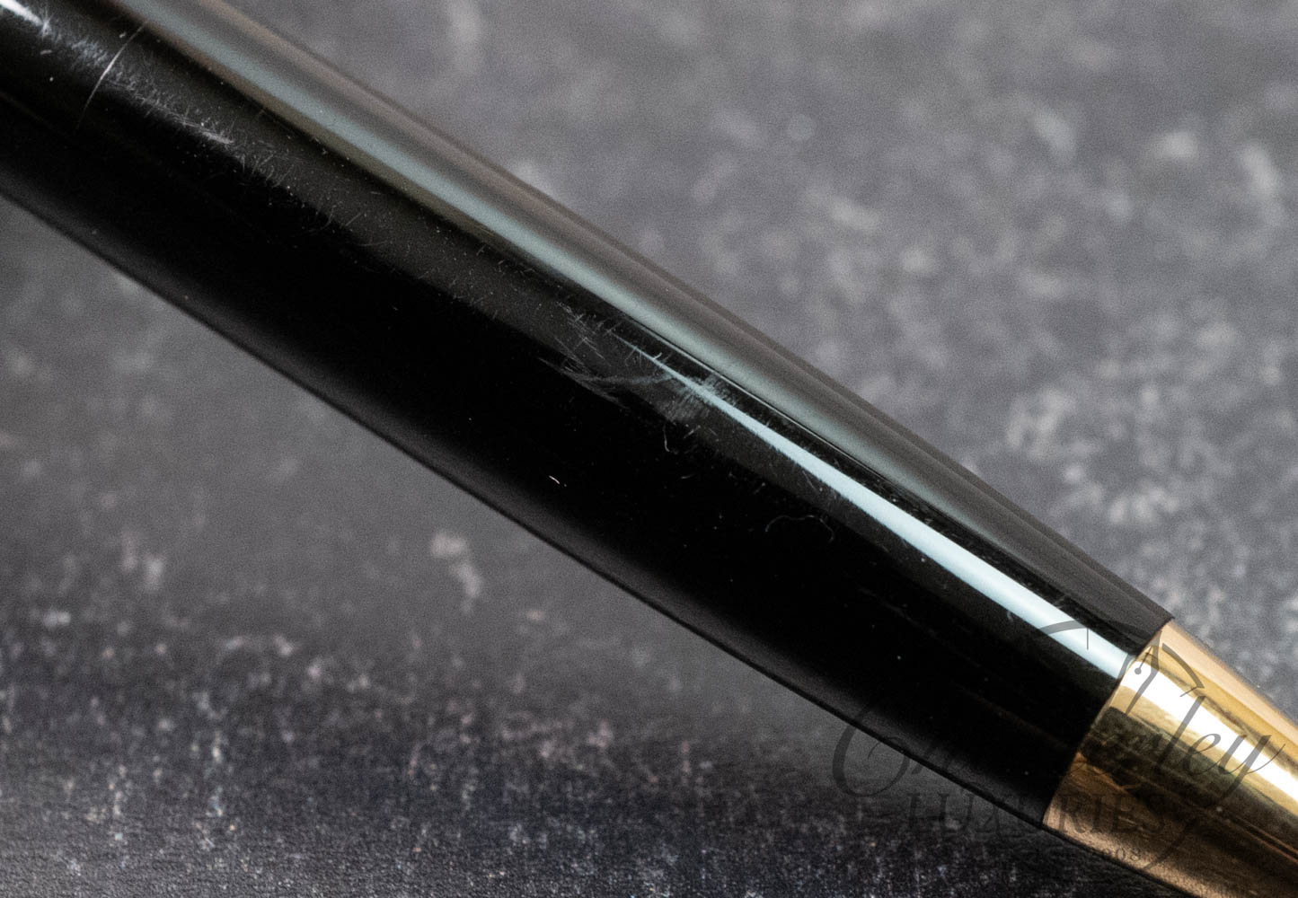 This pencil has seen regular use and shows noticeable wear throughout, with clear signs of handling and surface wear in the way of mini surface scratches on the body (see last image). This pencil does not come with a box or papers and is equipped with a working refill.
