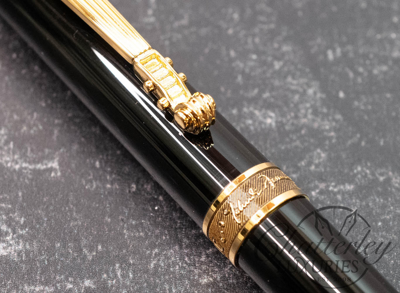 The Yehudi Menuhin Limited Edition Pen serves as a tribute to the remarkable accomplishments of its namesake. Its intricate design and attention to detail make it a one-of-a-kind masterpiece. The pen’s gold-plated clip honors the violinist’s virtuosity by resembling the neck of a violin with its scroll. The cap of the pen features an elegantly engraved ring bearing Menuhin’s signature.