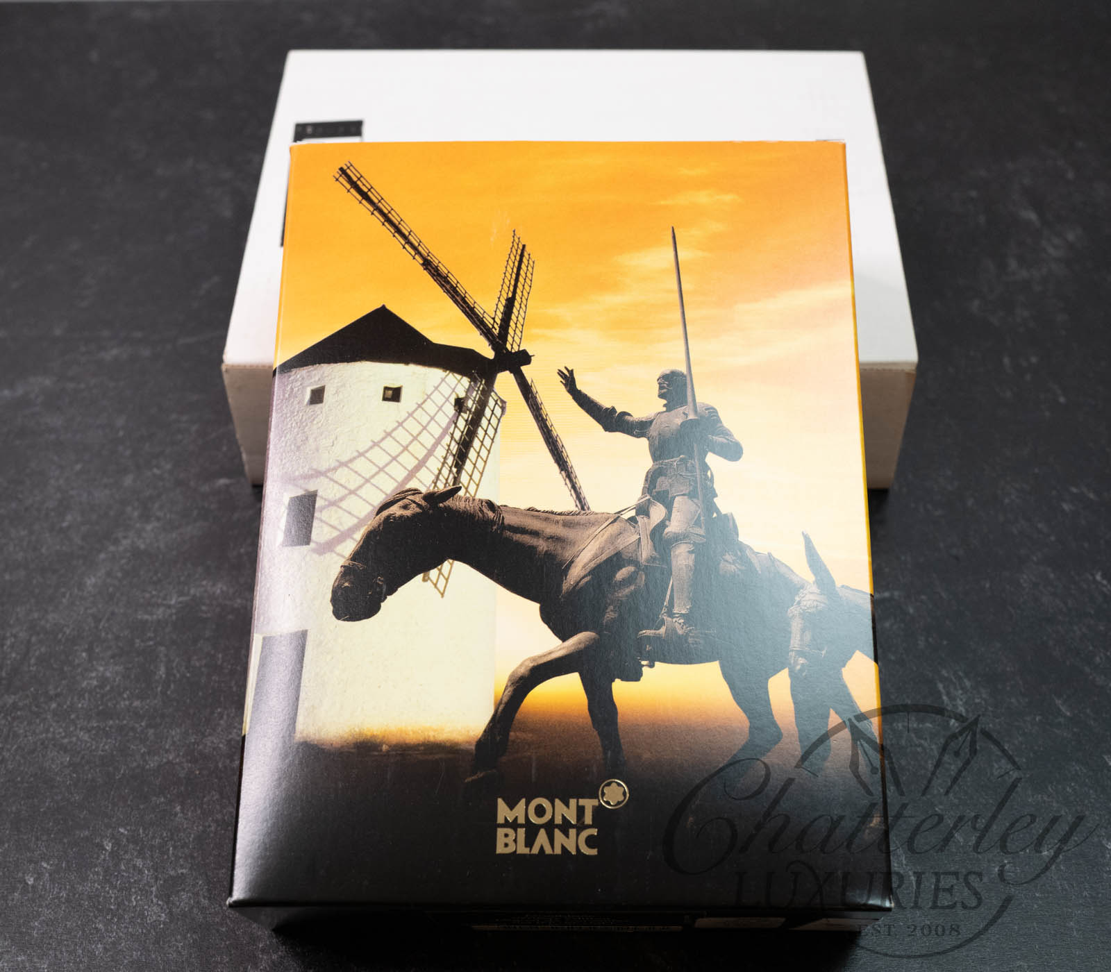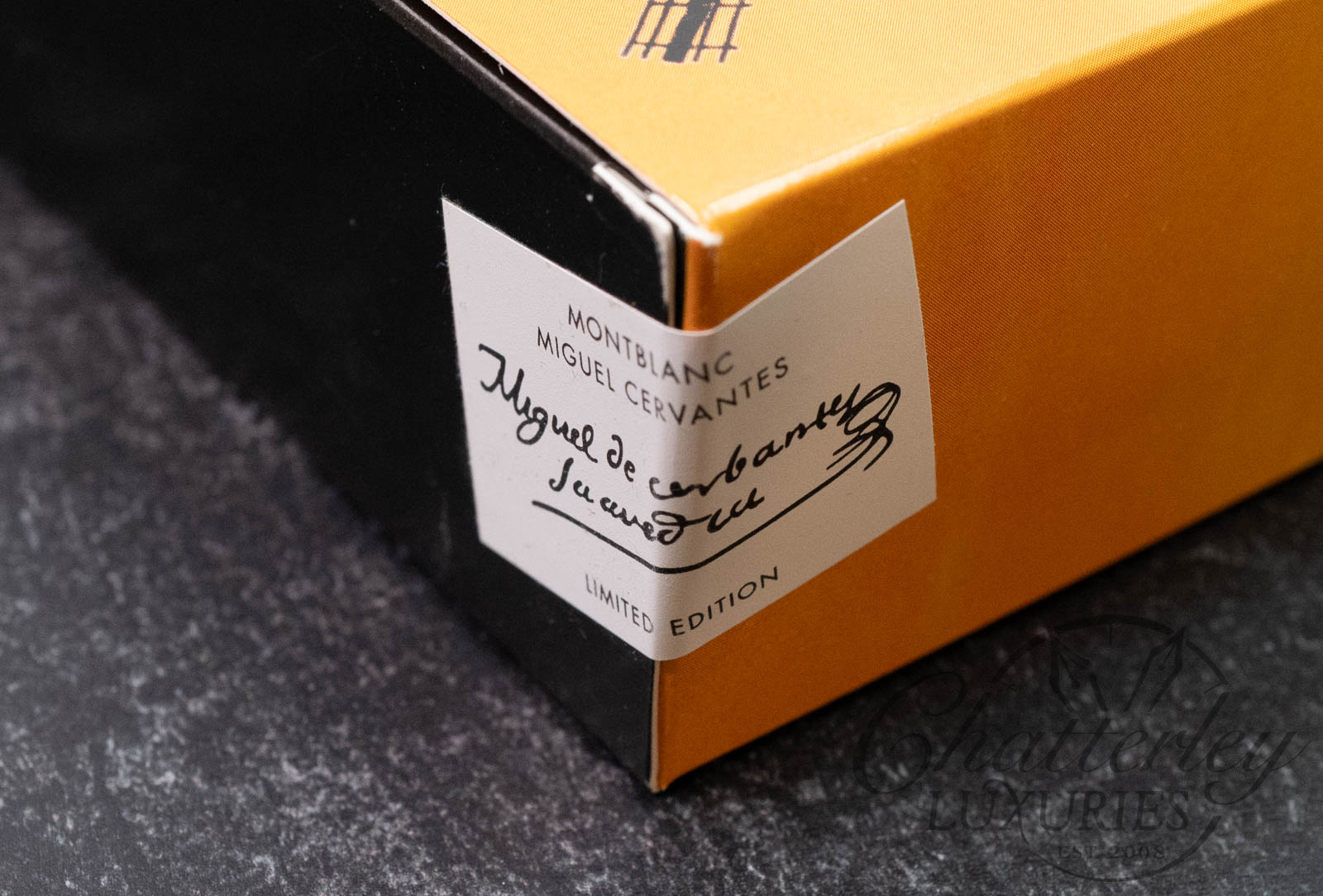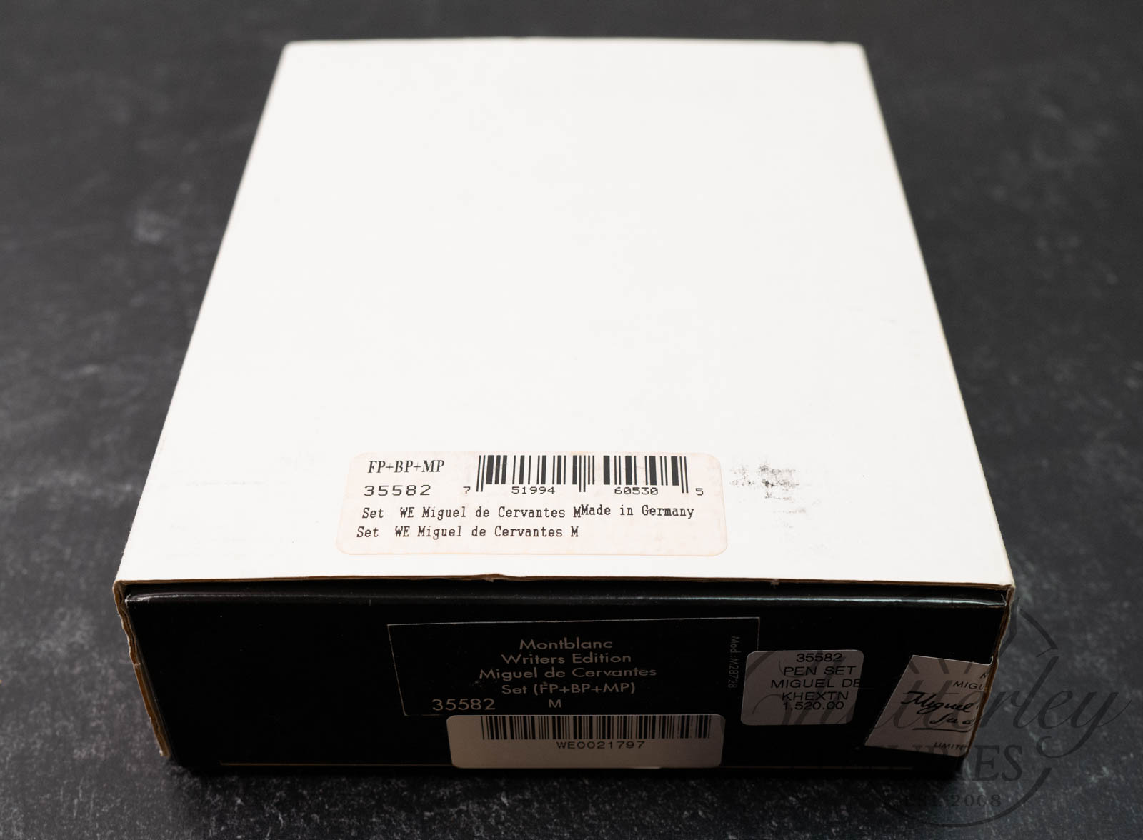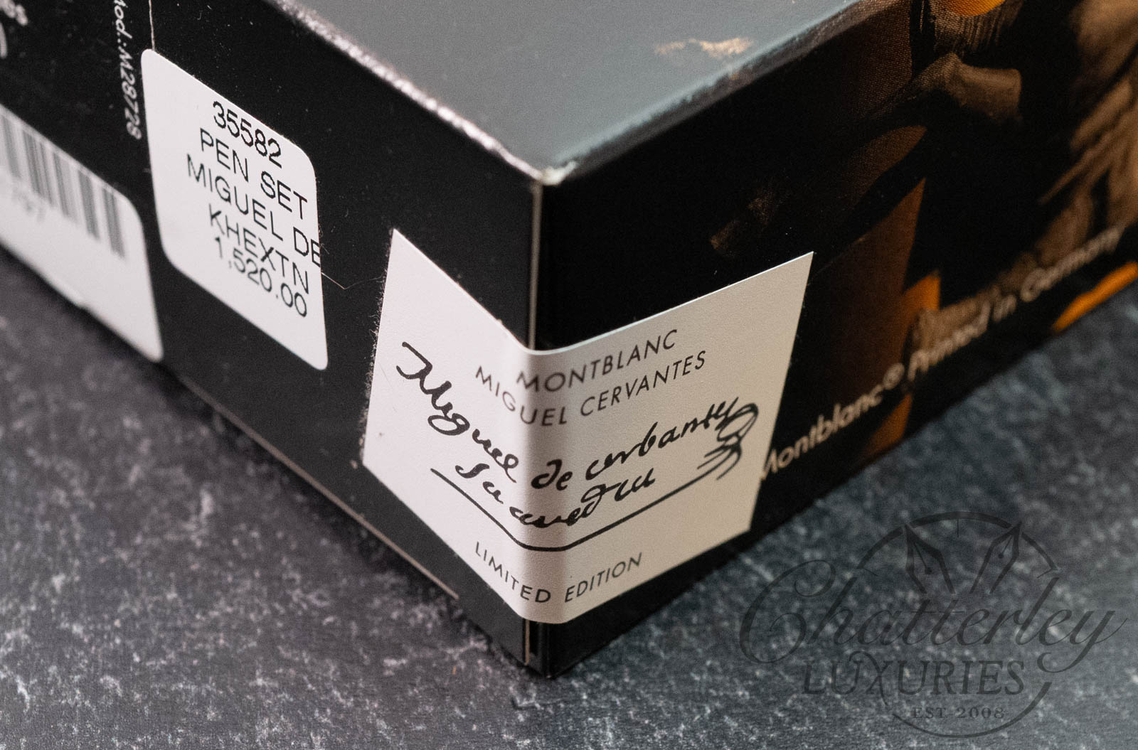Below are images of a Miguel de Cervantes Writers Limited Edition Fountain Pen that we have sold. The Ballpoint Pen and Mechanical Pencil are fashioned in the same materials and design as the Fountain pen pictured below. The item you will be purchasing is a full set, box pictured above (SEALED).Â