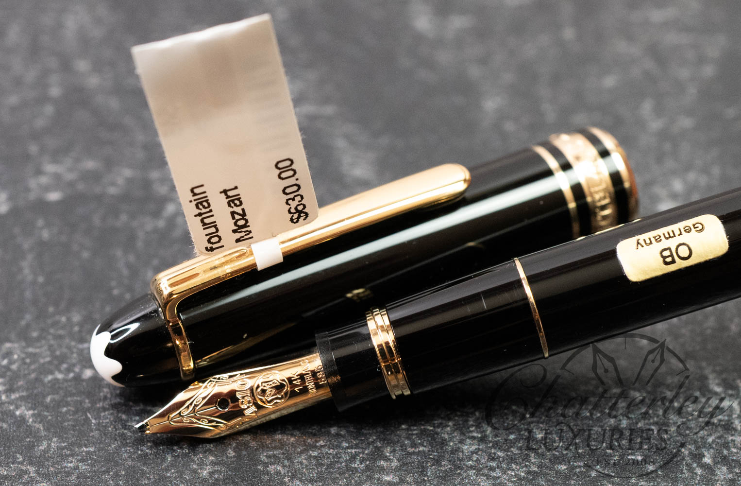 This fountain pen is lovingly used and comes complete with a box, no papers. It is equipped with a 14k Oblique Broad nib and fills via a Cartridge Convertor.