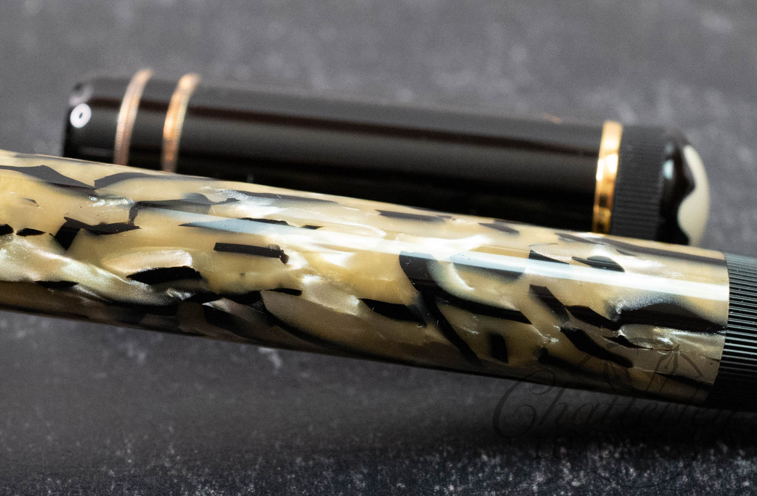 This pen is lovingly used and comes with a box and papers. It is equipped with an 18k Fine nib and fills via Piston Filling system.