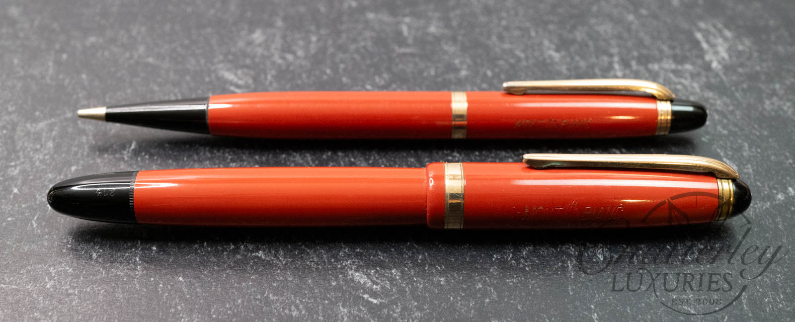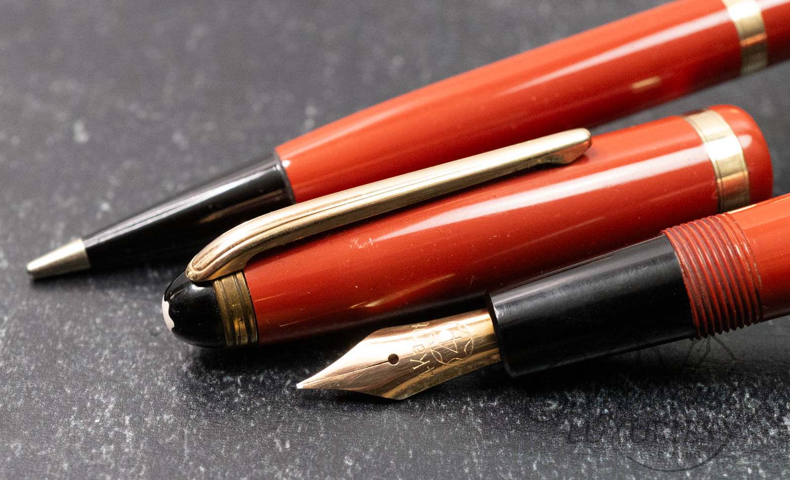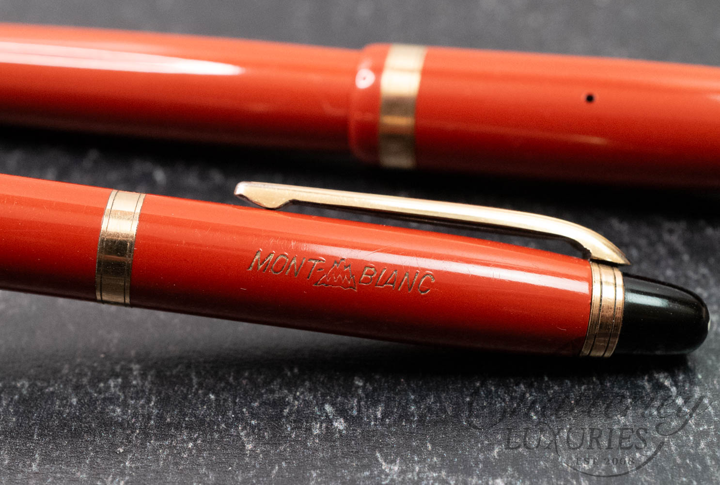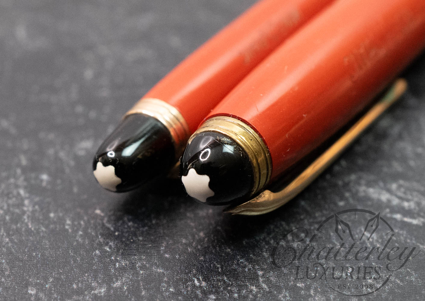 Montblanc Vintage Danish Coral Red Celluloid Fountain Pen #214 and Mechanical Pencil #15 Set