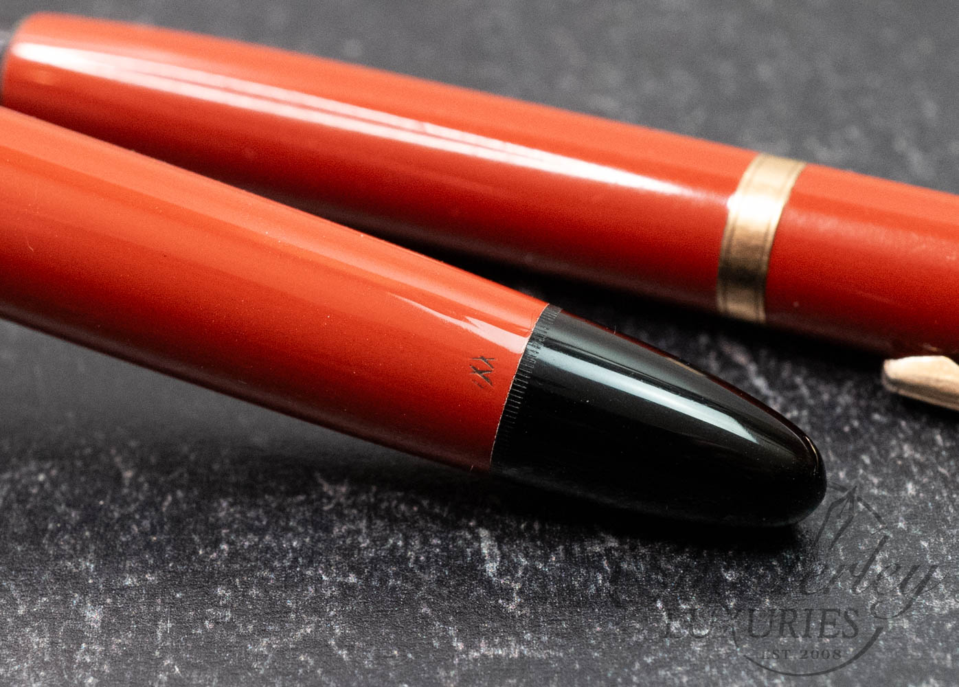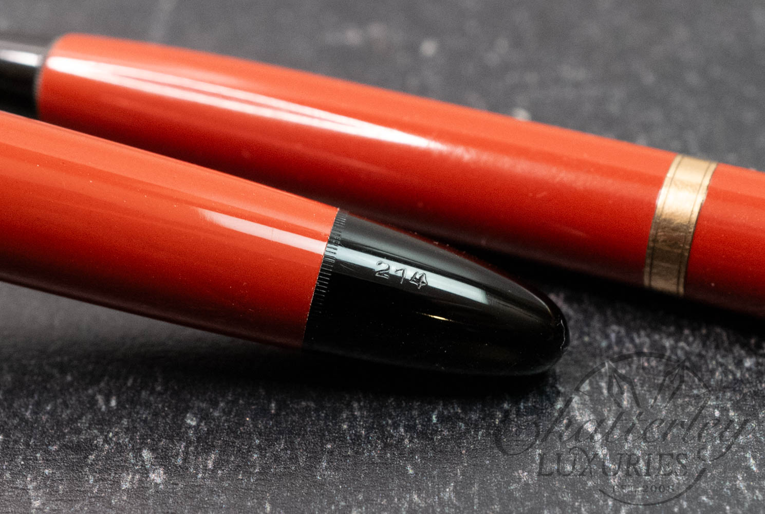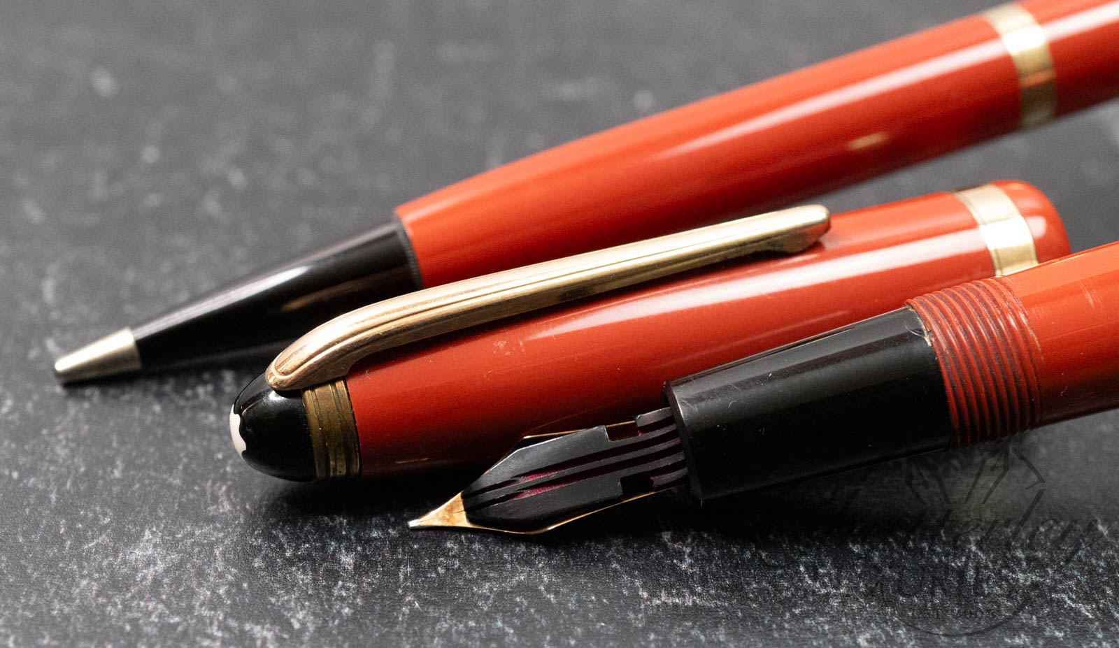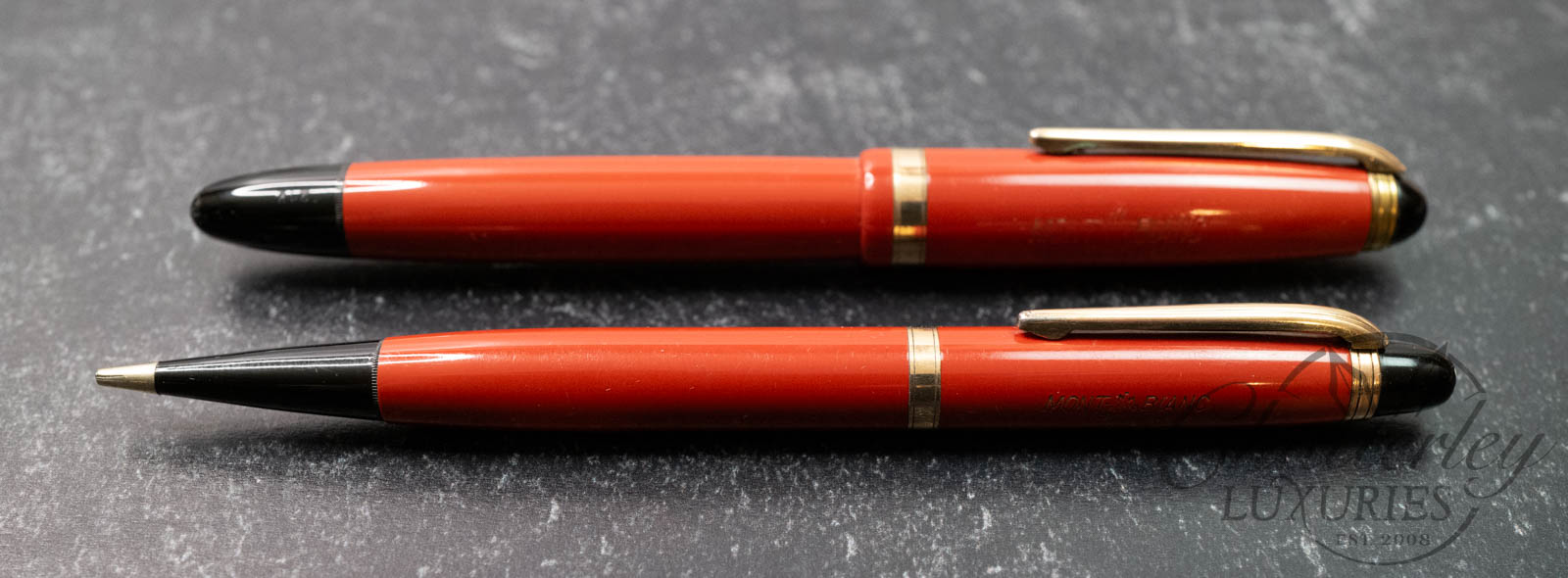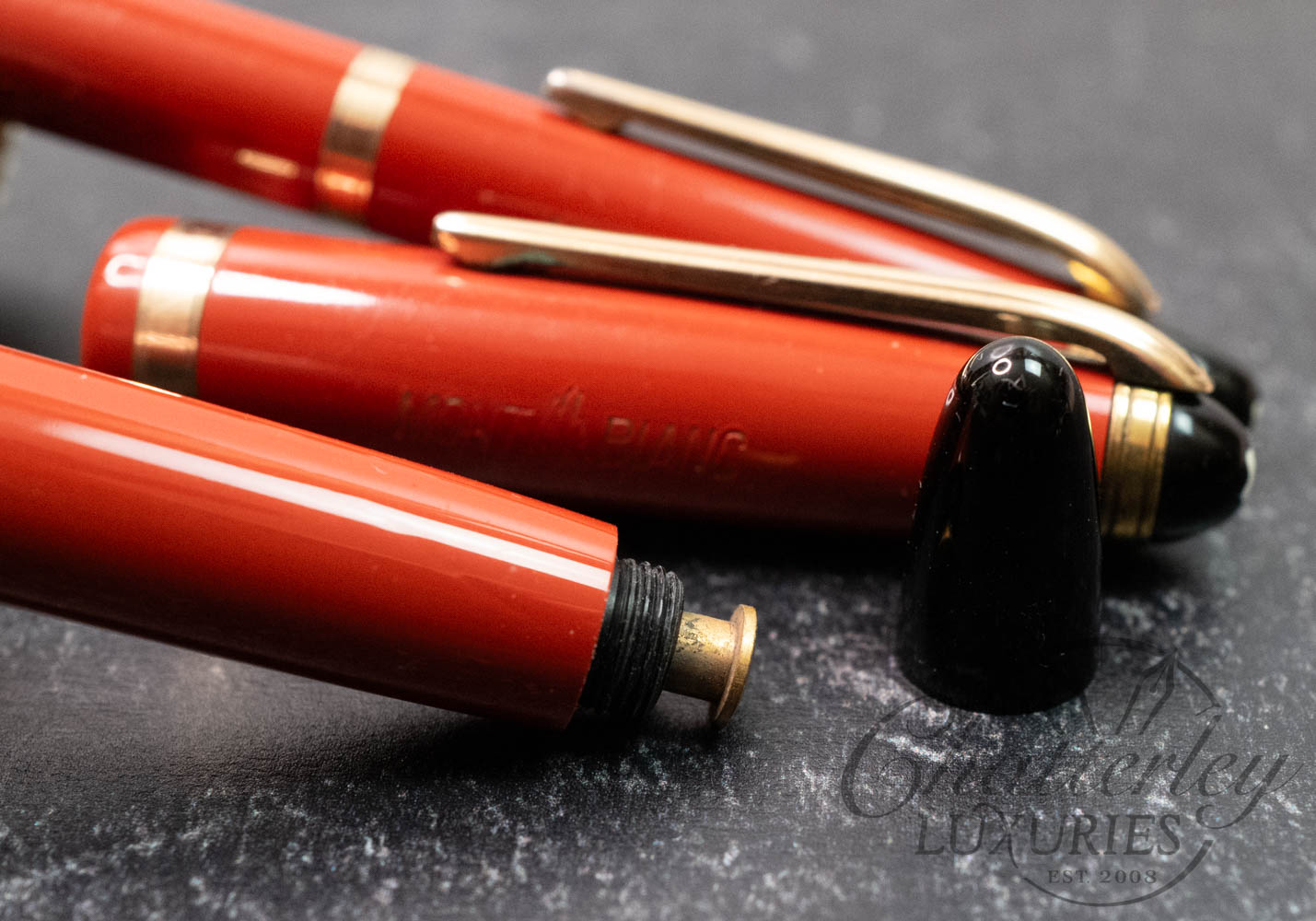 Montblanc Vintage Danish Coral Red Celluloid Fountain Pen #214 and Mechanical Pencil #15 Set