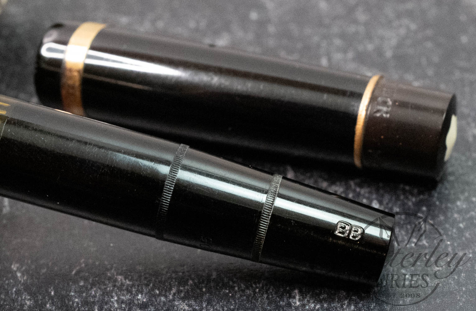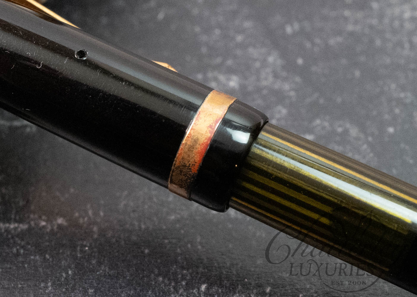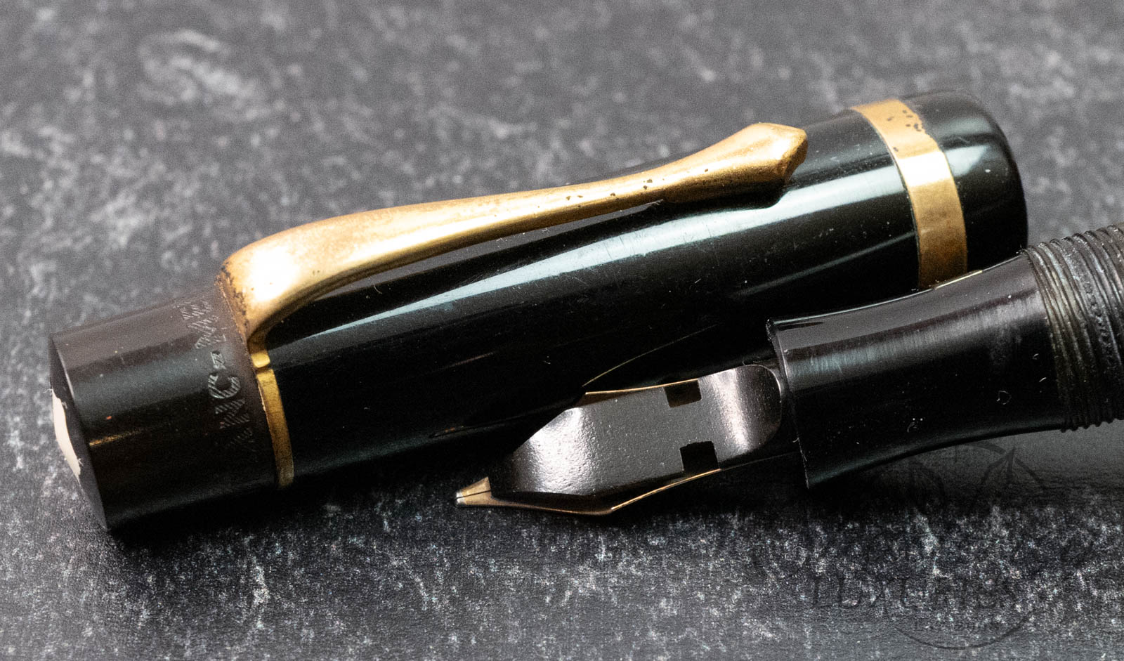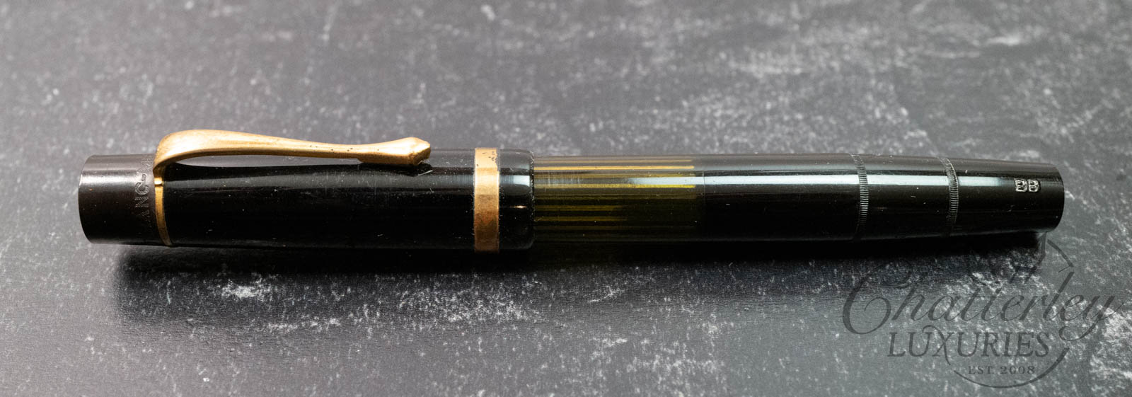 This vintage pen has seen regular use and shows noticeable wear throughout, with clear signs of handling and surface wear on the body, cap and clip. It does not come with a box or papers and is equipped with 14C Double Broad Nib and fills via a piston filling system.