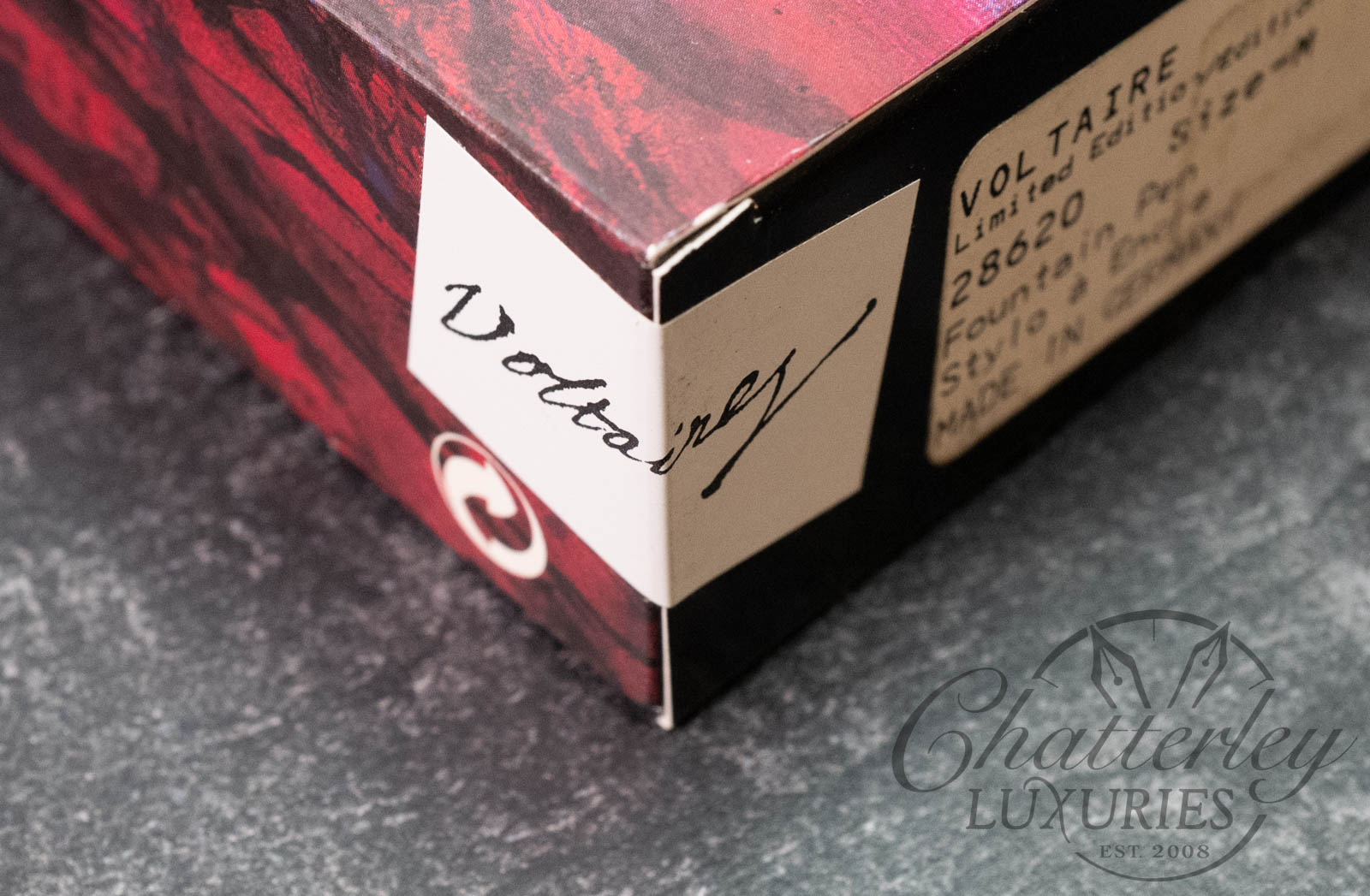 Below are images of another Voltaire Writers Limited Edition Fountain Pen that we have sold. The one you will be purchasing is above (SEALED).Â